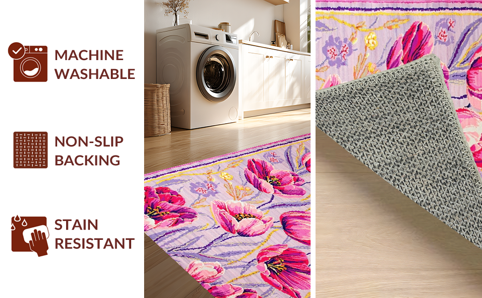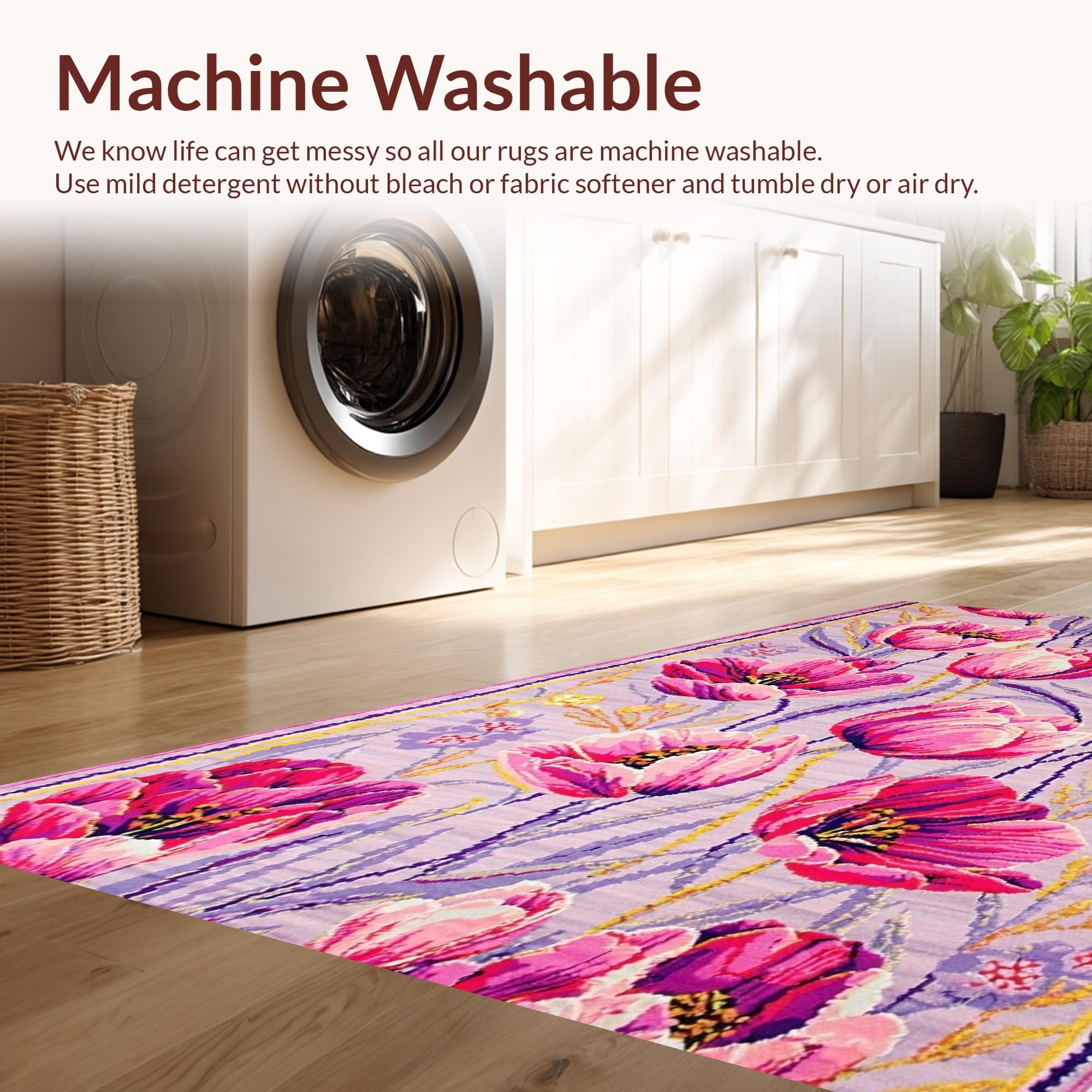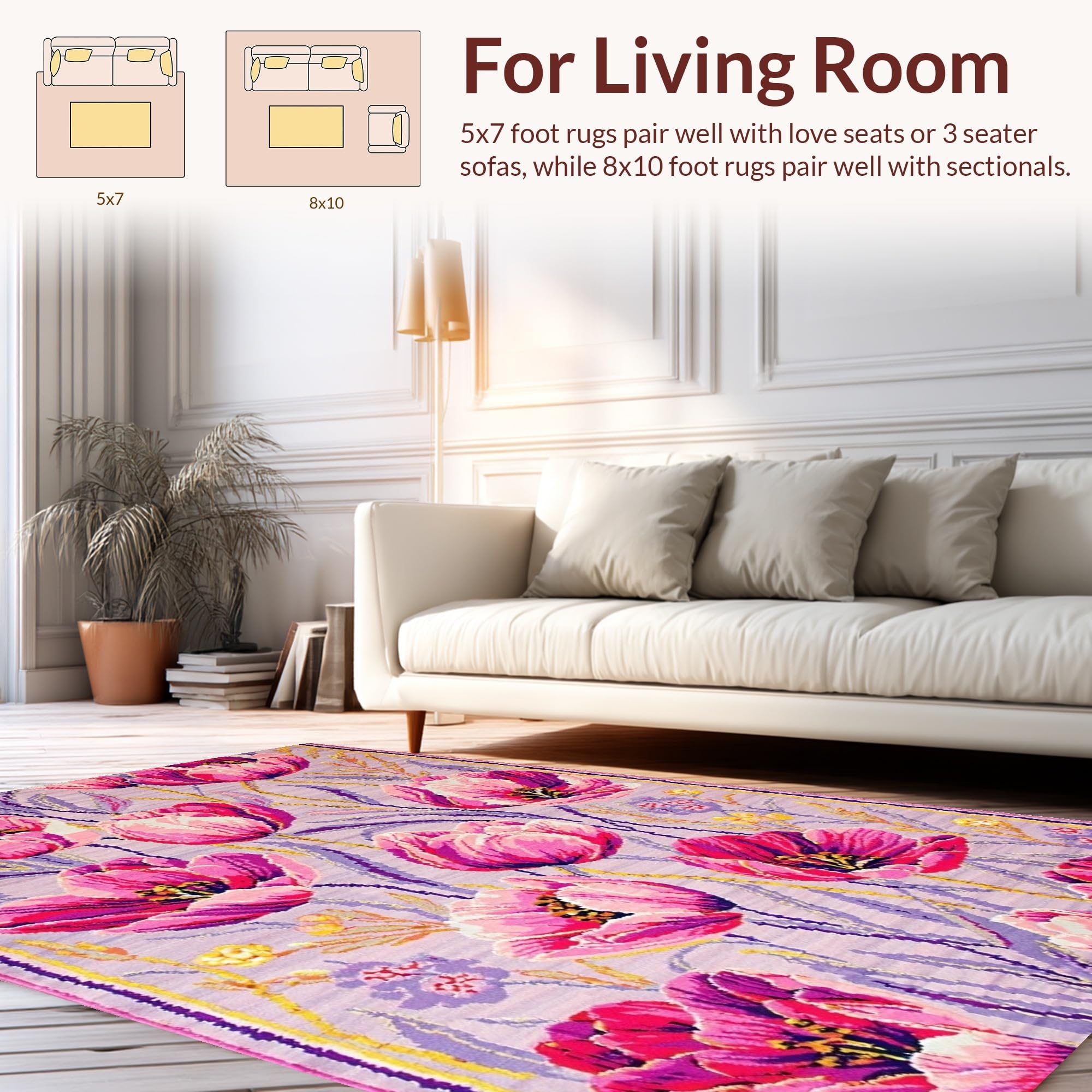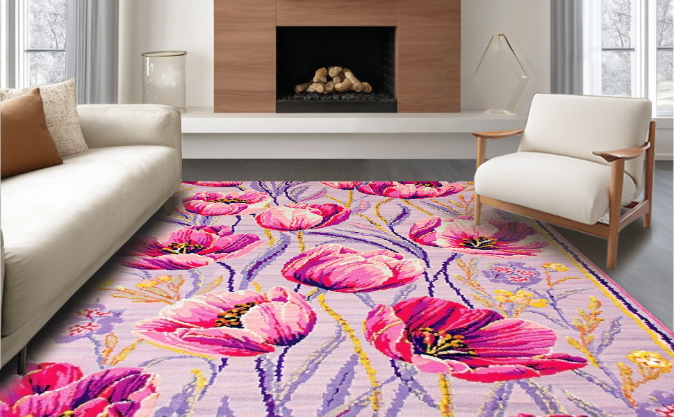 Ultra Soft Area Rug, Non Slip, Stain Resistant, Washable Area Rugs for Living Room, Bedroom, Vibrant Tulip Floral Aesthetic(Pink) Overview: