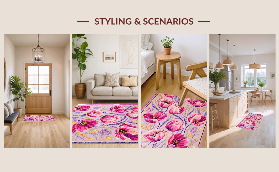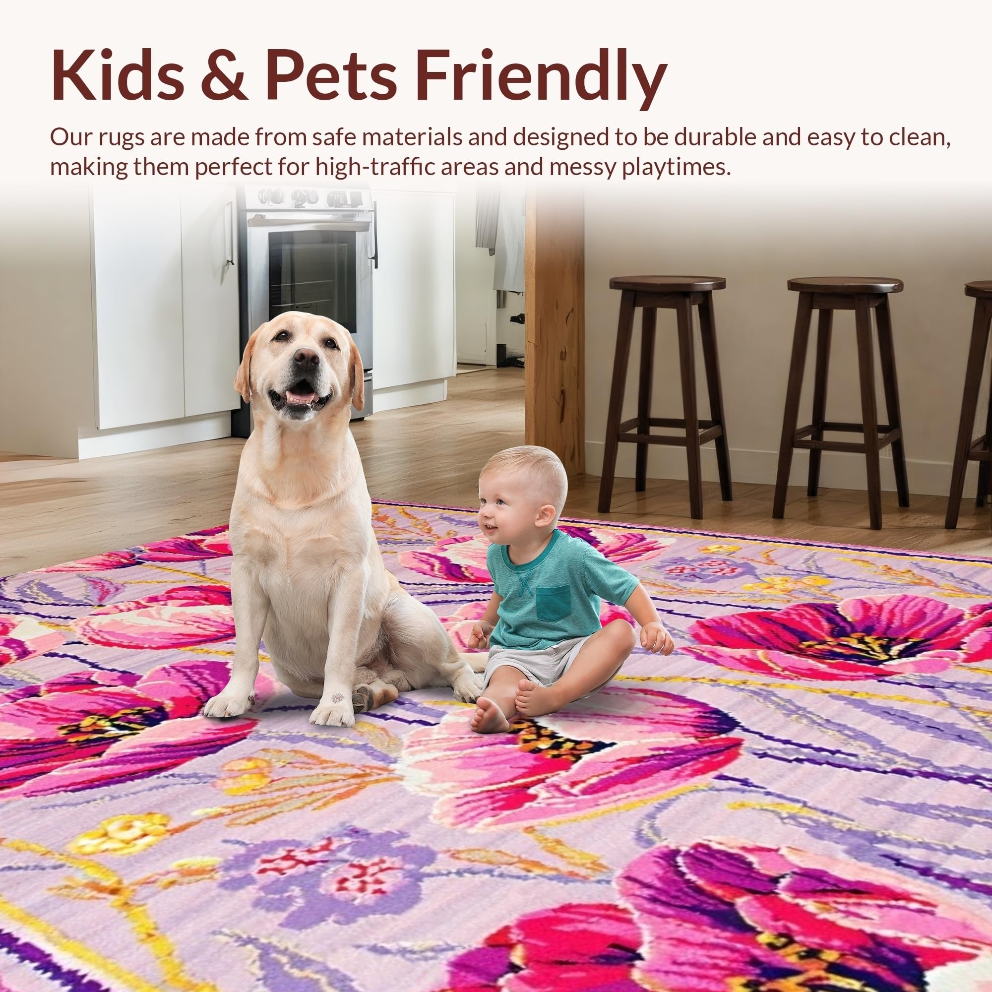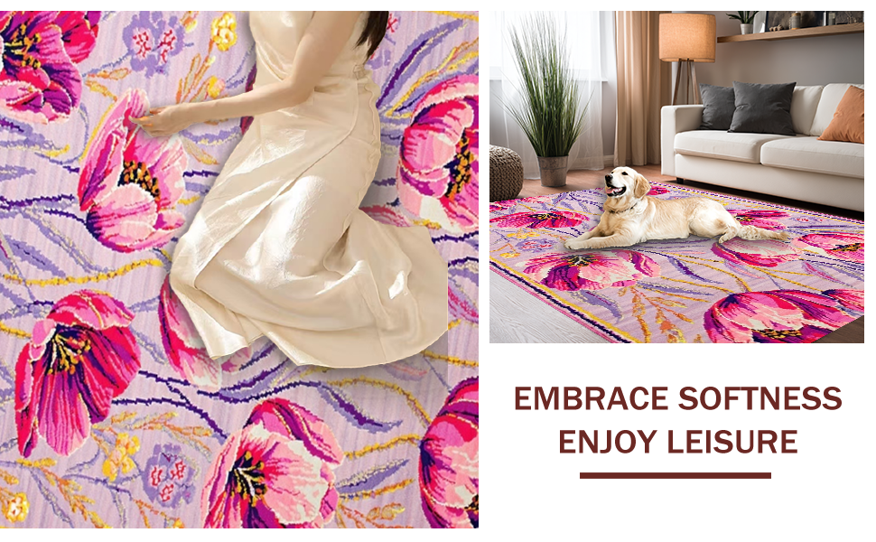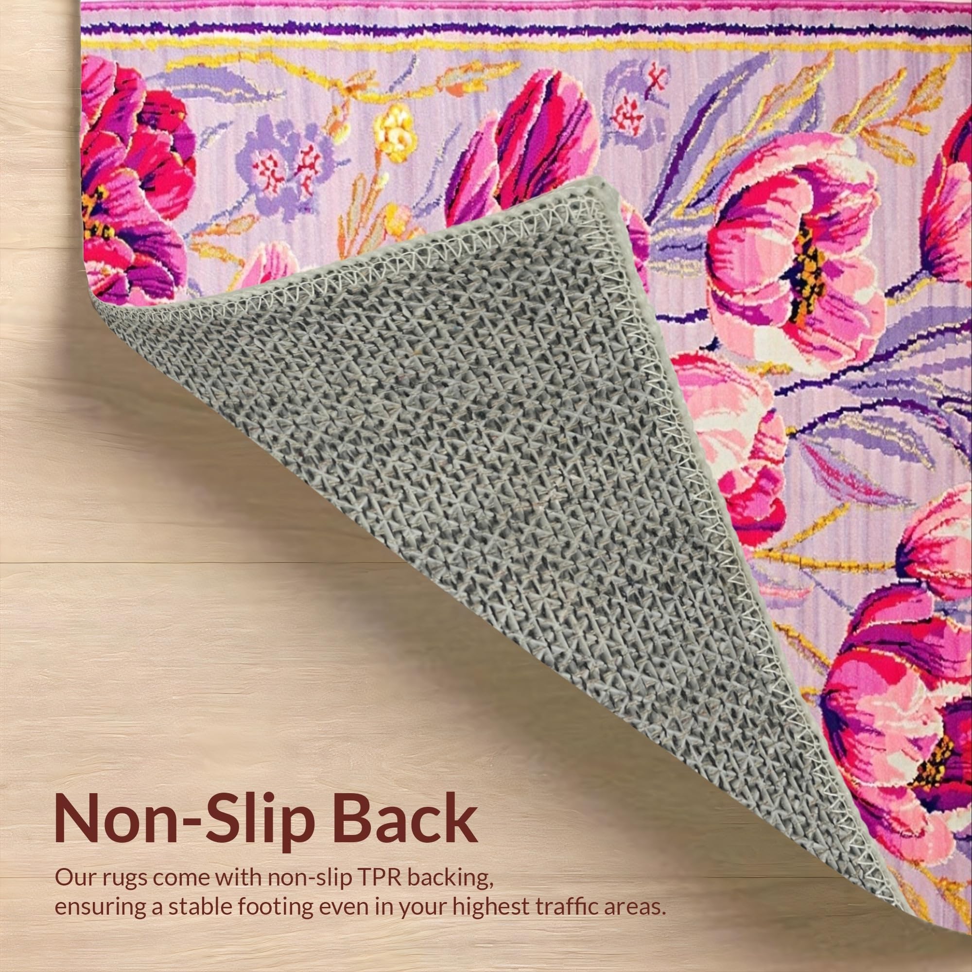 Ultra Soft Area Rug, Non Slip, Stain Resistant, Washable Area Rugs for Living Room, Bedroom, Vibrant Tulip Floral Aesthetic(Pink) Overview: