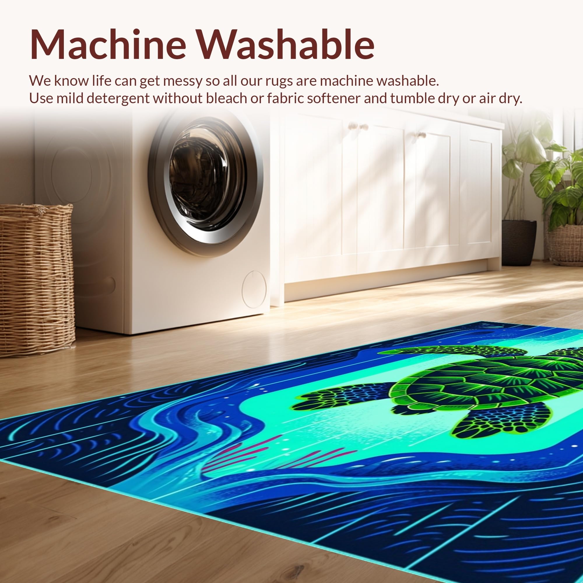 - Machine Washable: Our rugs can be easily thrown in the wash machine.