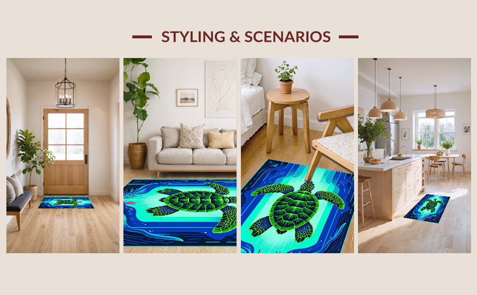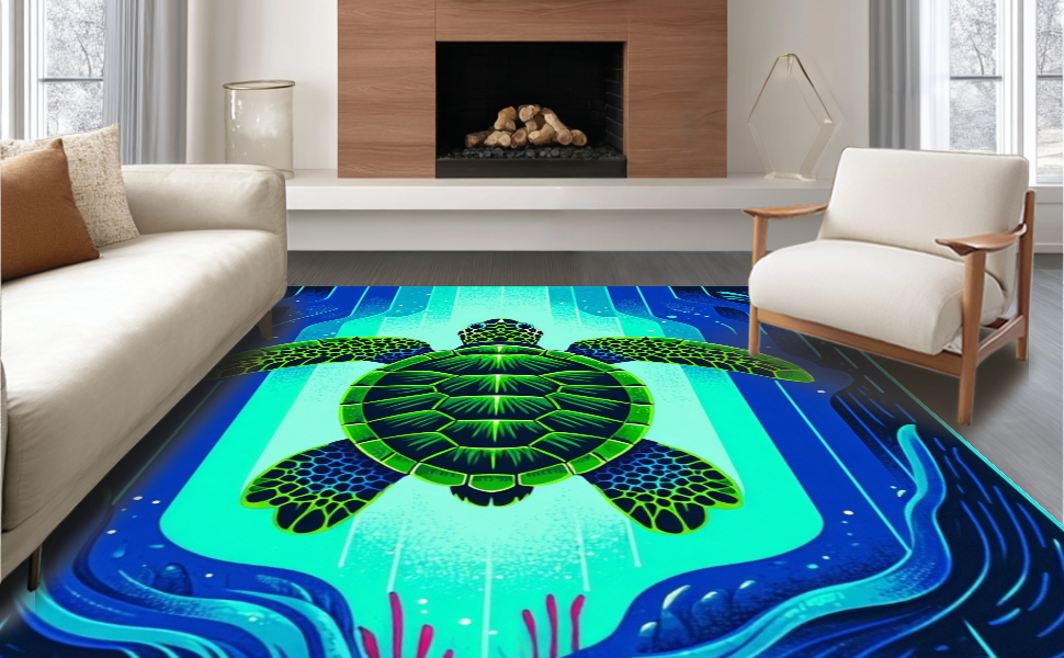 Ultra Soft Area Rug, Non Slip, Stain Resistant, Washable Area Rugs for Living Room, Bedroom, Vibrant Underwater Scene Motif(Blue) Overview: