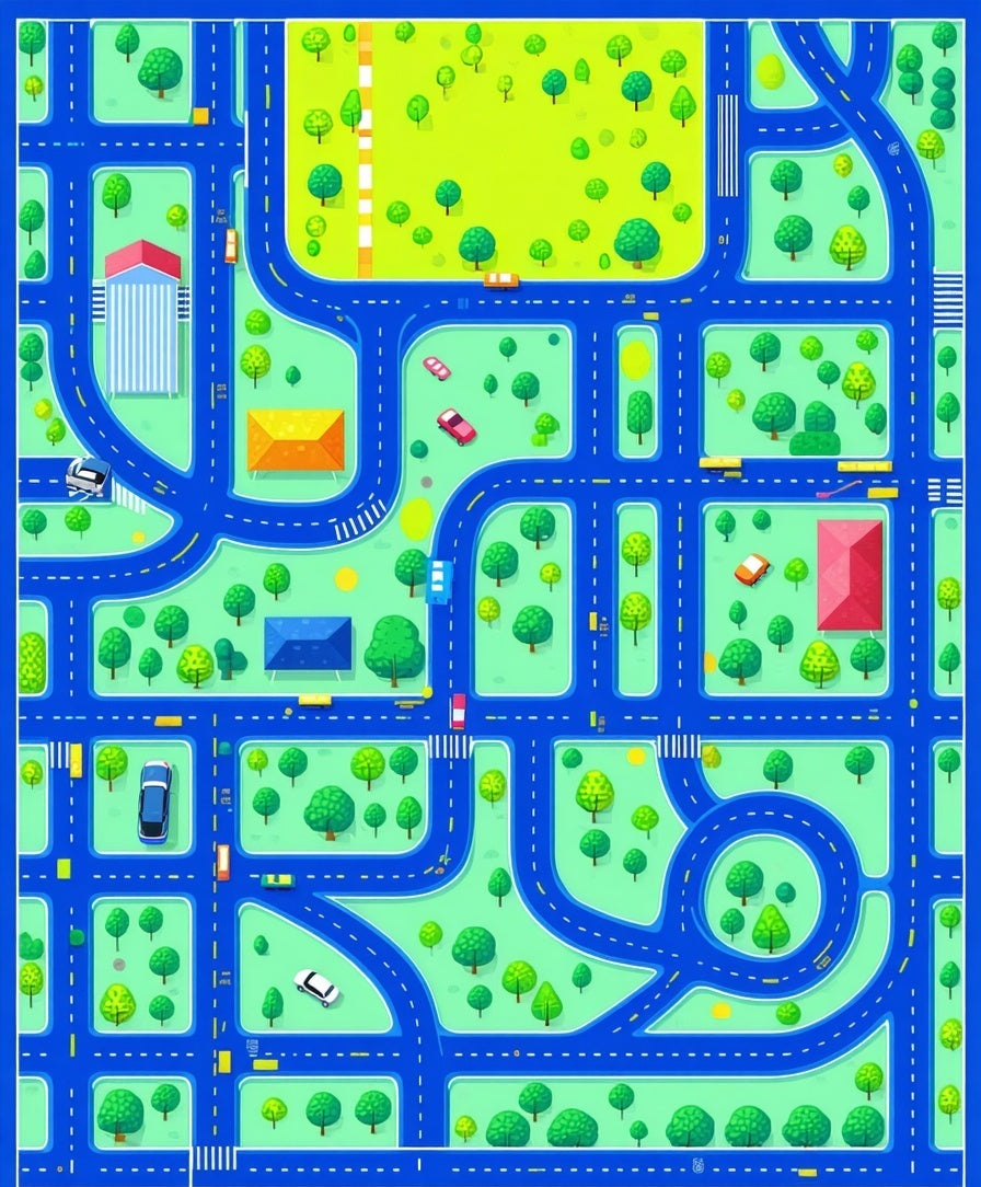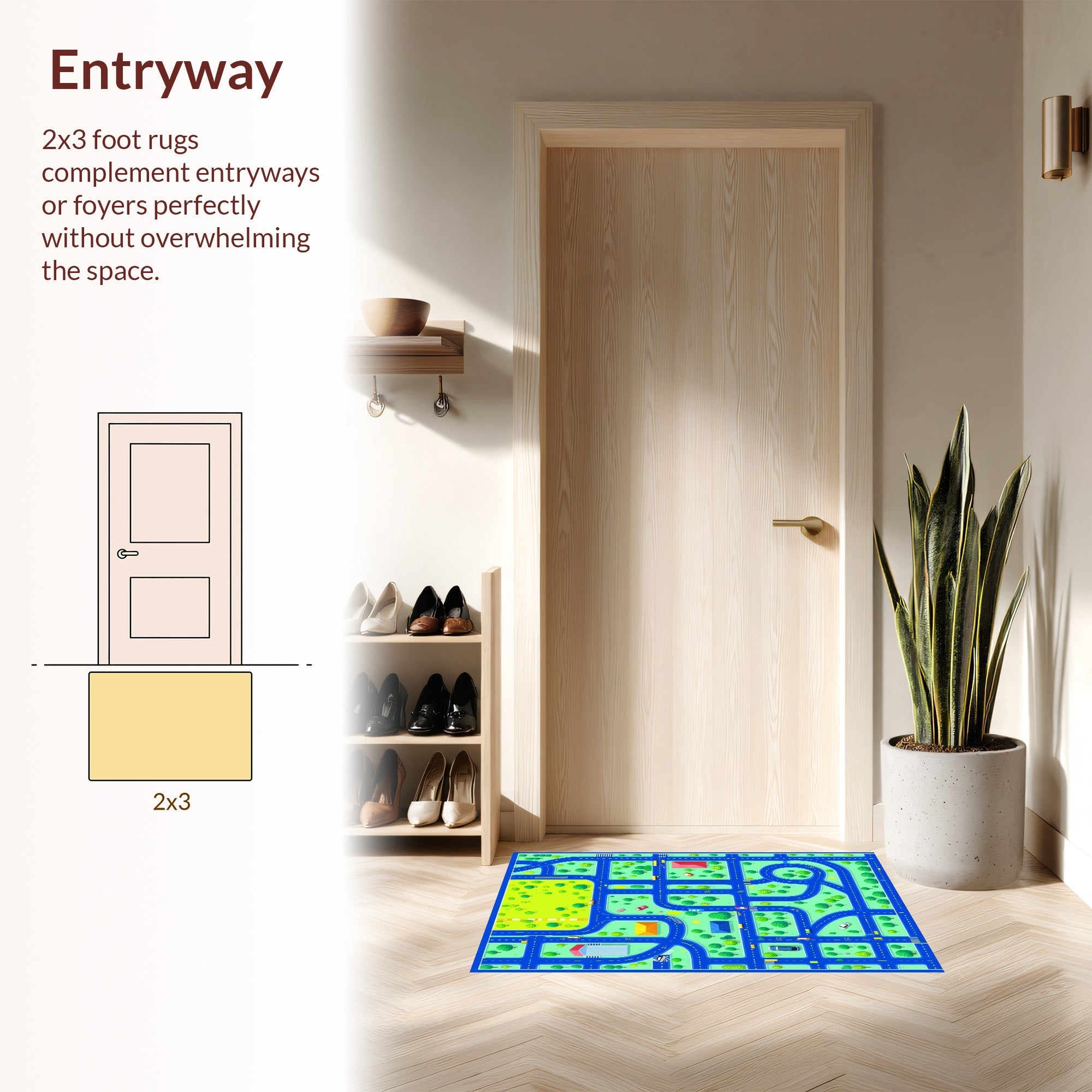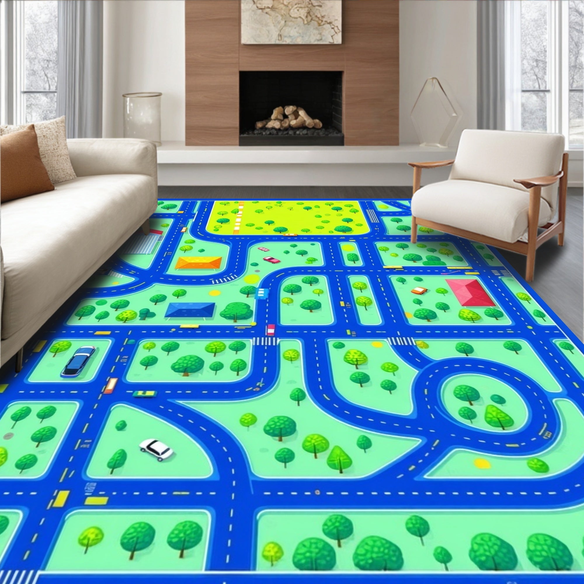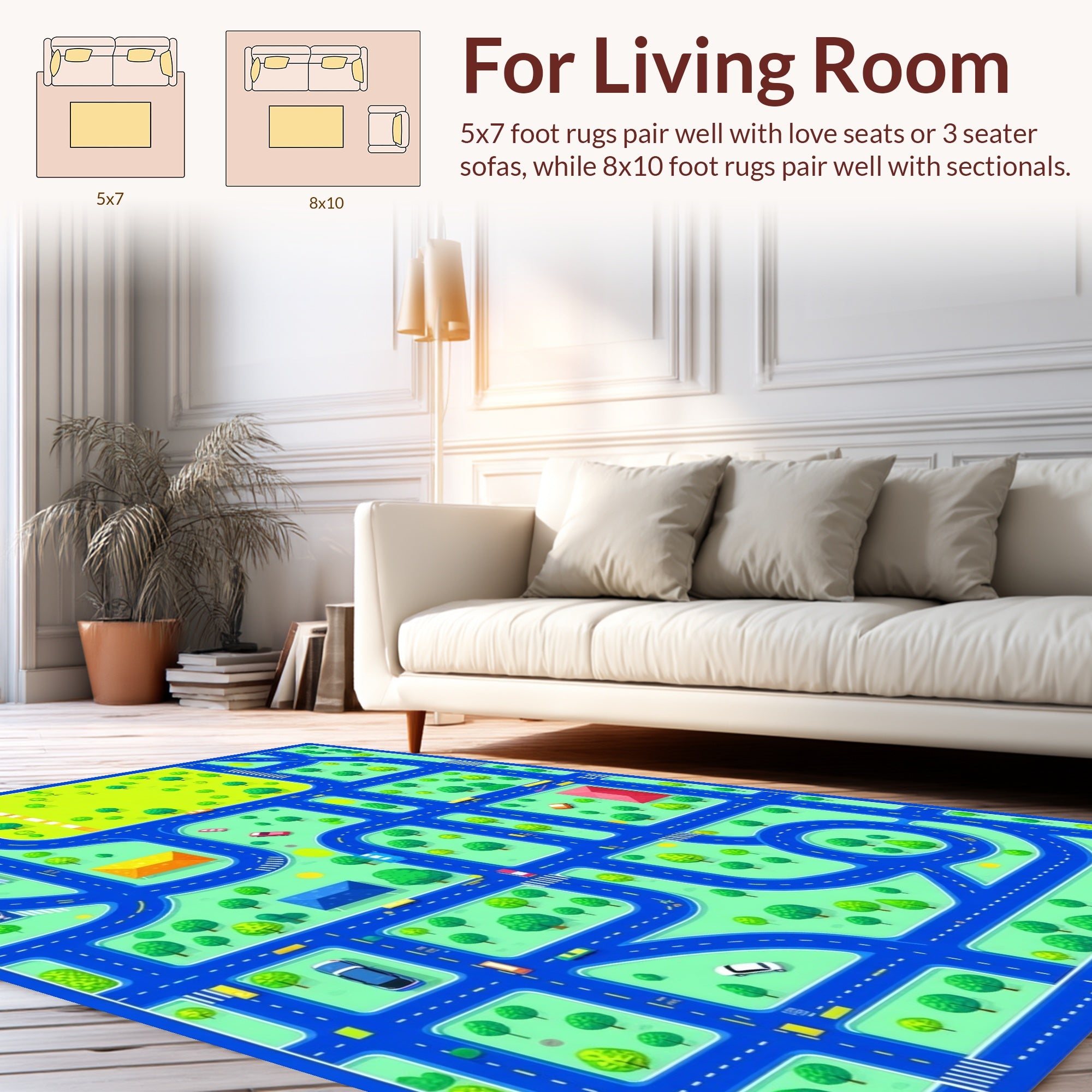 Flatwoven High Traffic Area Rug, Vibrant Urban Map Aesthetic, Non Slip, Stain Resistant, Washable Area Rugs for Living Room, Bedroom (Green) Overview: