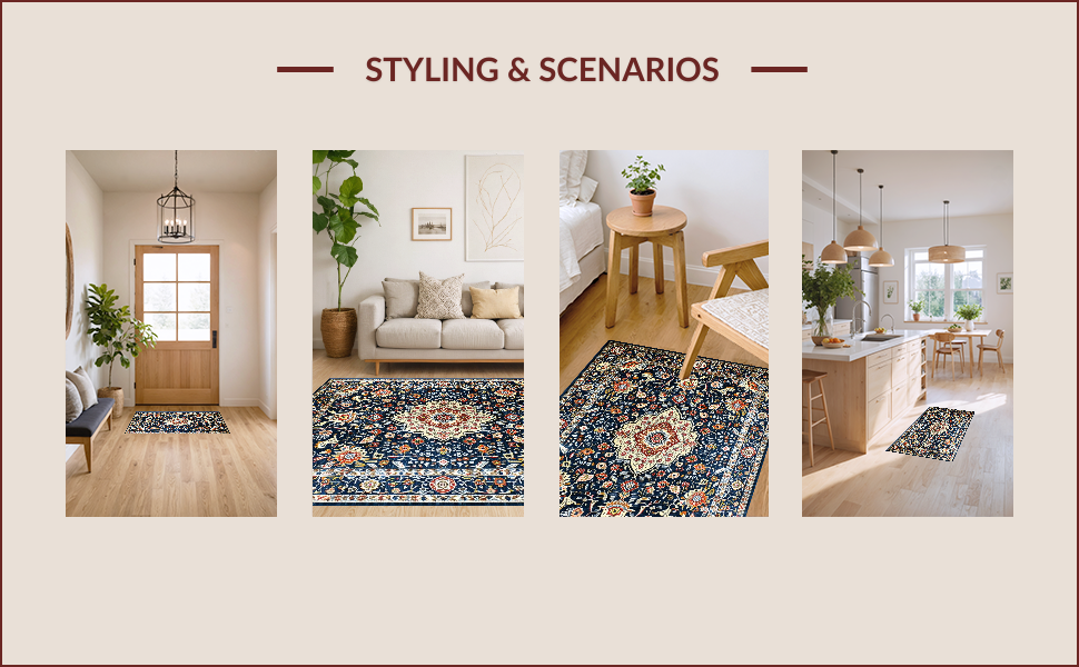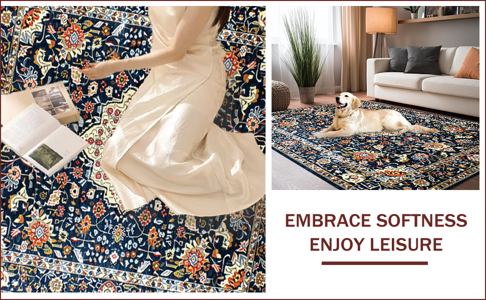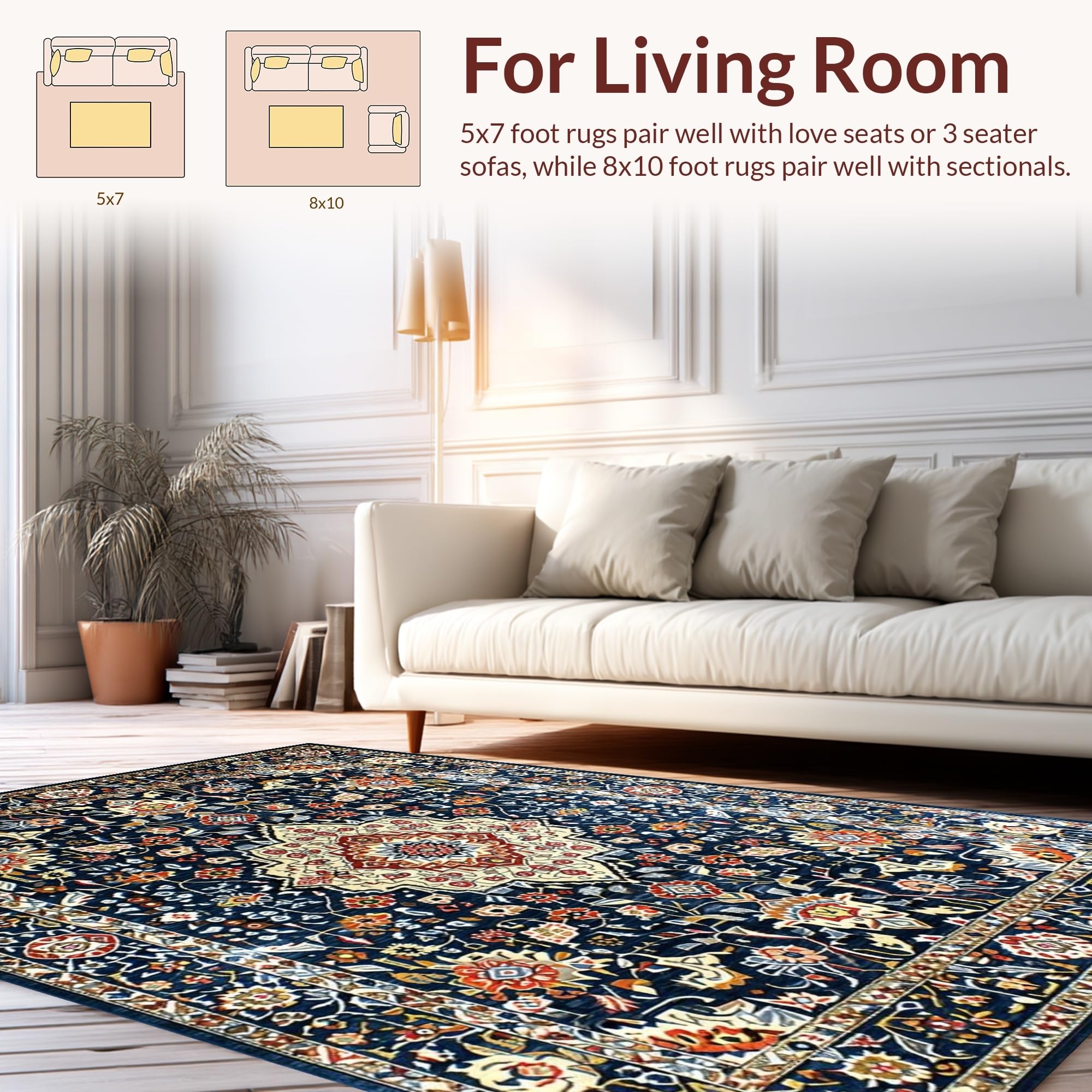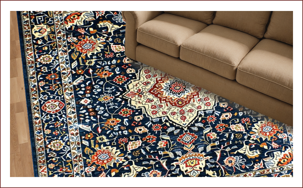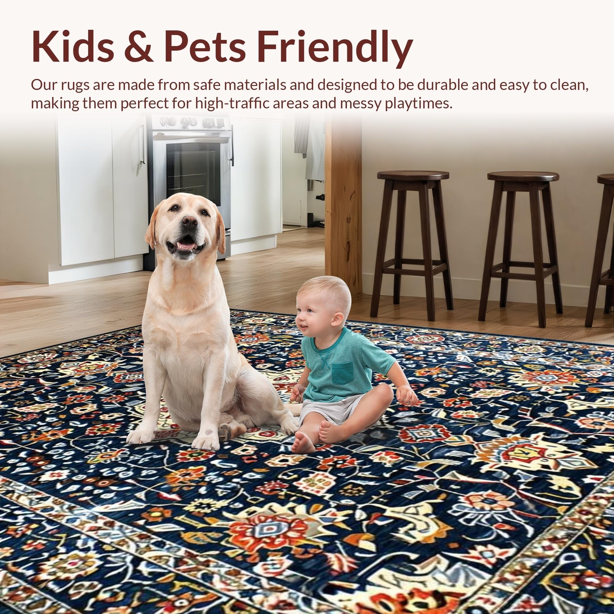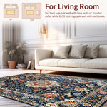 Ultra Soft Area Rug, Non Slip, Stain Resistant, Washable Area Rugs for Living Room, Bedroom, Vibrant Vintage Distressed Composition(Blue) Overview: