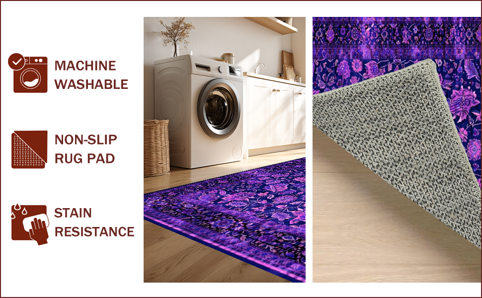 Ultra Soft Area Rug, Non Slip, Stain Resistant, Washable Area Rugs for Living Room, Bedroom, Vibrant Vintage Paisley Aesthetic(Purple) Overview: