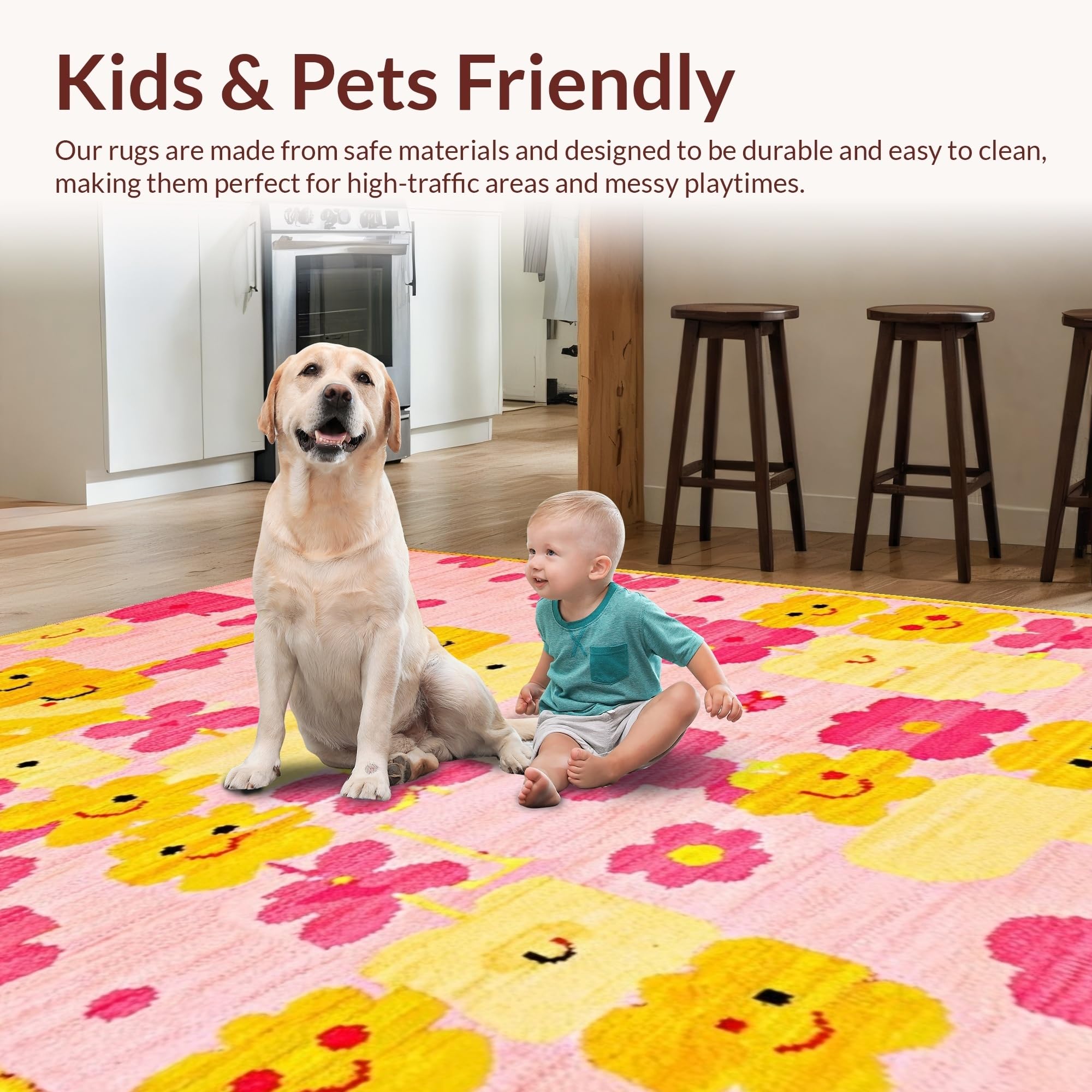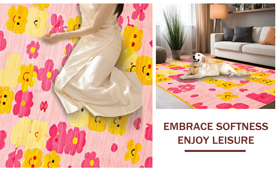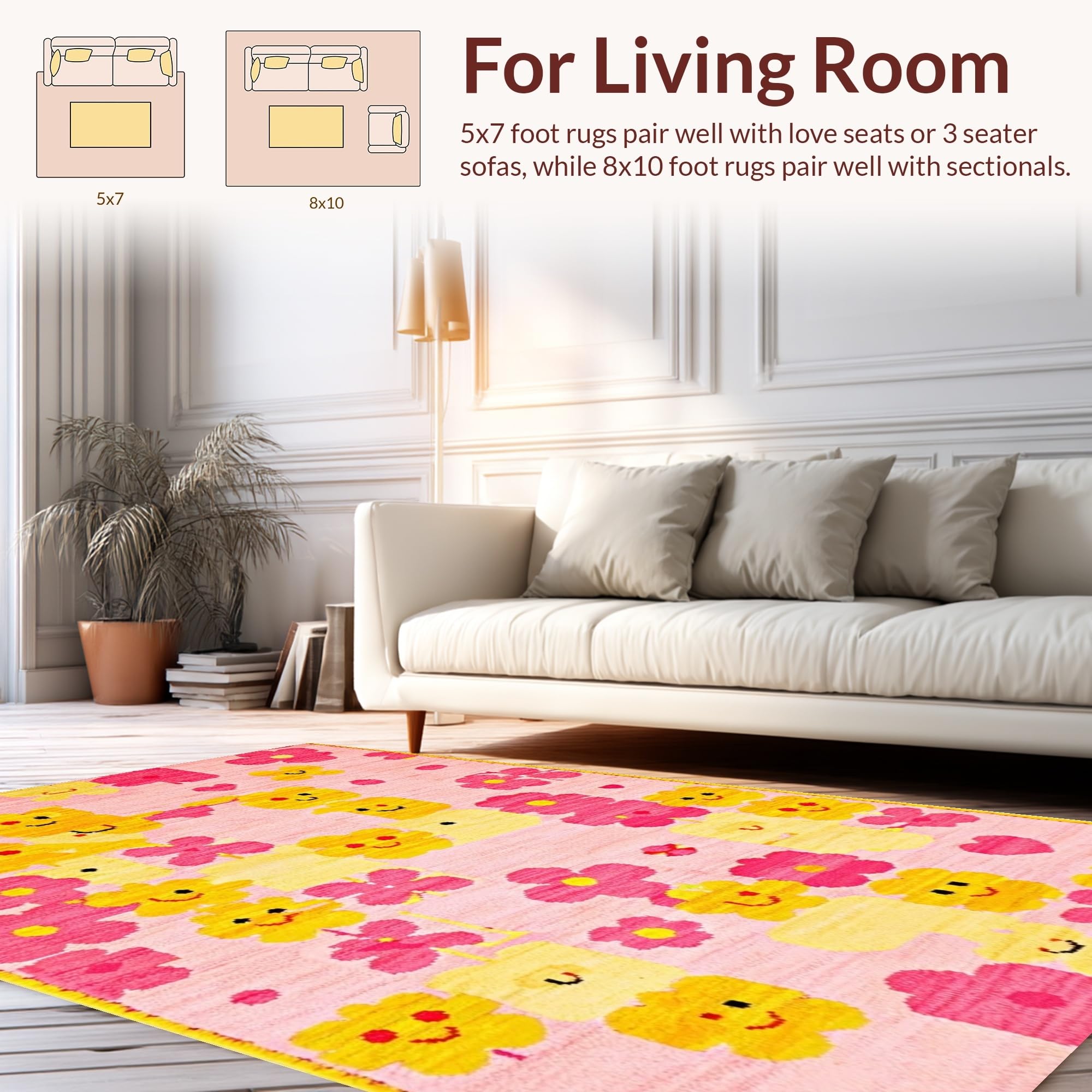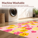 Ultra Soft Area Rug, Non Slip, Stain Resistant, Washable Area Rugs for Living Room, Bedroom, Vibrant Whimsical Flower Arrangement(Pink) Overview: