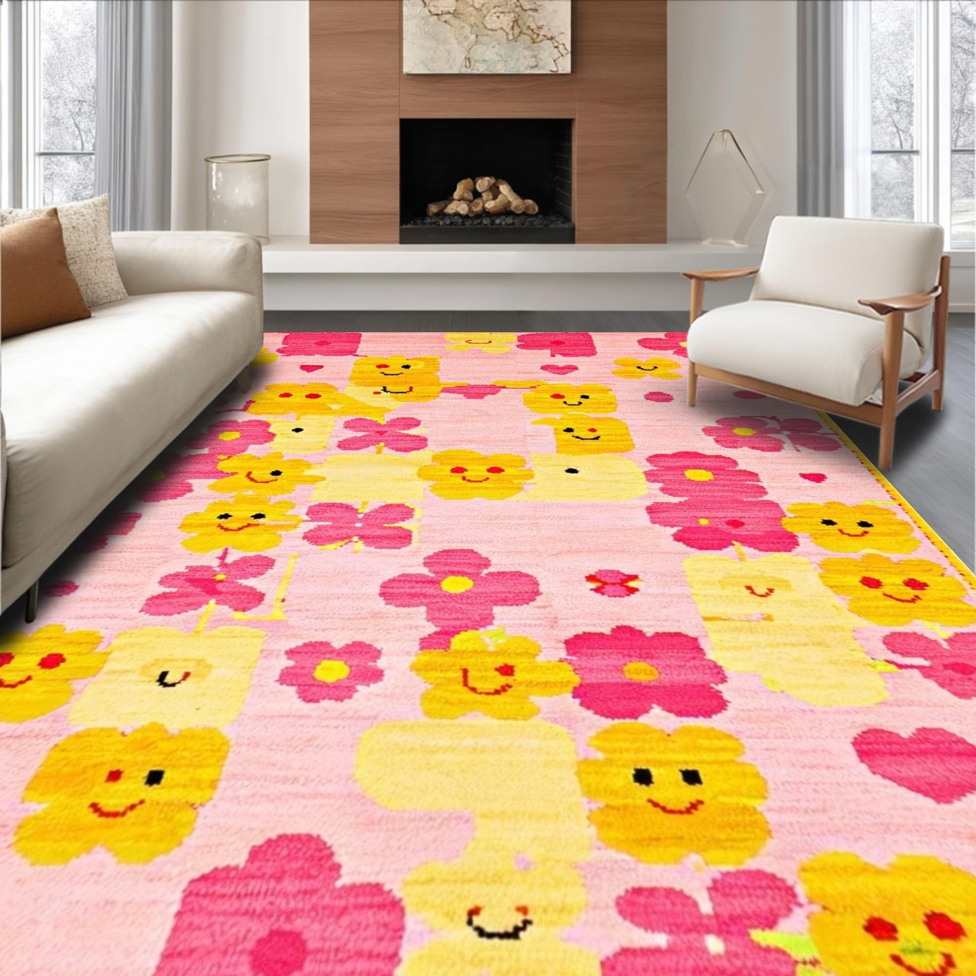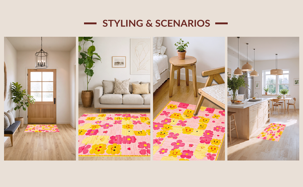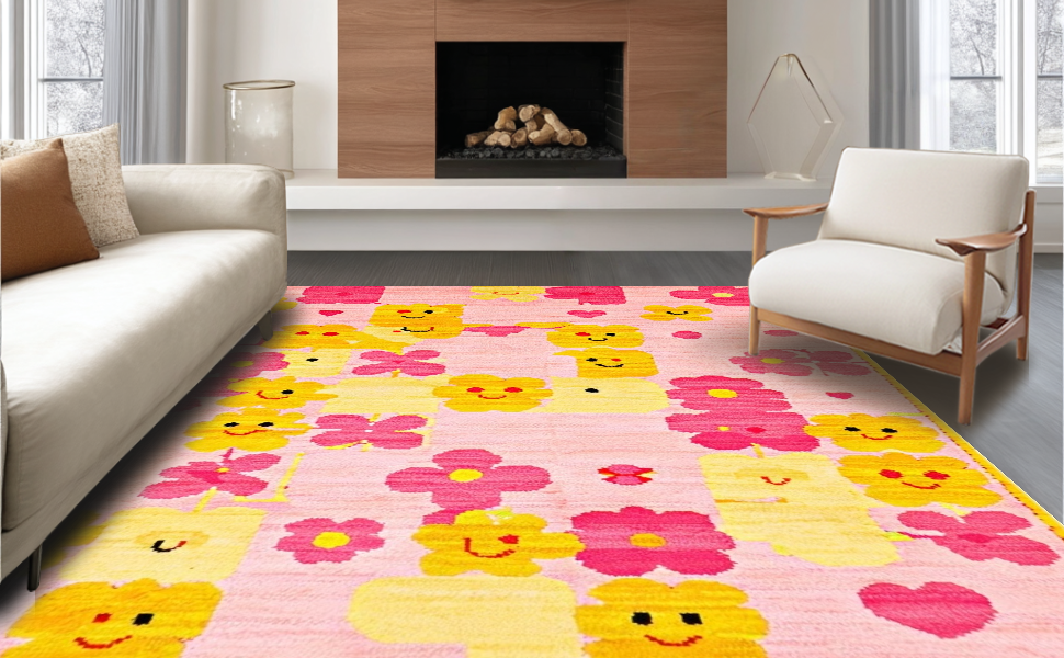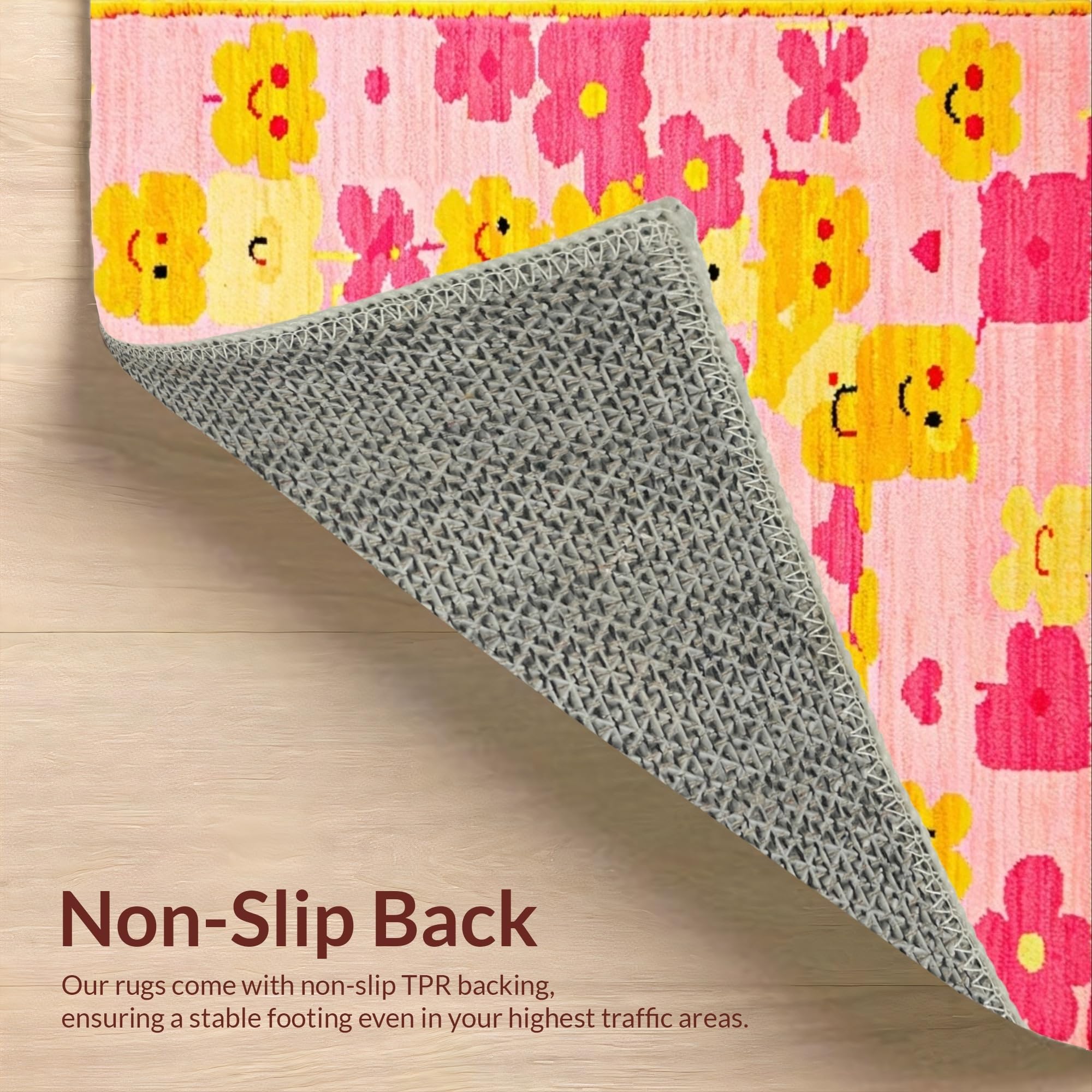 Ultra Soft Area Rug, Non Slip, Stain Resistant, Washable Area Rugs for Living Room, Bedroom, Vibrant Whimsical Flower Arrangement(Pink) Overview: