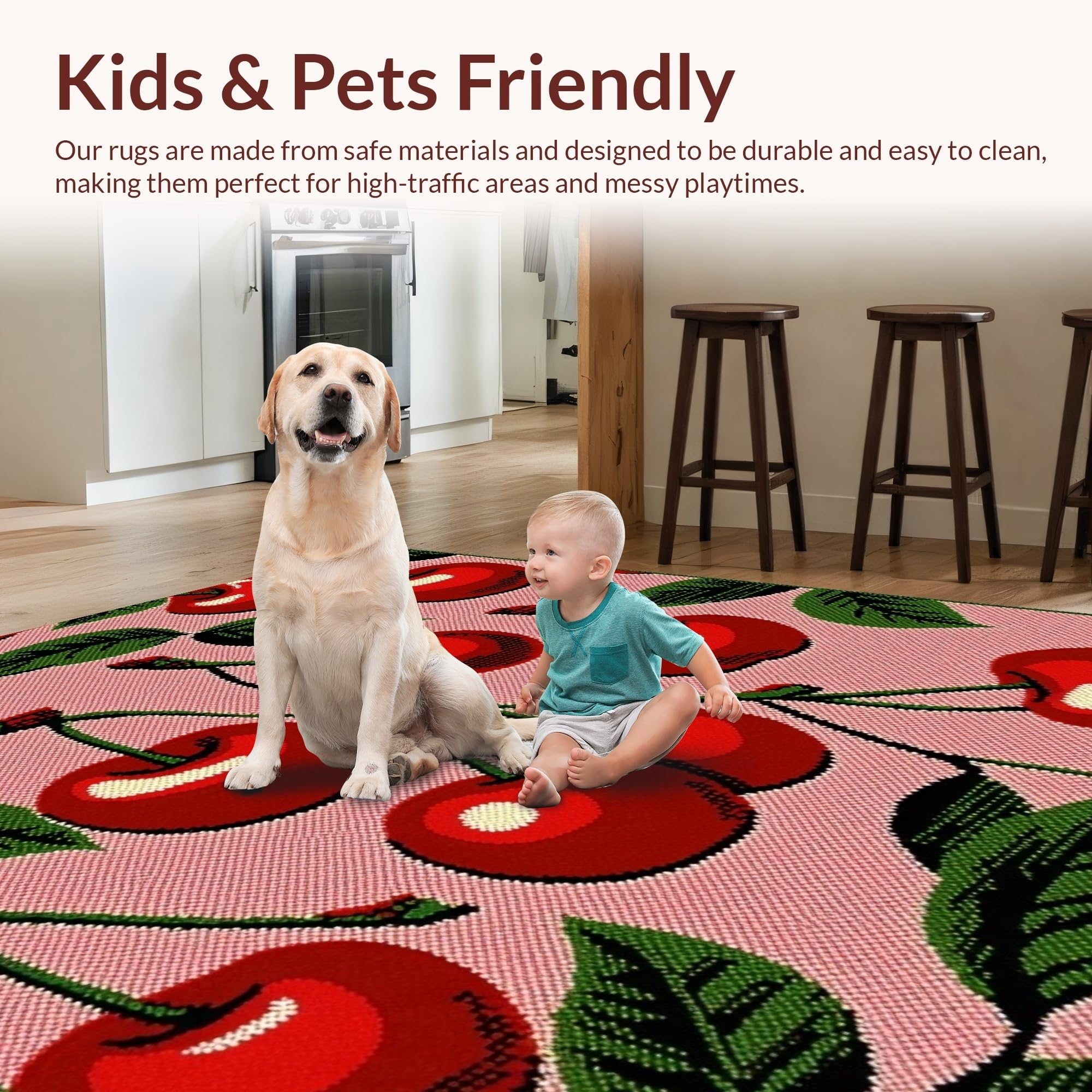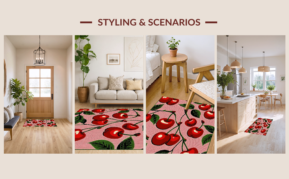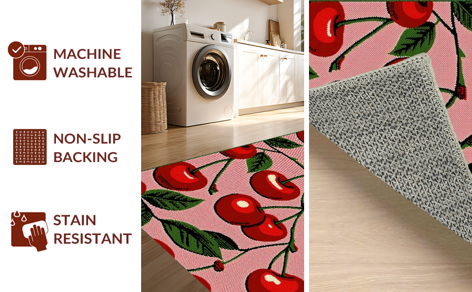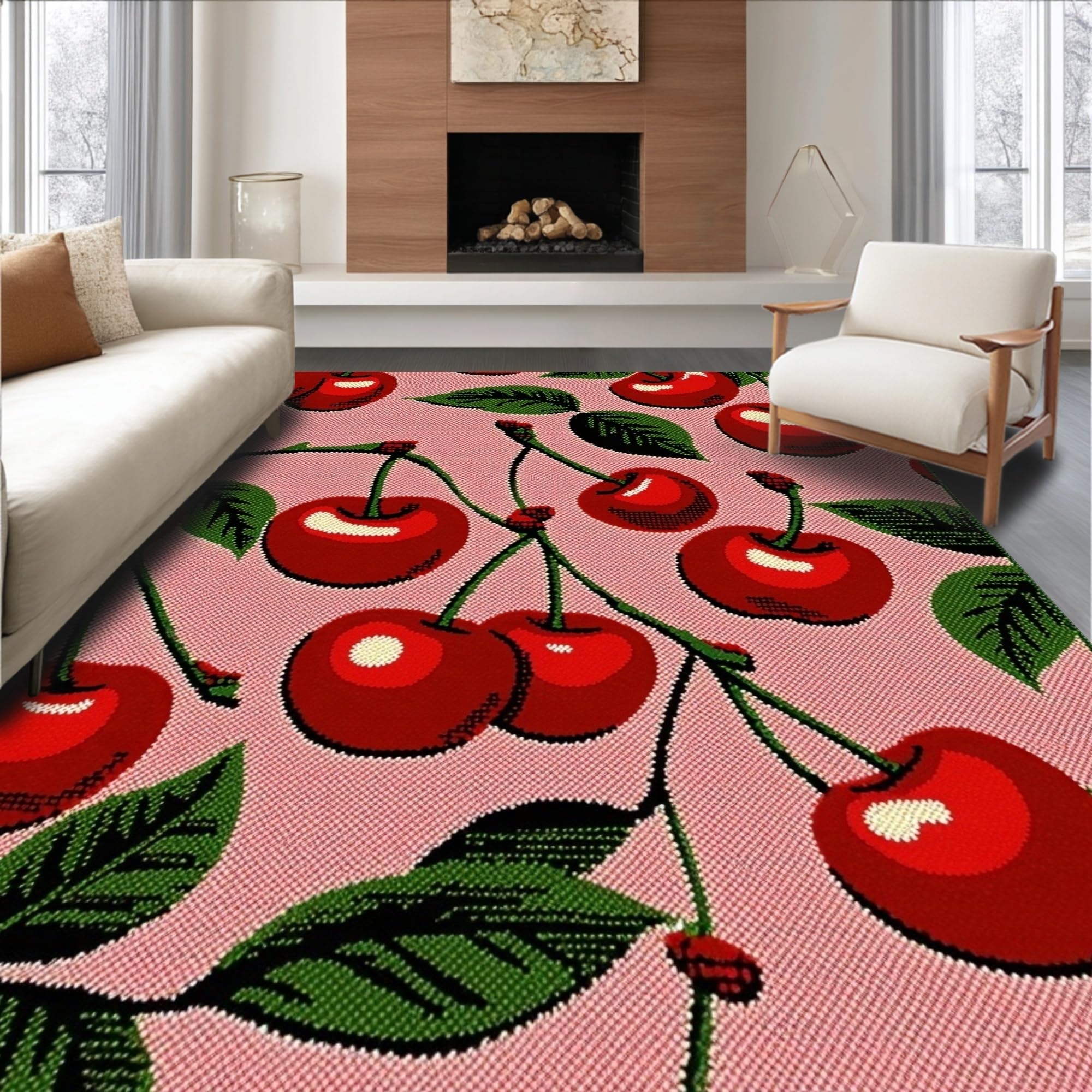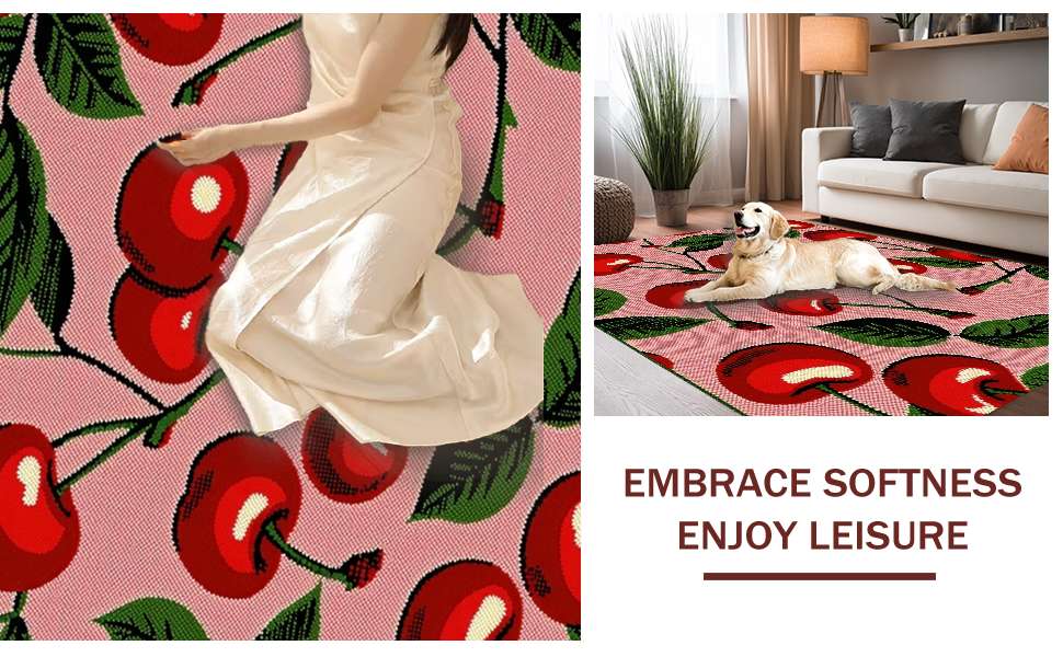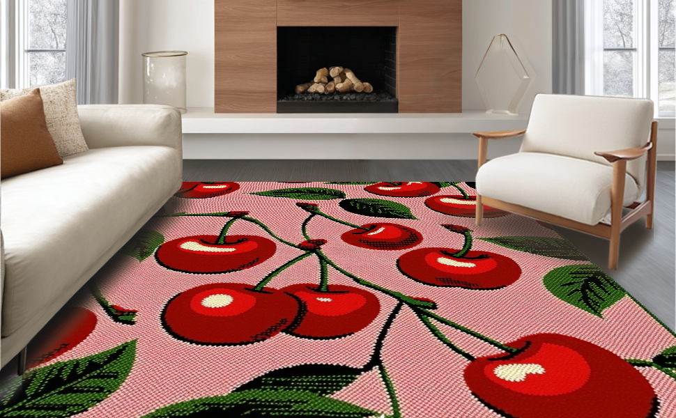 Ultra Soft Area Rug, Non Slip, Stain Resistant, Washable Area Rugs for Living Room, Bedroom, Vibrant Whimsical Fruit Motif(Pink) Overview: