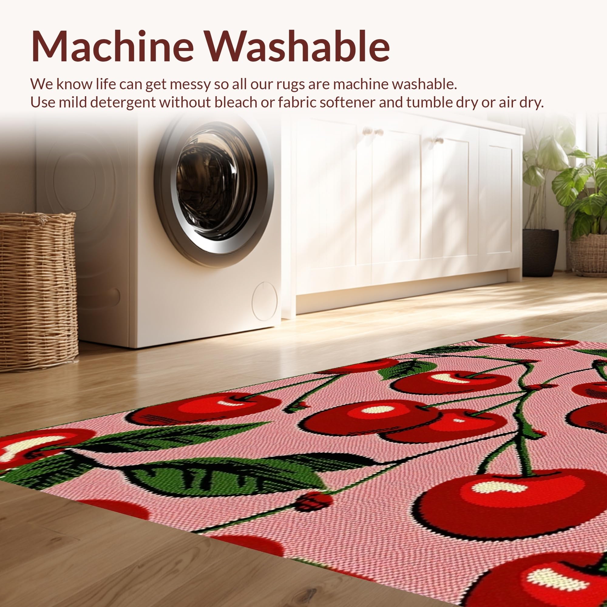 - Machine Washable: Our rugs can be easily thrown in the wash machine.