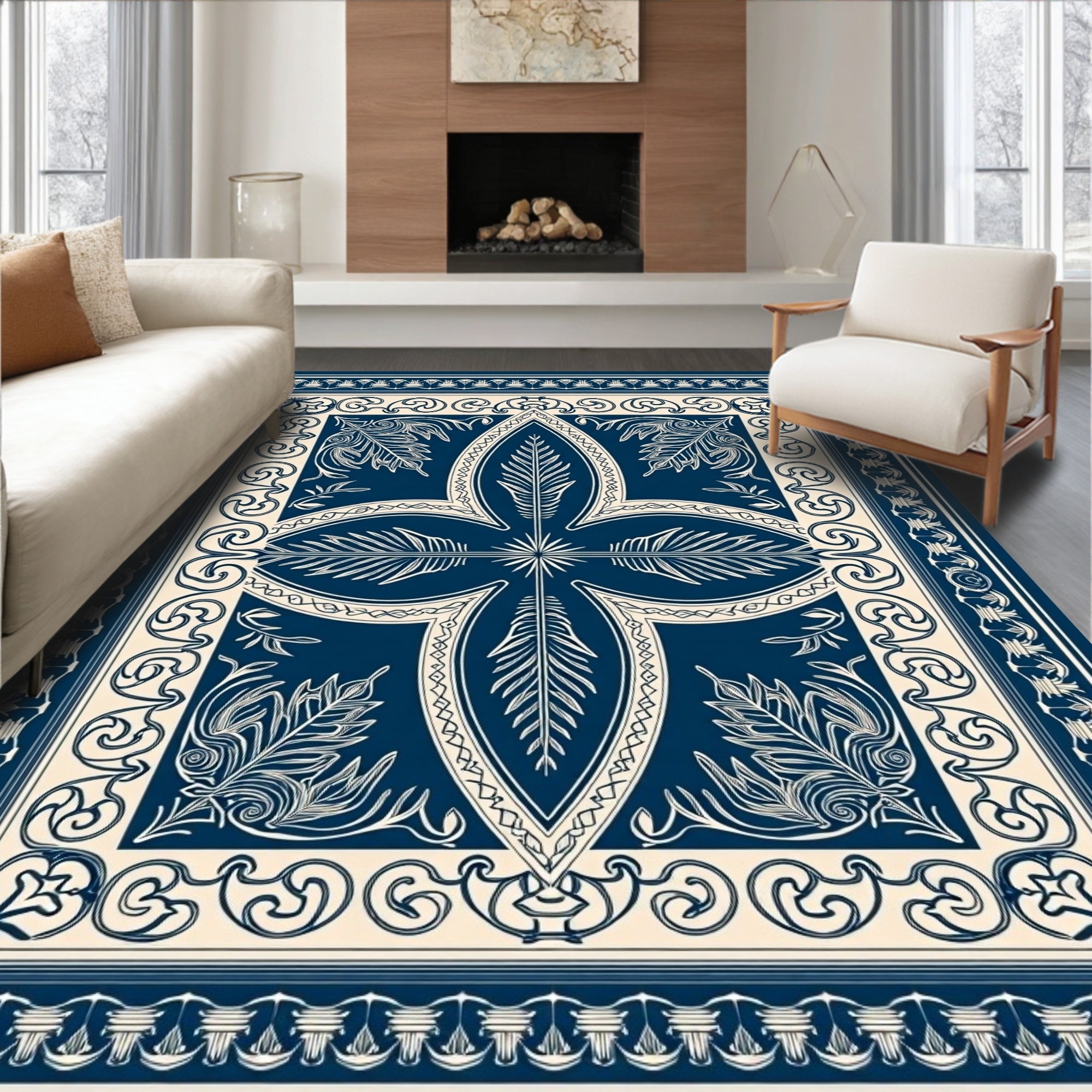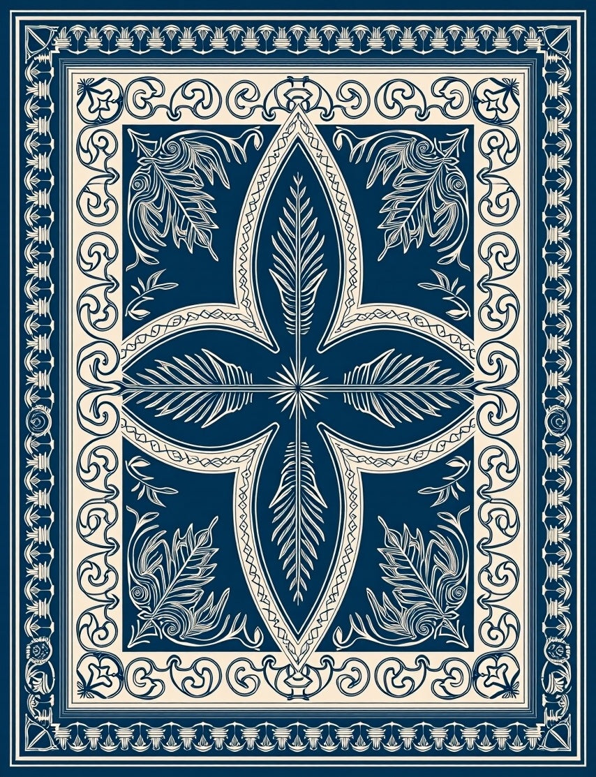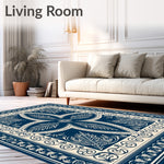 Flatwoven High Traffic Area Rug, Victorian Amber Thistle with Latticework and Delicate Leaf Filigree, Non Slip, Stain Resistant, Washable Area Rugs for Living Room, Bedroom (Blue) Overview: