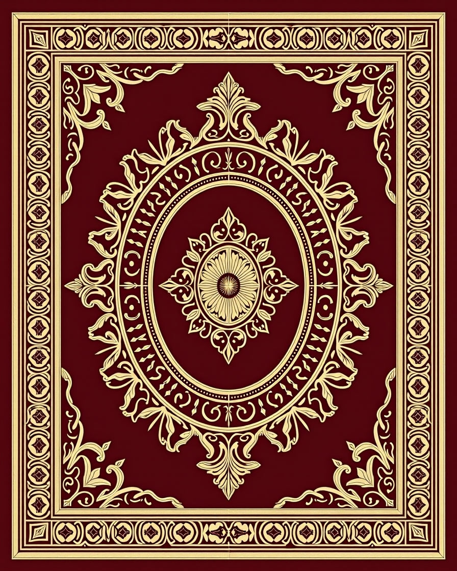 Victorian Medallion Filigree with Baroque Scrollwork and Ornate Botanical Motifs(Burgundy)