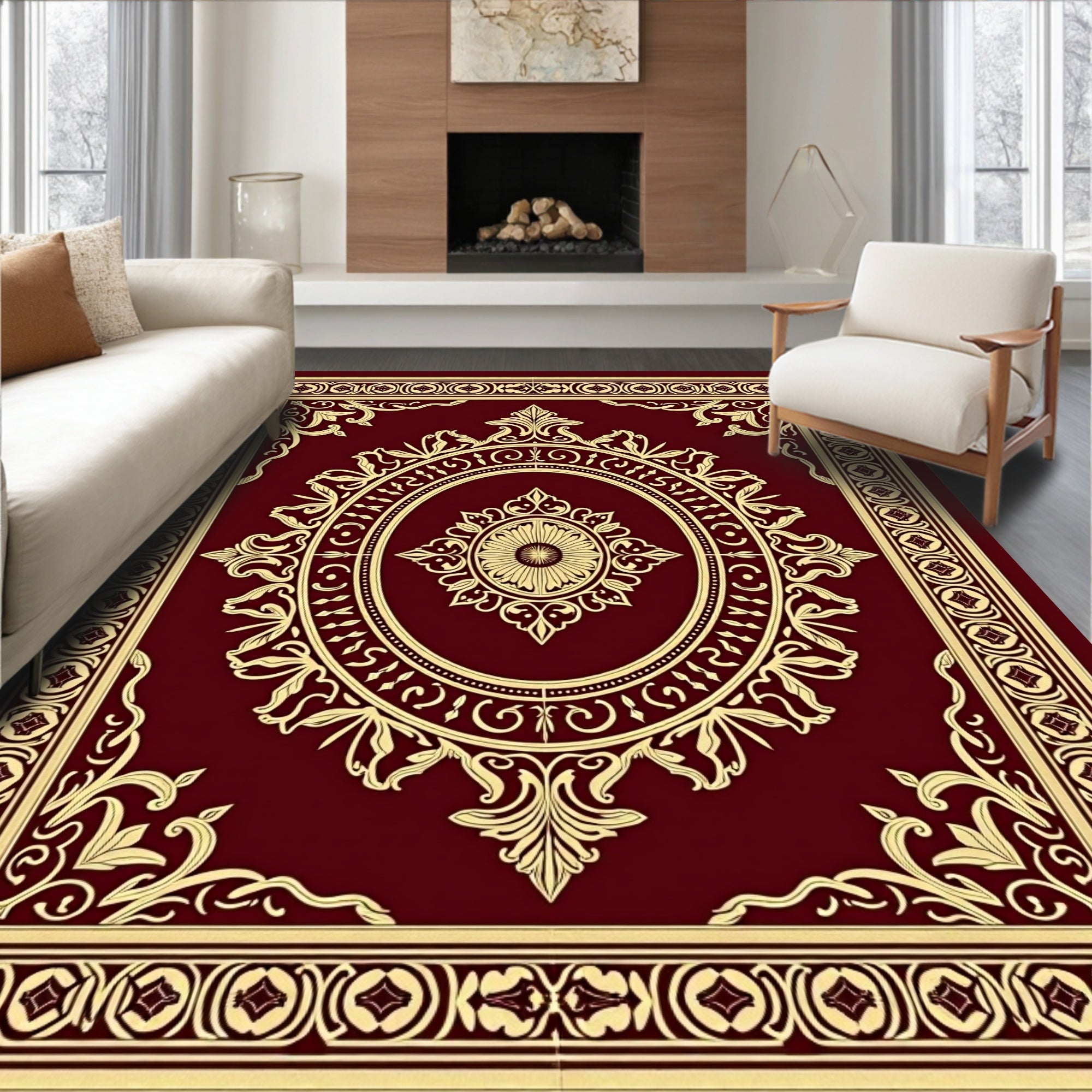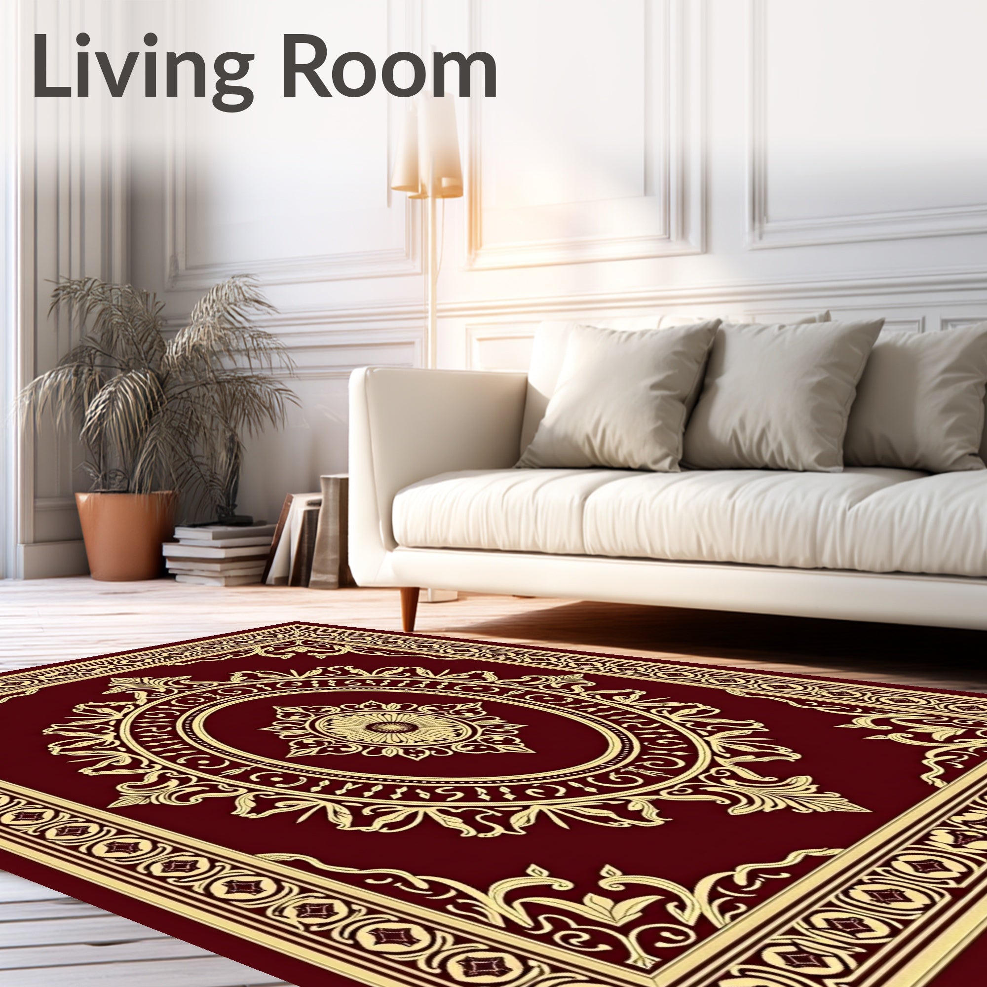 Ultra Soft Area Rug, Non Slip, Stain Resistant, Washable Area Rugs for Living Room, Bedroom, Victorian Medallion Filigree with Baroque Scrollwork and Ornate Botanical Motifs(Burgundy) Overview: