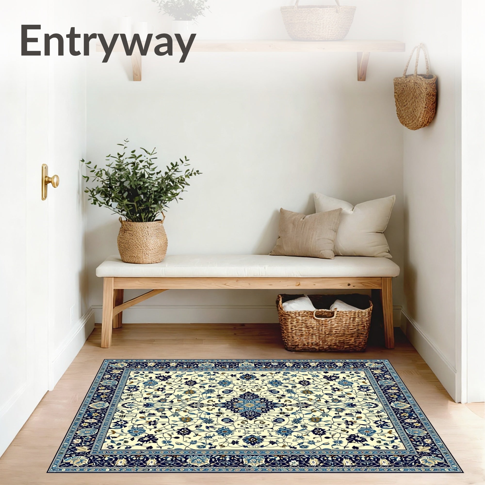 Ultra Soft Area Rug, Non Slip, Stain Resistant, Washable Area Rugs for Living Room, Bedroom, Vintage Beige Blue Hallway Area(Beige) Overview: