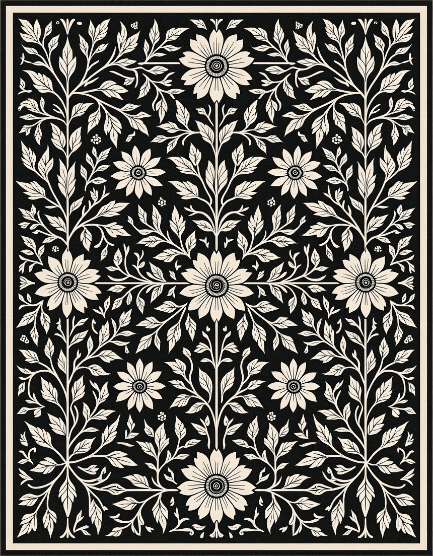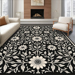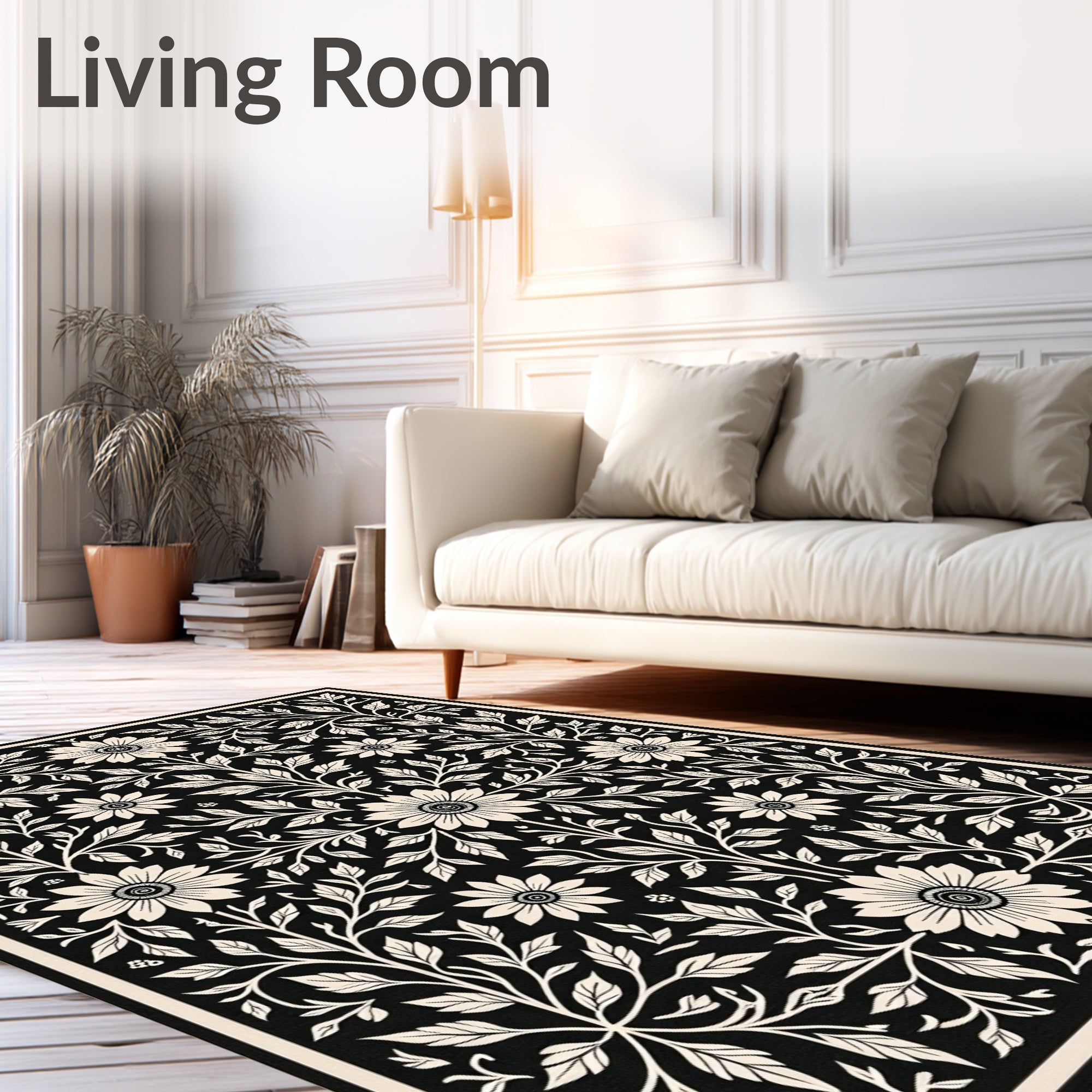 Ultra Soft Area Rug, Non Slip, Stain Resistant, Washable Area Rugs for Living Room, Bedroom, Vintage Botanical Garden Meadow Blossom Arrangement(Black) Overview: