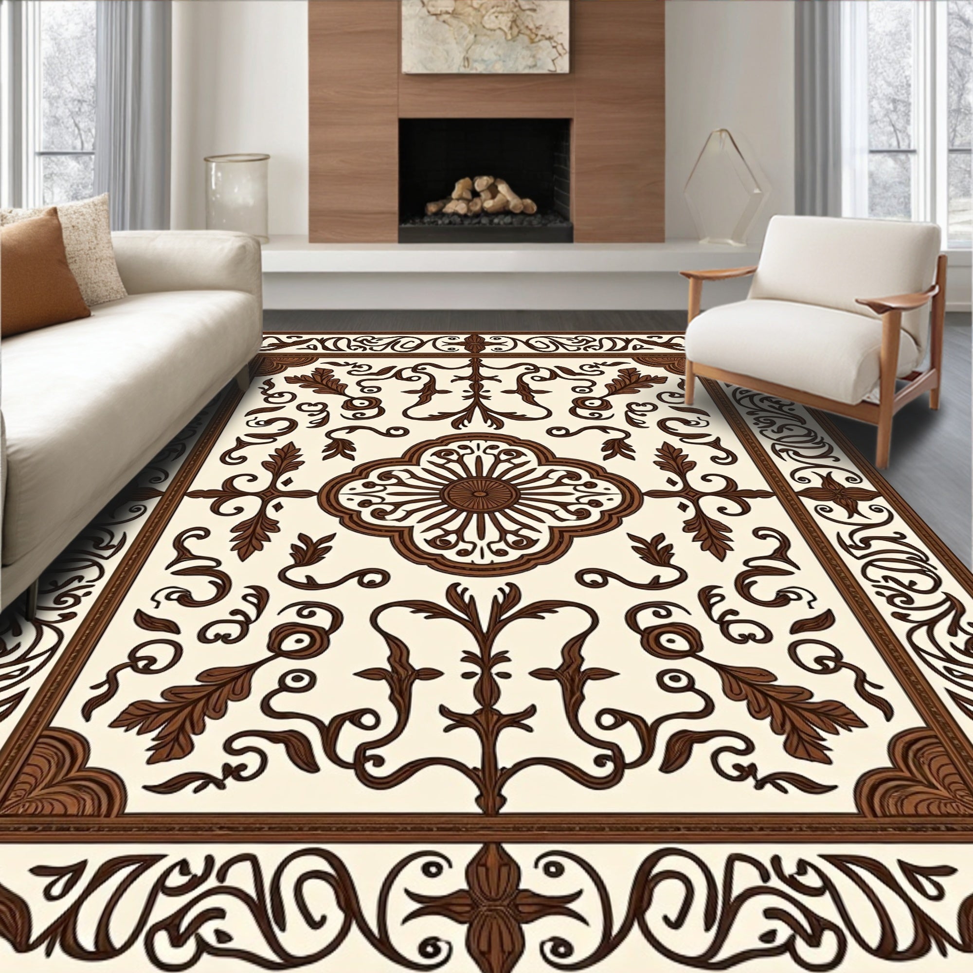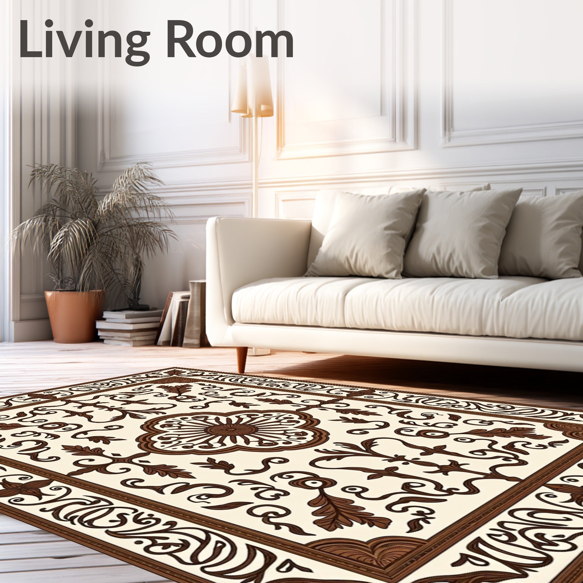 Ultra Soft Area Rug, Non Slip, Stain Resistant, Washable Area Rugs for Living Room, Bedroom, Vintage Botanical Garden Paisley Scroll Motif(Beige) Overview: