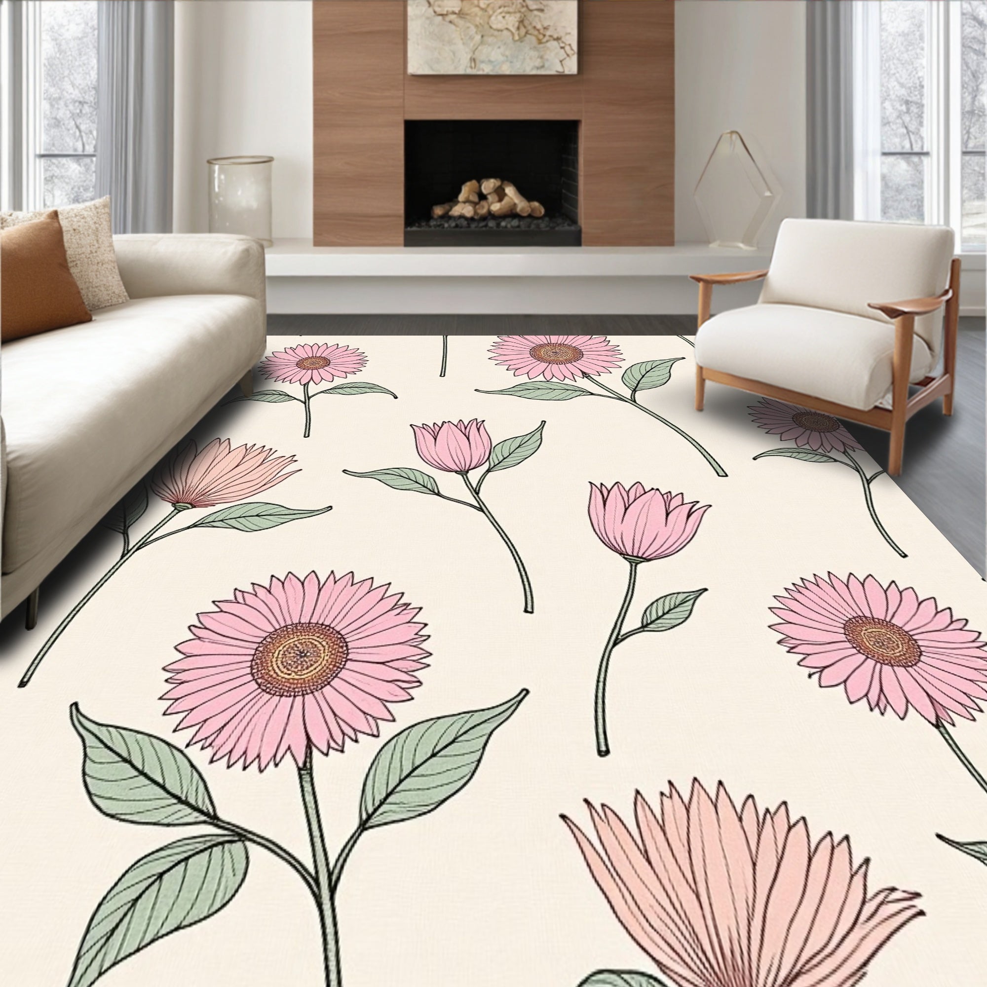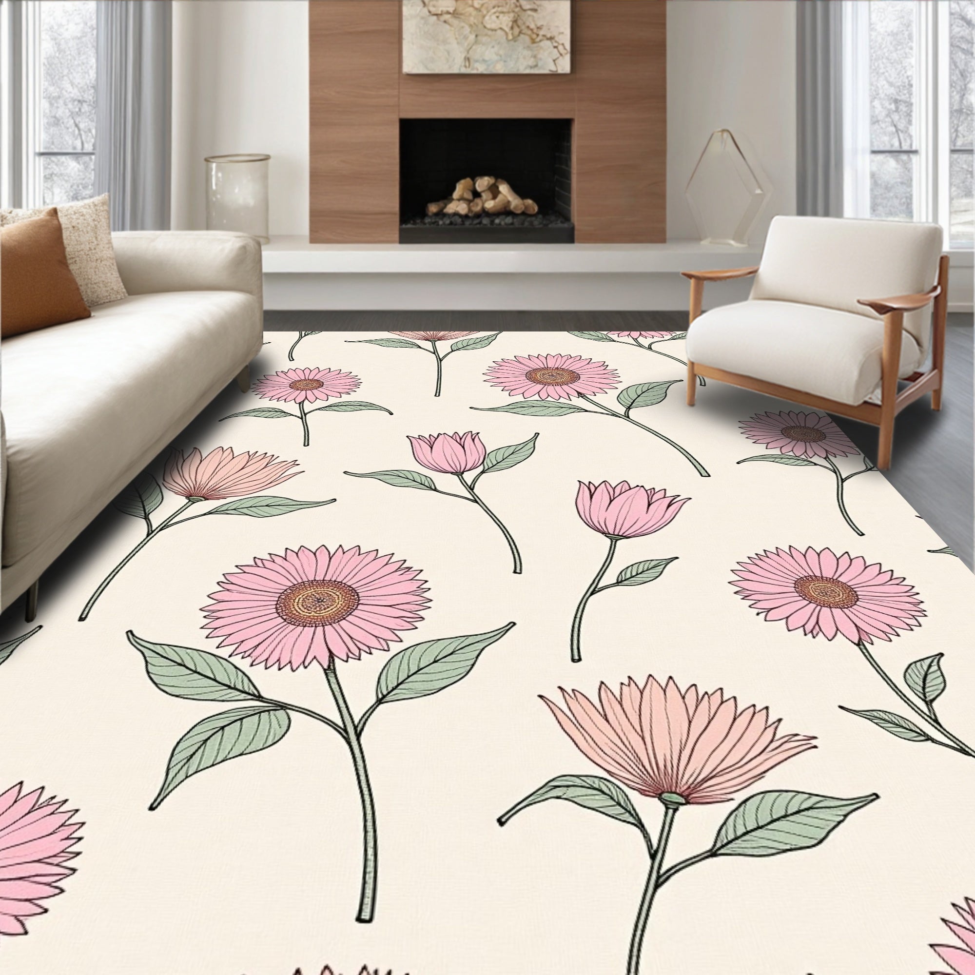Ultra Soft Area Rug, Non Slip, Stain Resistant, Washable Area Rugs for Living Room, Bedroom, Vintage Botanical Sketch Illustrated(Pink) Overview: