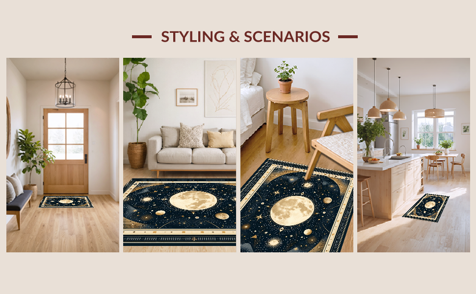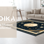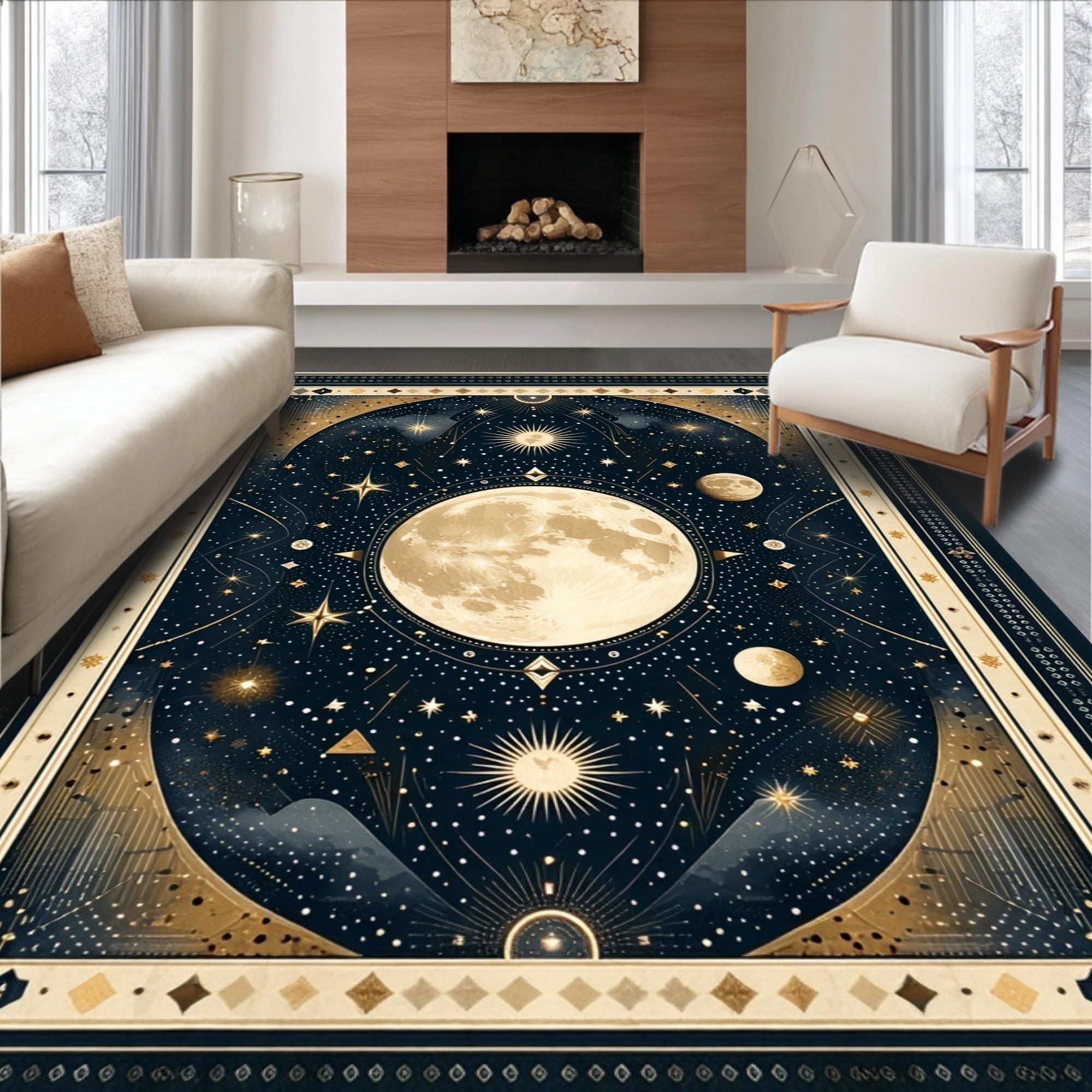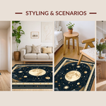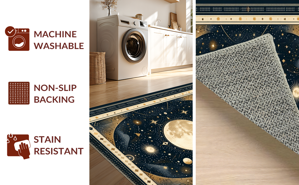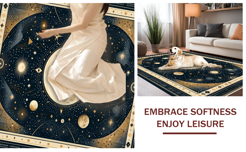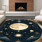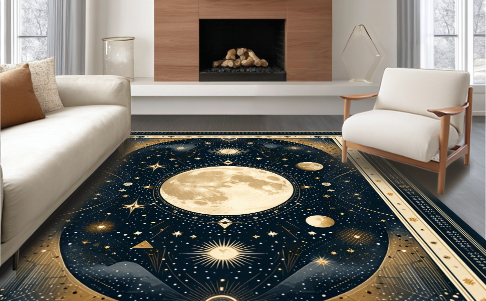 Ultra Soft Area Rug, Non Slip, Stain Resistant, Washable Area Rugs for Living Room, Bedroom, Vintage Crescent Solar Design(Black) Overview: