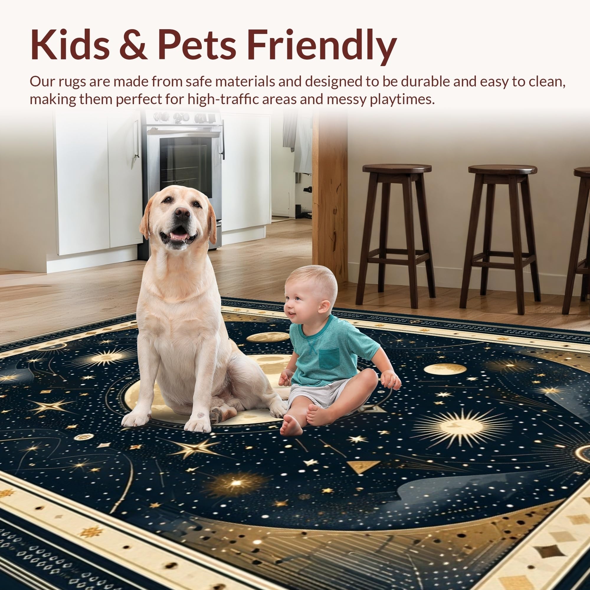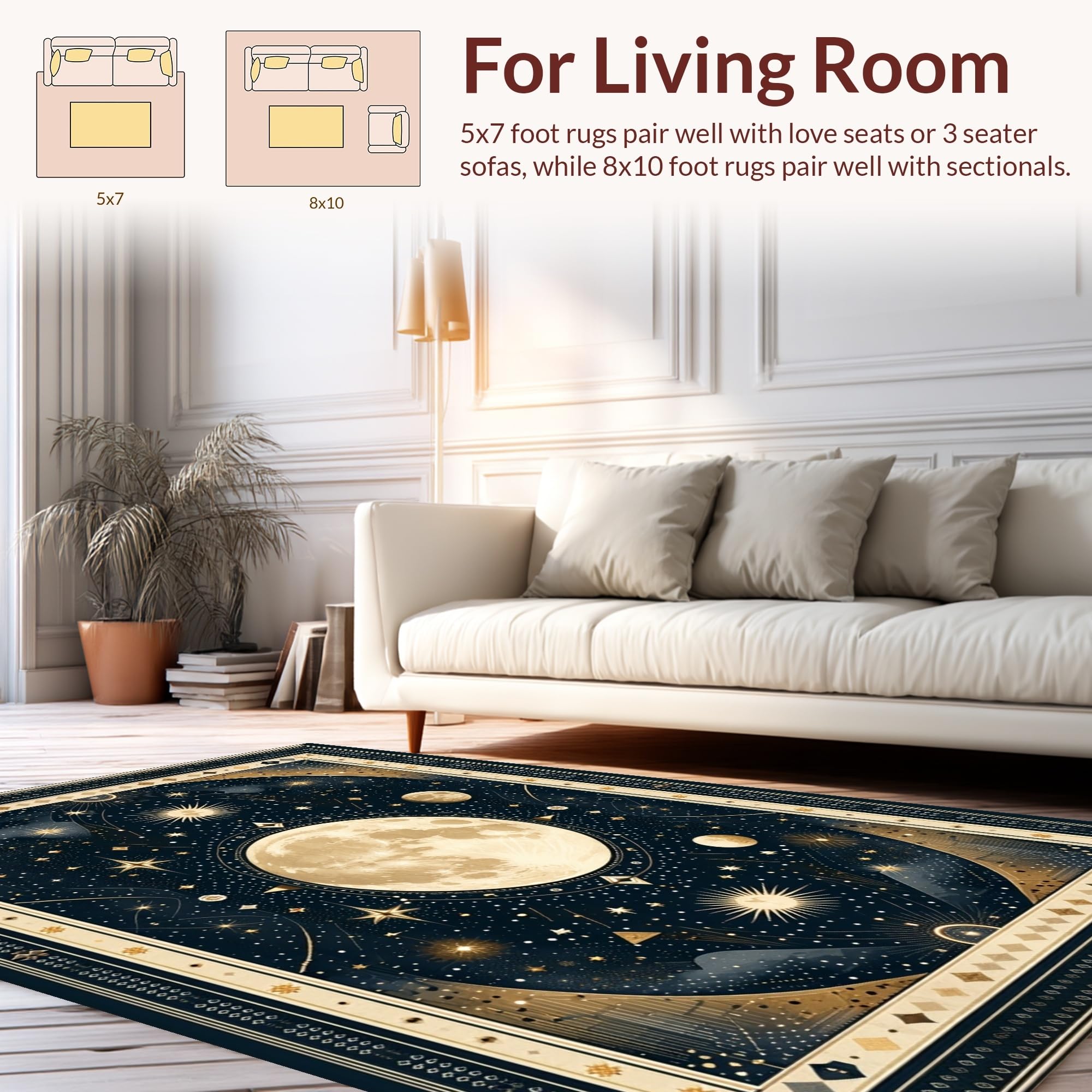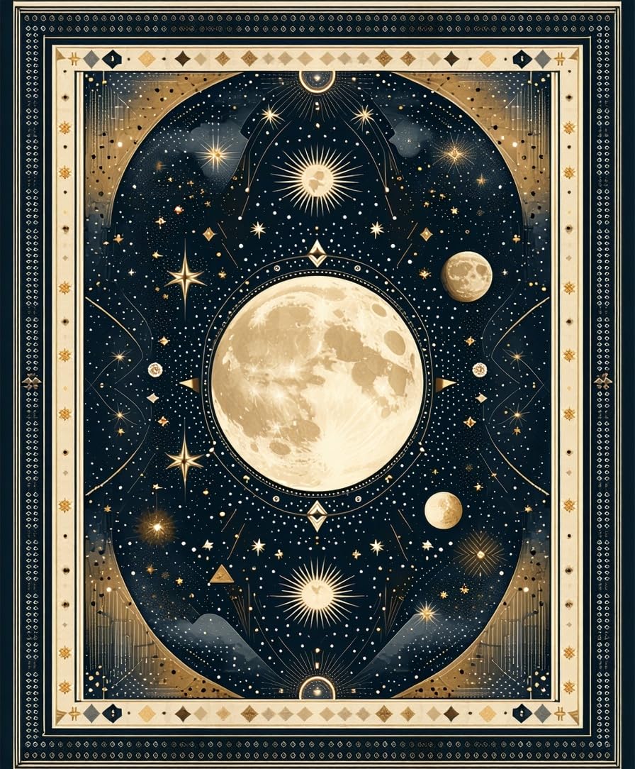 Ultra Soft Area Rug, Non Slip, Stain Resistant, Washable Area Rugs for Living Room, Bedroom, Vintage Crescent Solar Design(Black) Overview: