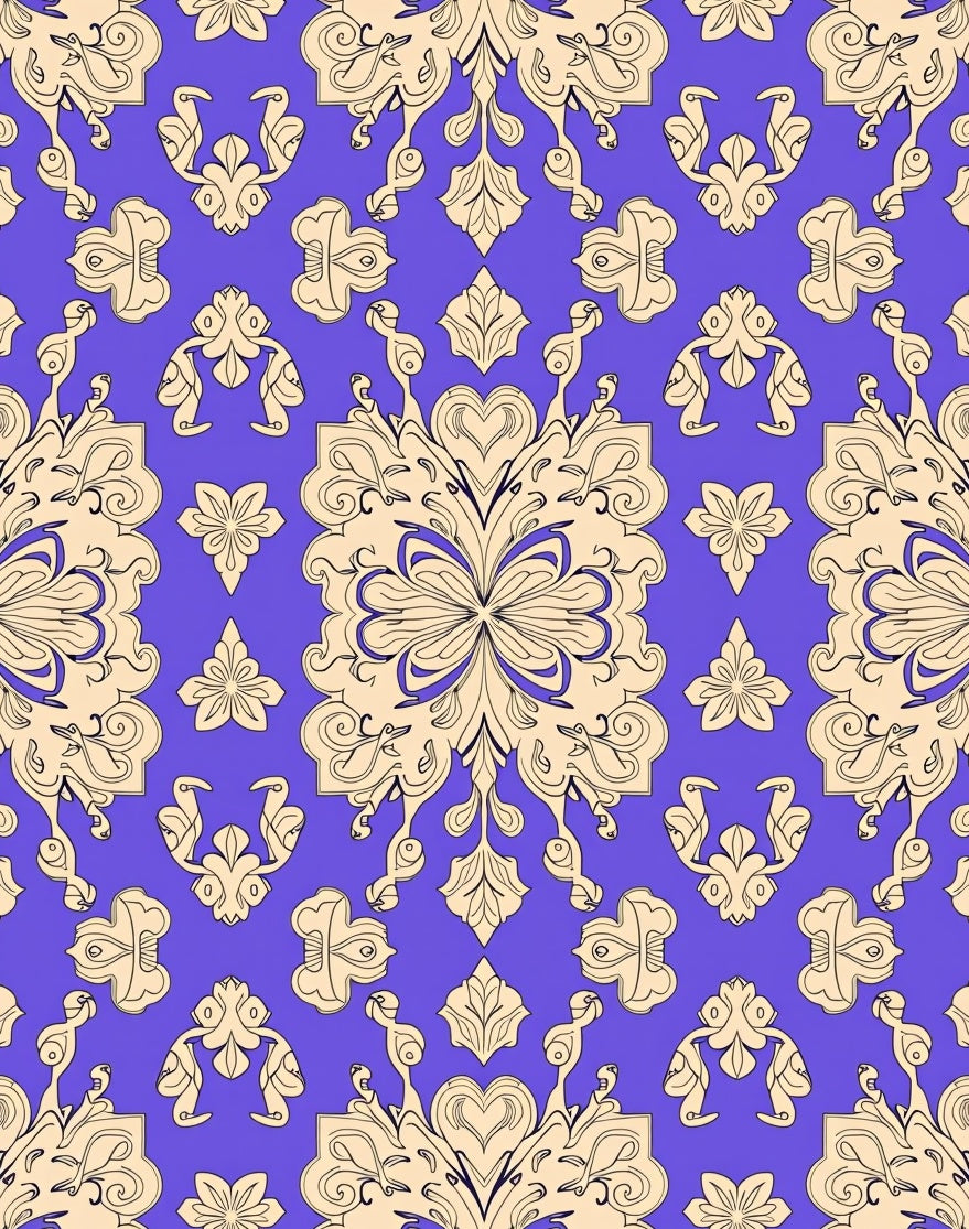 Vintage Damask with Flowing Botanical Vine Details(Purple)
