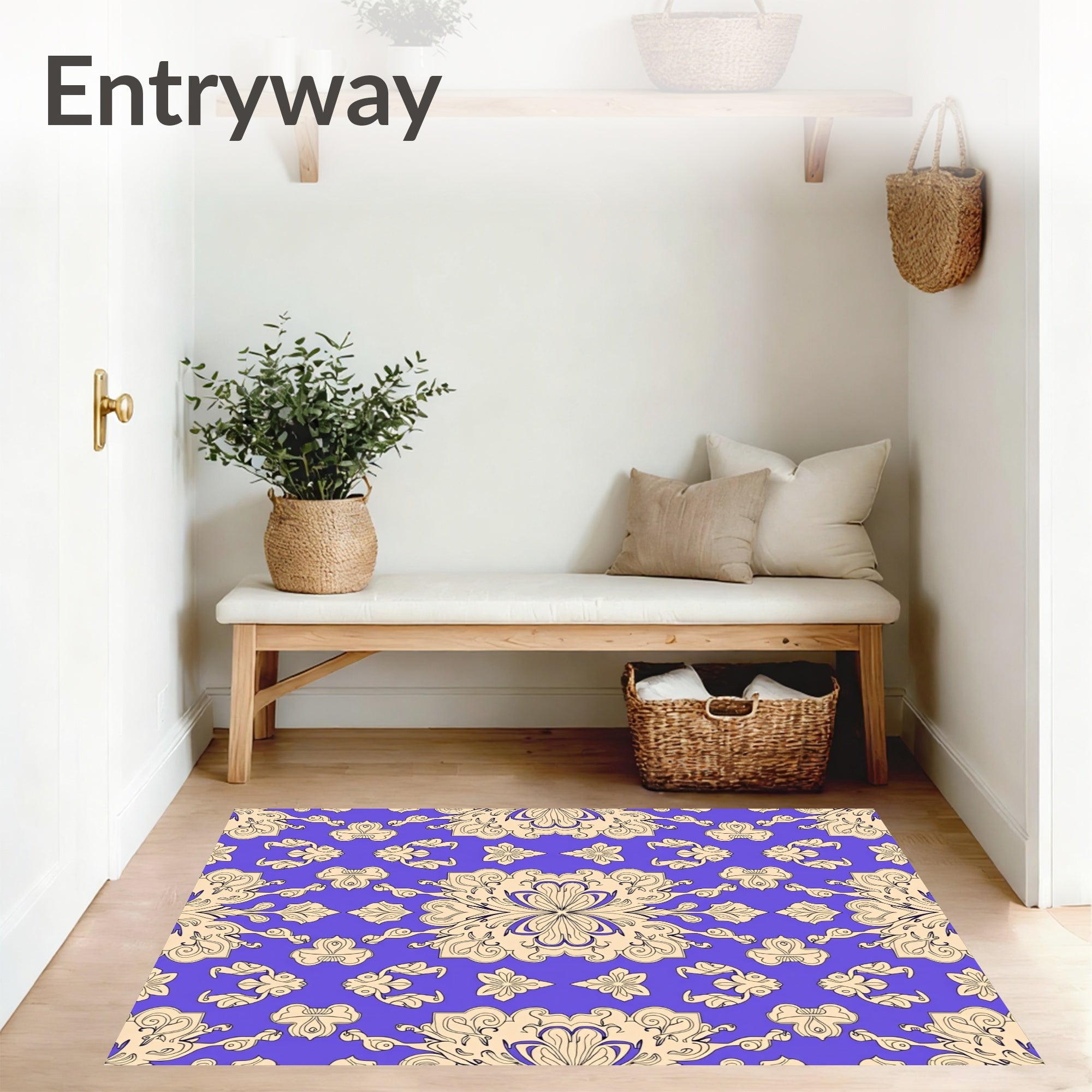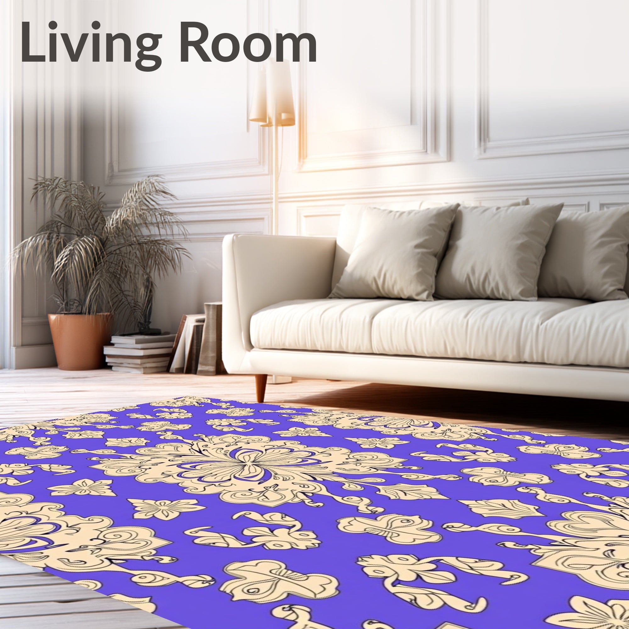 Ultra Soft Area Rug, Non Slip, Stain Resistant, Washable Area Rugs for Living Room, Bedroom, Vintage Damask with Flowing Botanical Vine Details(Purple) Overview: