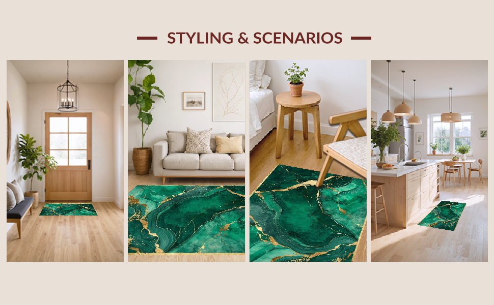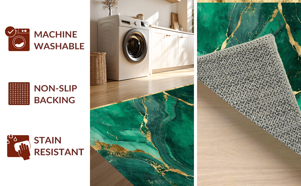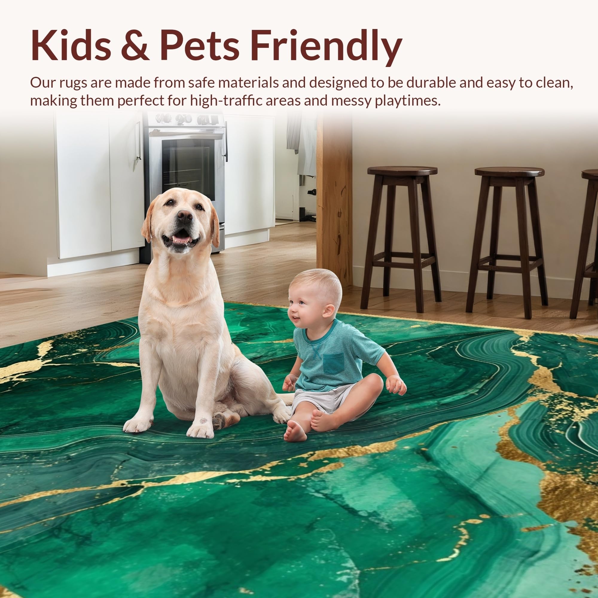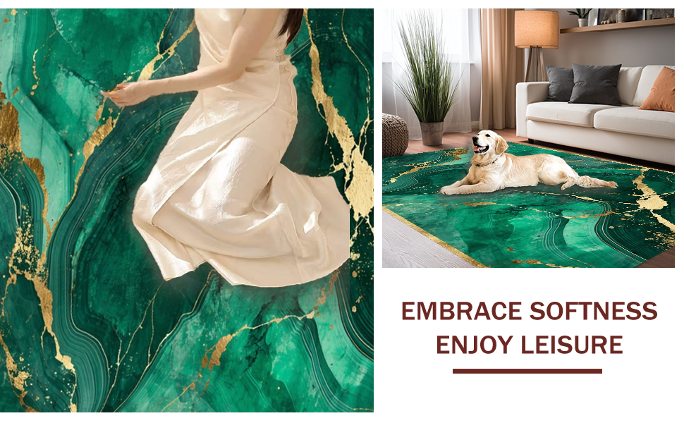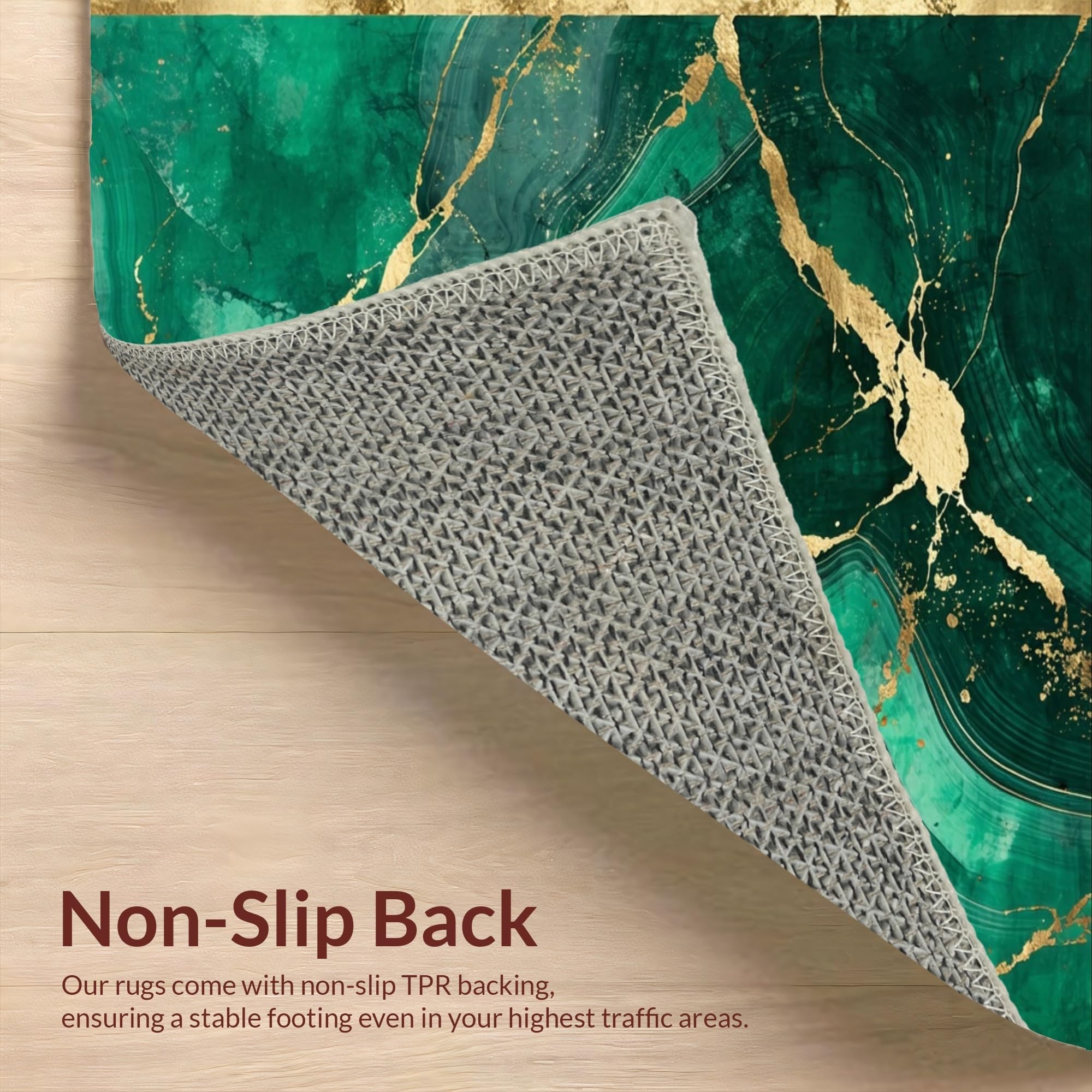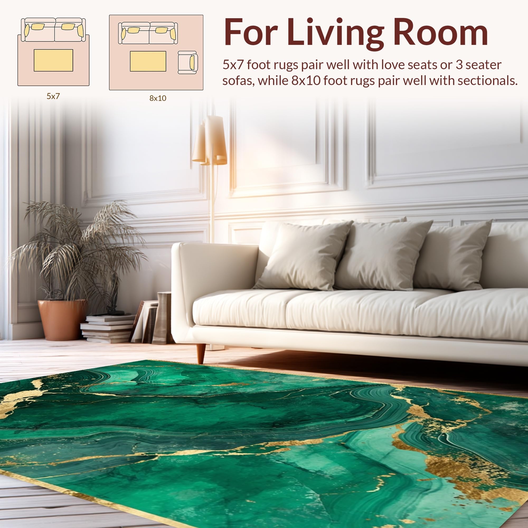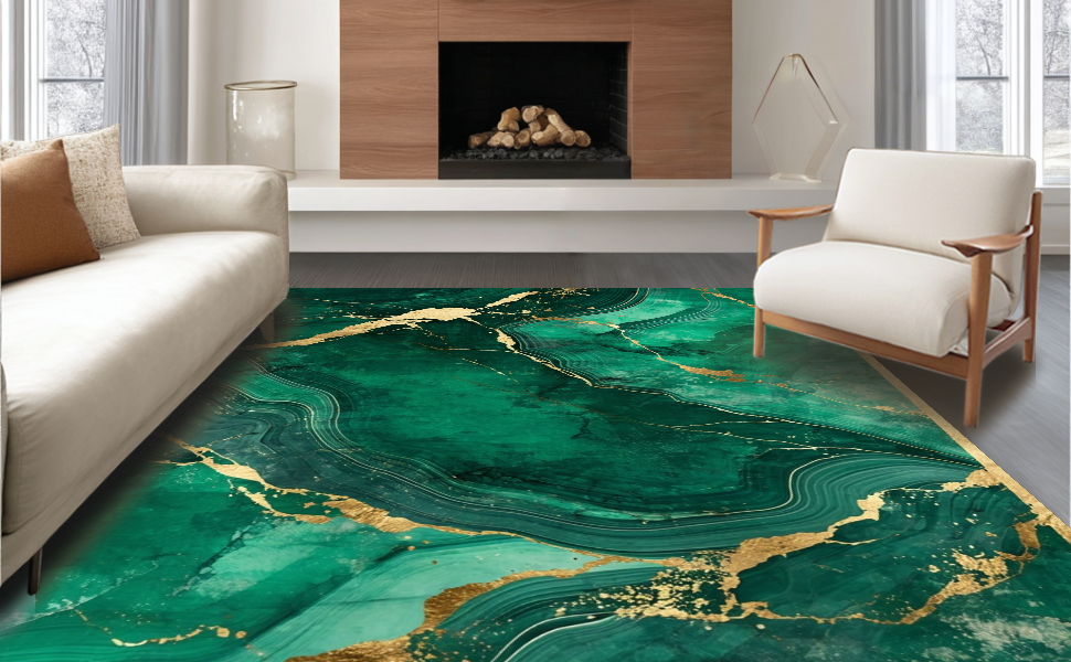 Ultra Soft Area Rug, Non Slip, Stain Resistant, Washable Area Rugs for Living Room, Bedroom, Vintage Emerald Marble Aesthetic(Green) Overview: