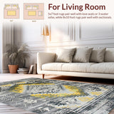 Ultra Soft Area Rug, Non Slip, Stain Resistant, Washable Area Rugs for Living Room, Bedroom, Vintage Ethnic Distressed Motif(Gray) Overview: