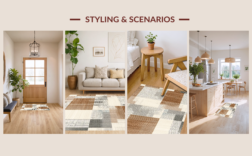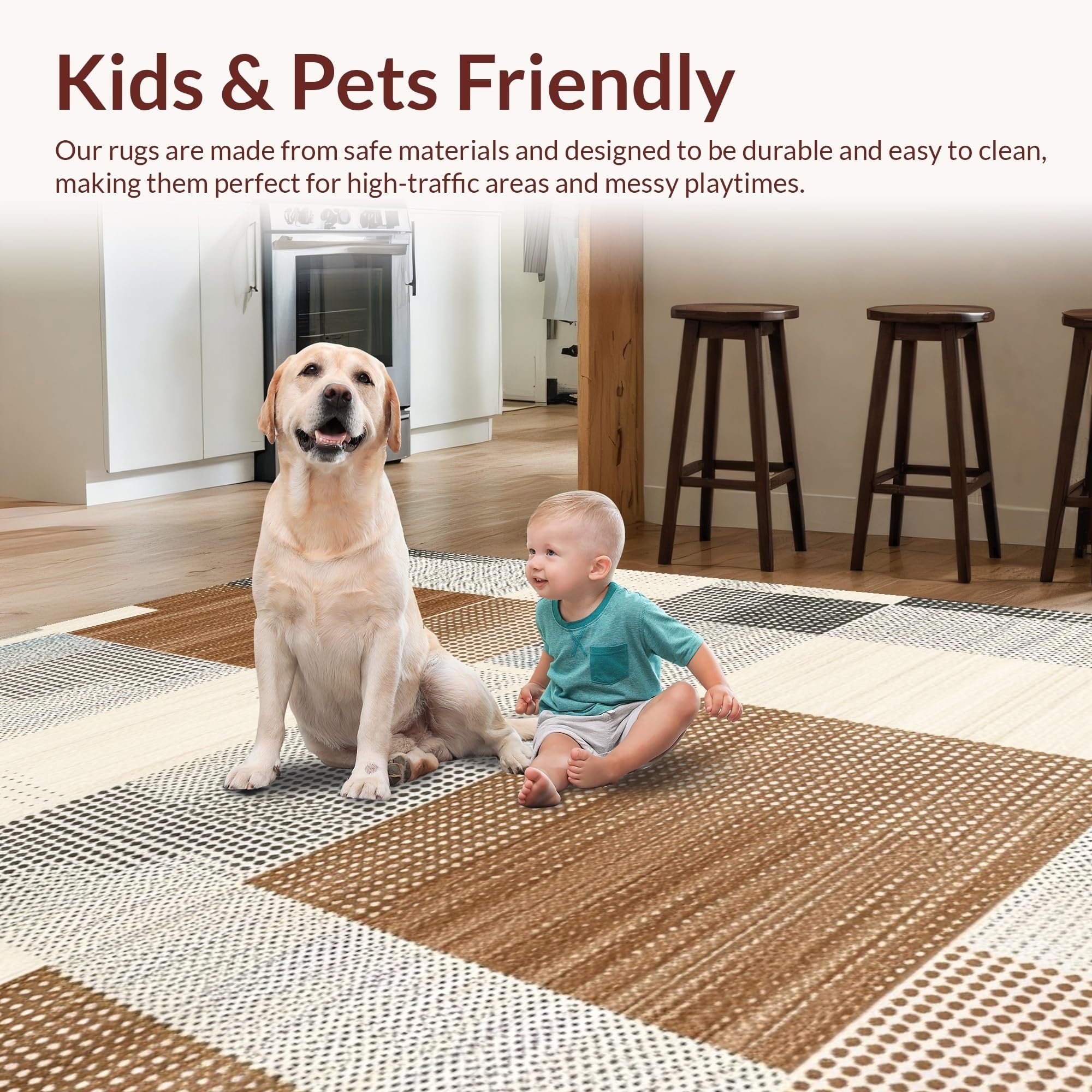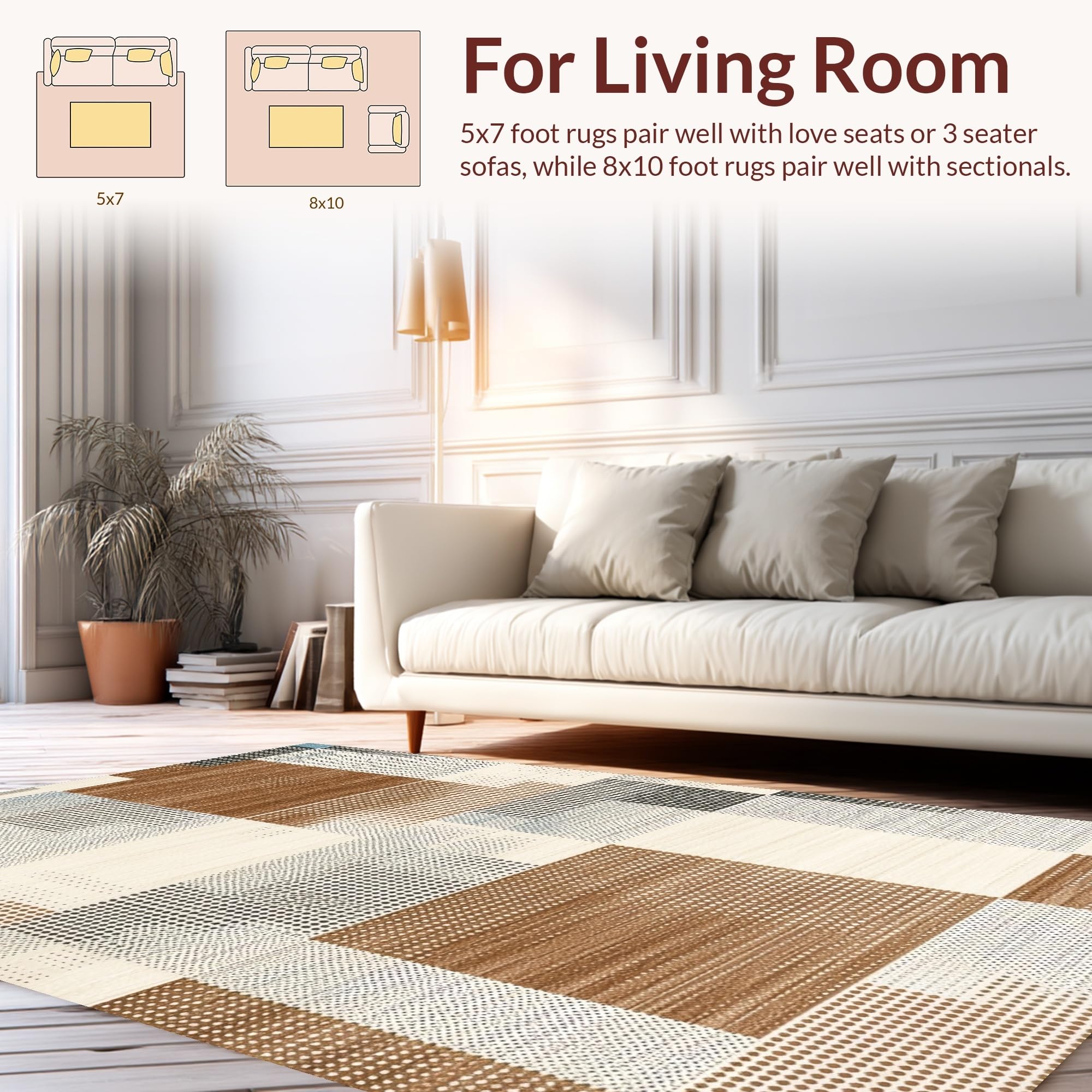 Ultra Soft Area Rug, Non Slip, Stain Resistant, Washable Area Rugs for Living Room, Bedroom, Vintage Farmhouse Patterned Delight(Beige) Overview:
