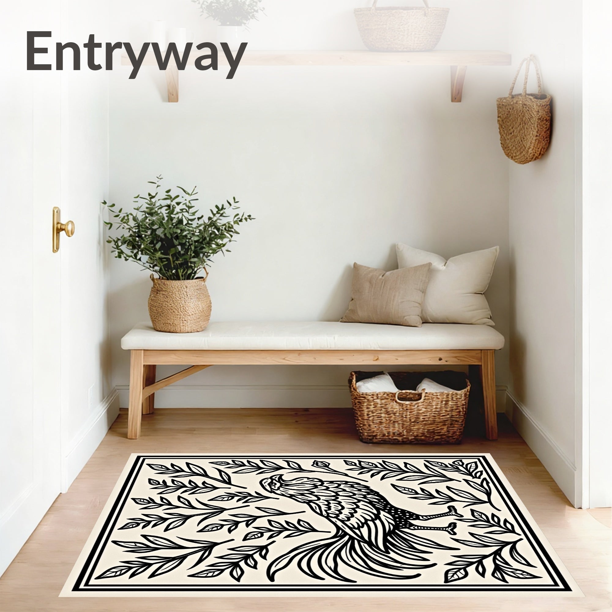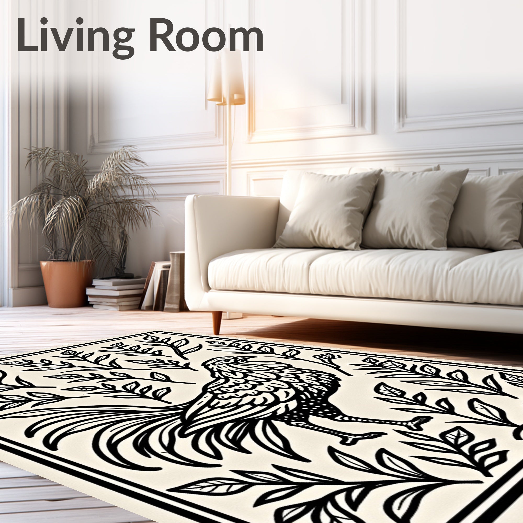 Ultra Soft Area Rug, Non Slip, Stain Resistant, Washable Area Rugs for Living Room, Bedroom, Vintage Farmyard Rooster Accent(Black) Overview: