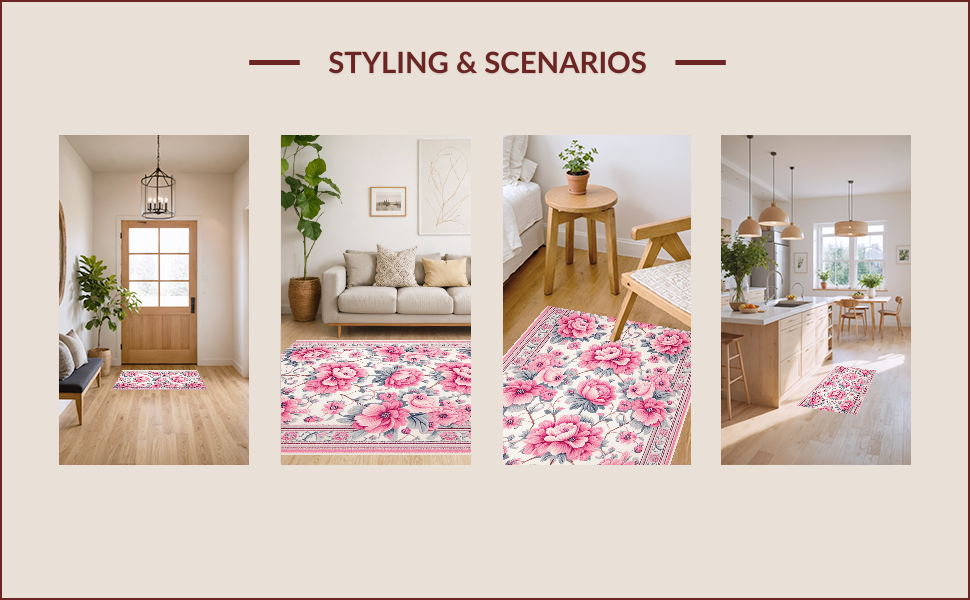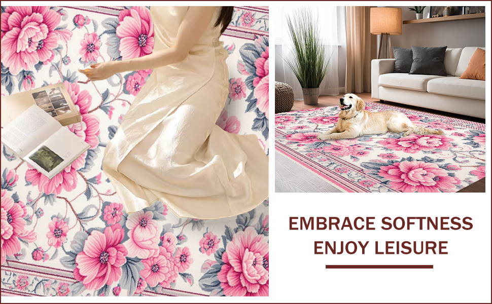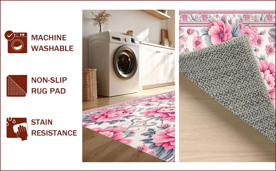 Ultra Soft Area Rug, Non Slip, Stain Resistant, Washable Area Rugs for Living Room, Bedroom, Vintage Faux Wool(Pink) Overview: