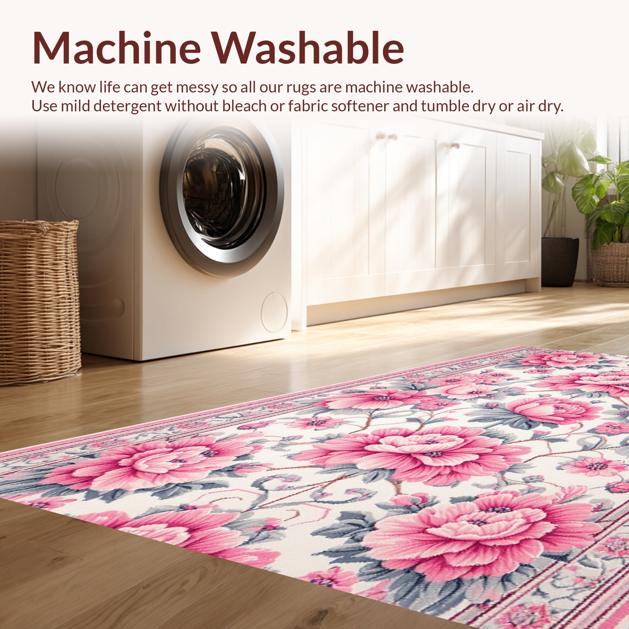 - Machine Washable: Our rugs can be easily thrown in the wash machine.