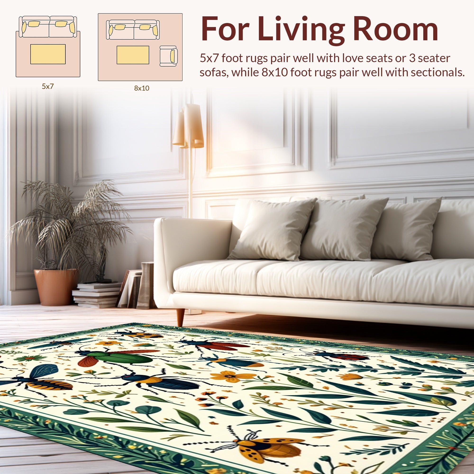 Ultra Soft Area Rug, Non Slip, Stain Resistant, Washable Area Rugs for Living Room, Bedroom, Vintage Green Botanical Living Room Non Slip Rug(Green) Overview: