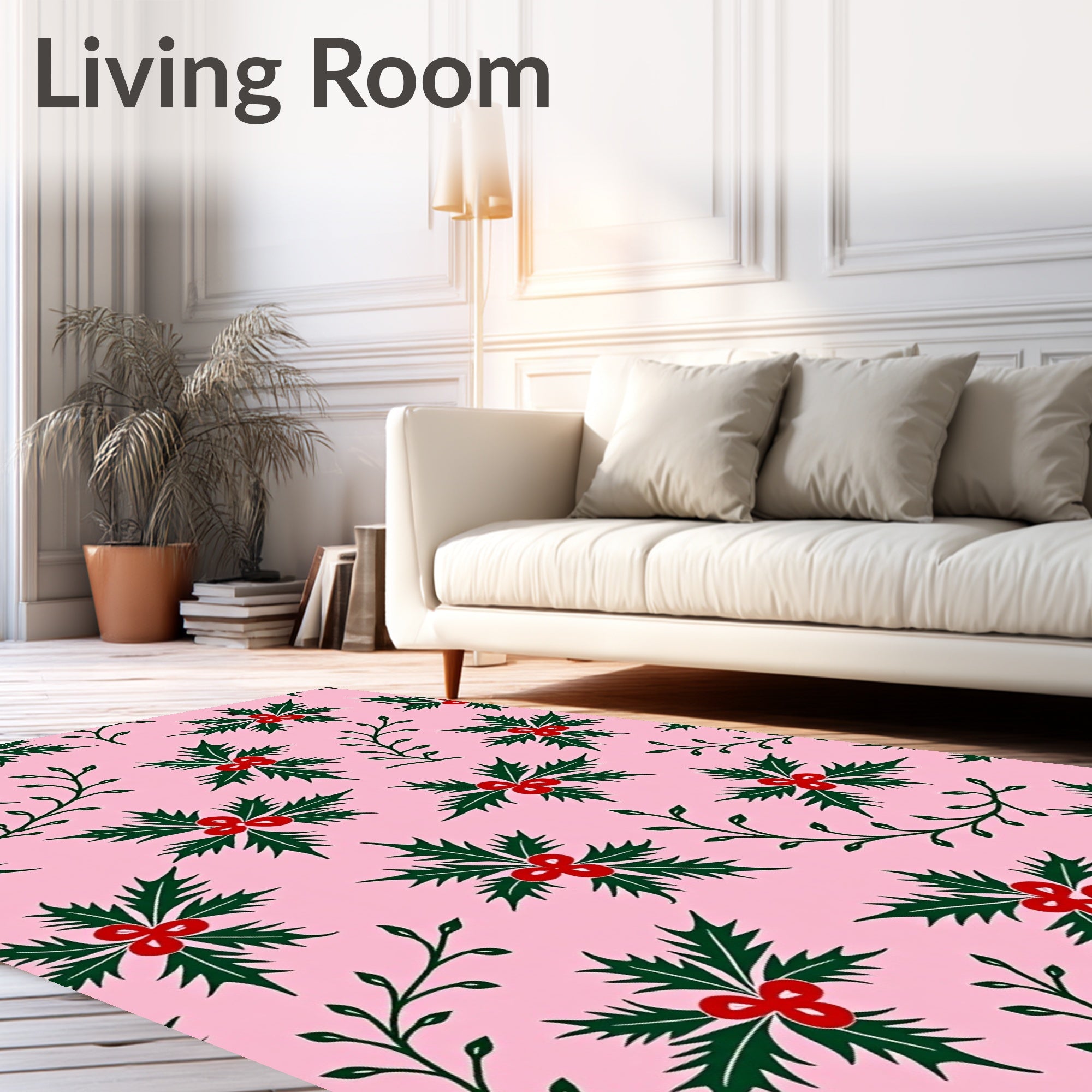 Ultra Soft Area Rug, Non Slip, Stain Resistant, Washable Area Rugs for Living Room, Bedroom, Vintage Holly Berry Wreath with Traditional Botanical Design(Pink) Overview: