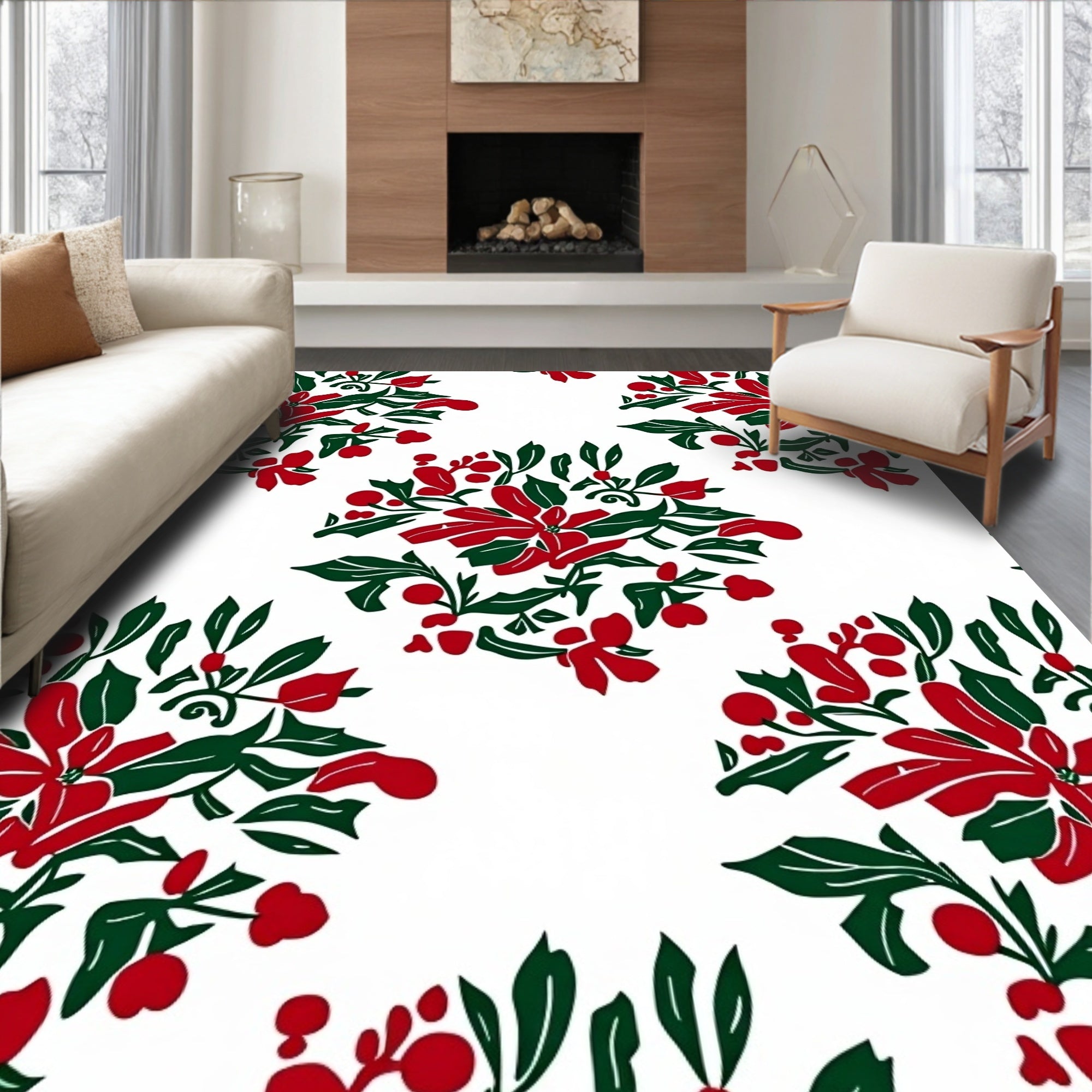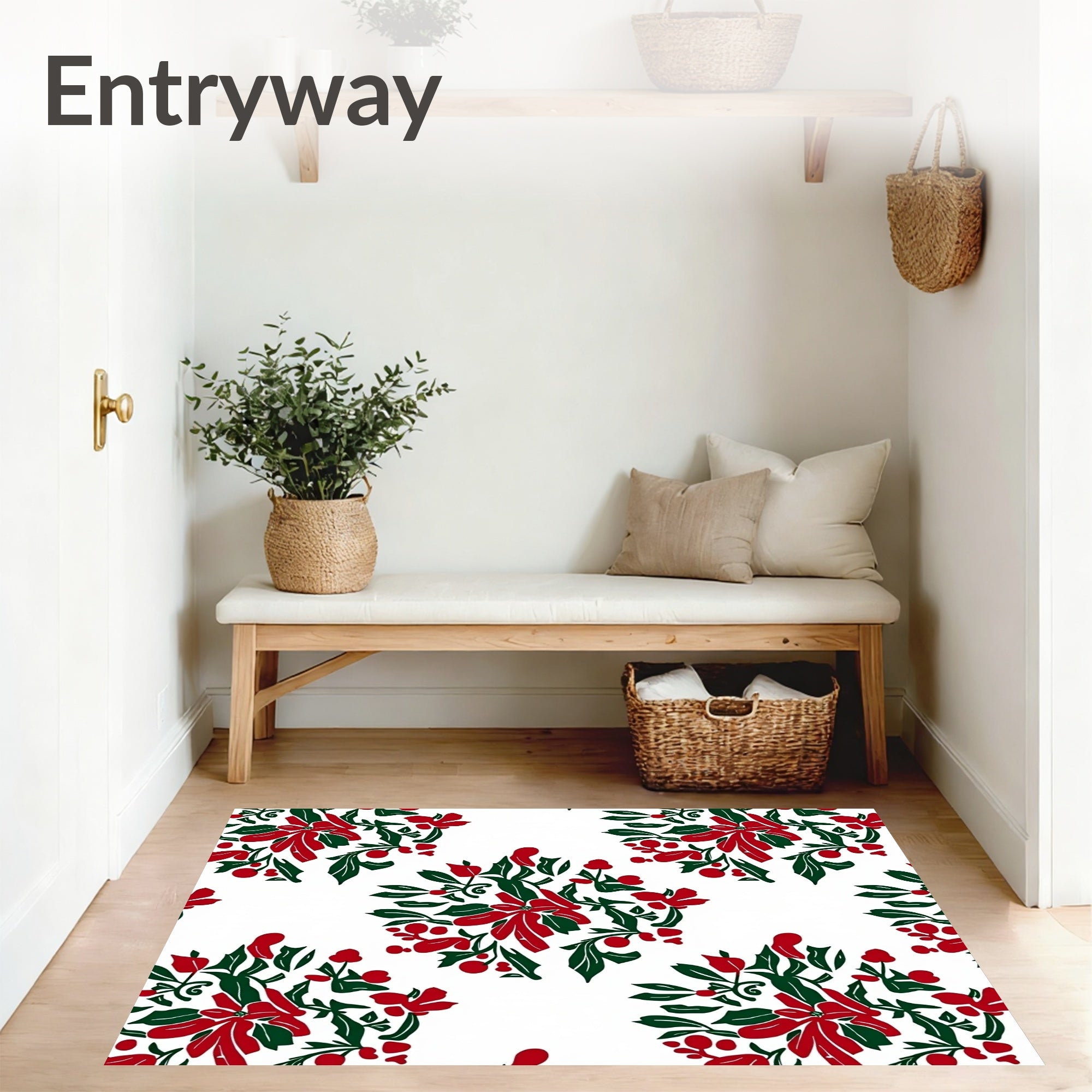 Vintage Holly Wreath Medallion Non Slip(Red)