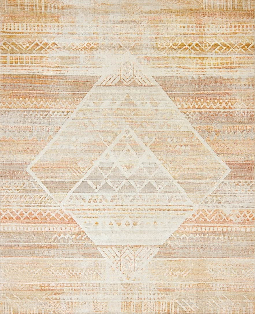 Vintage Inspired Distressed Area with Neutral Toned Geometric Accents(Beige)