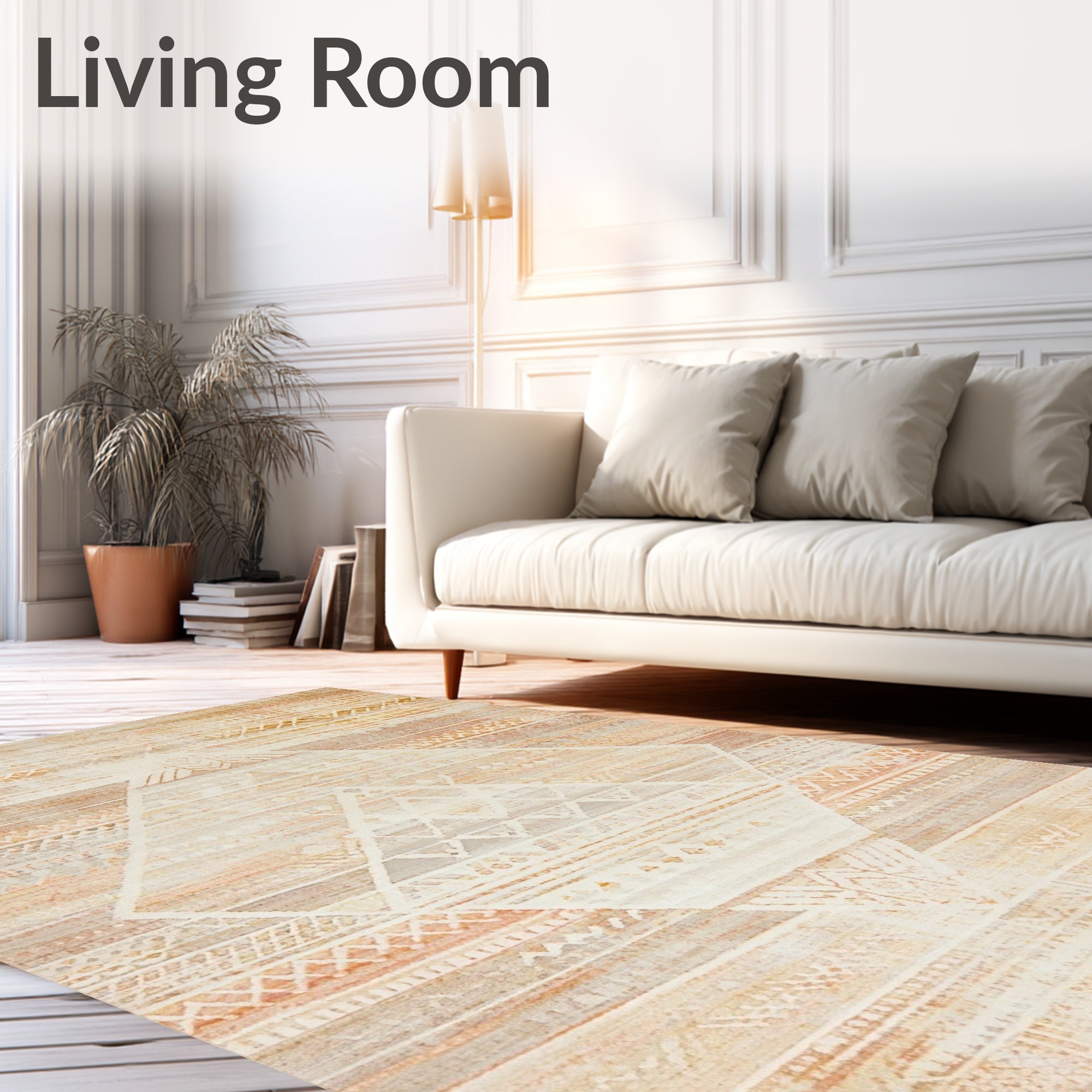 Ultra Soft Area Rug, Non Slip, Stain Resistant, Washable Area Rugs for Living Room, Bedroom, Vintage Inspired Distressed Area with Neutral Toned Geometric Accents(Beige) Overview: