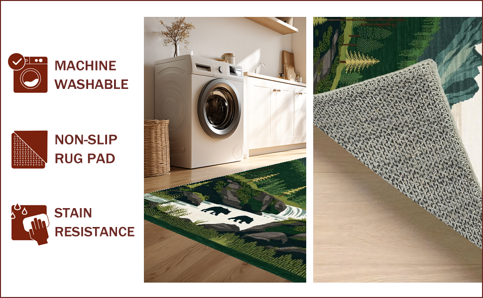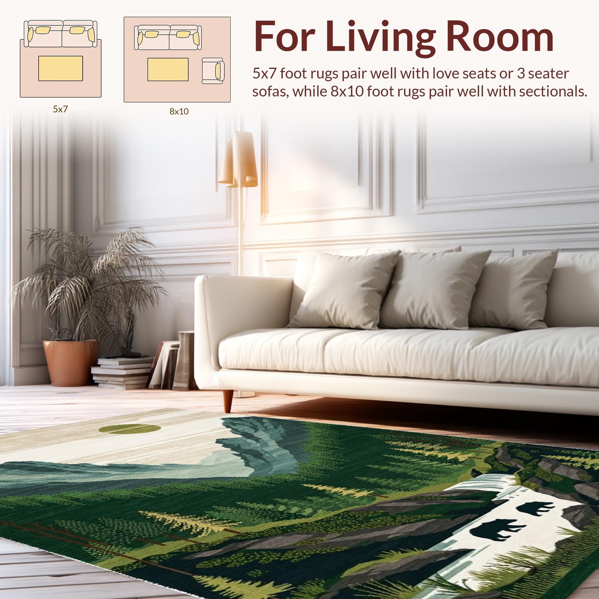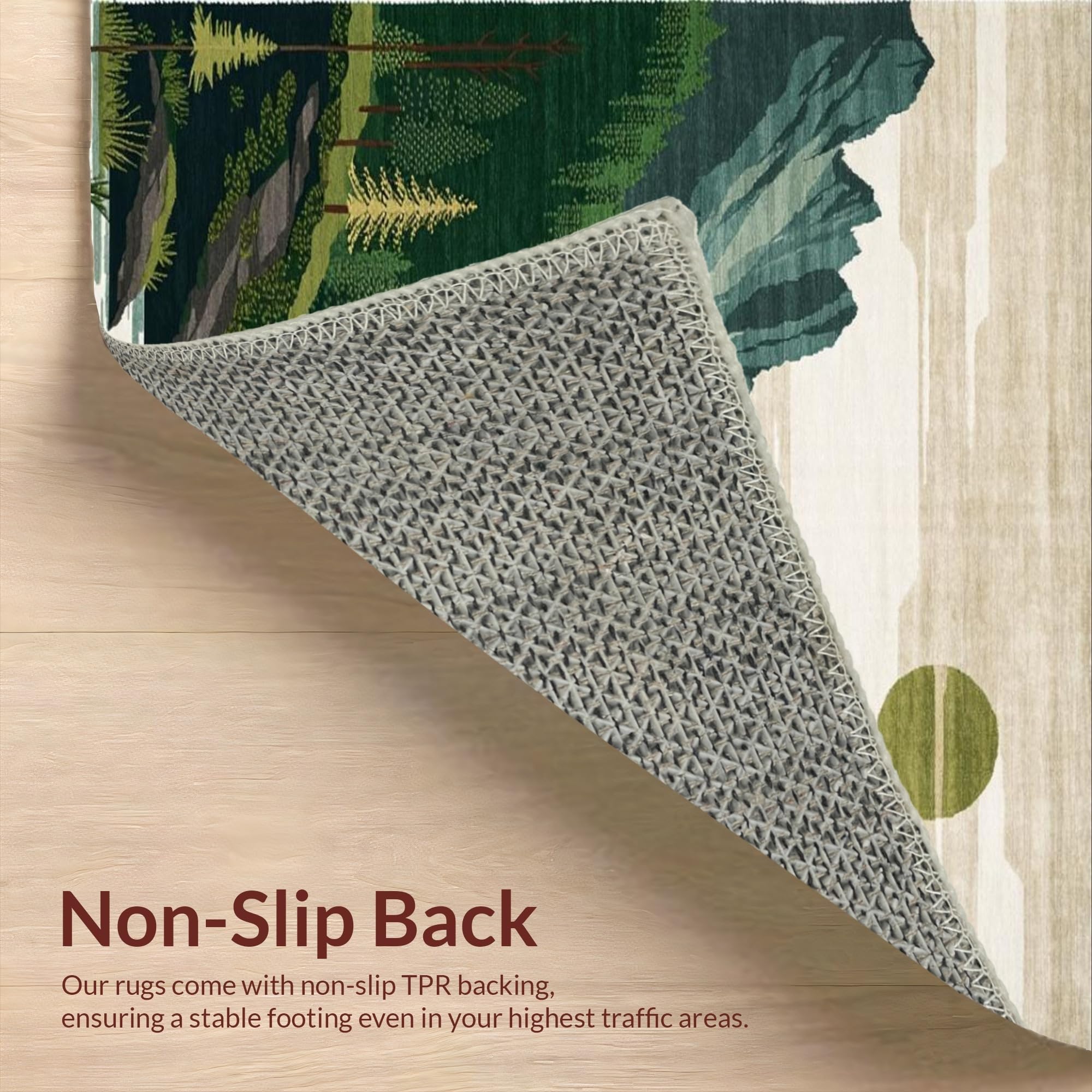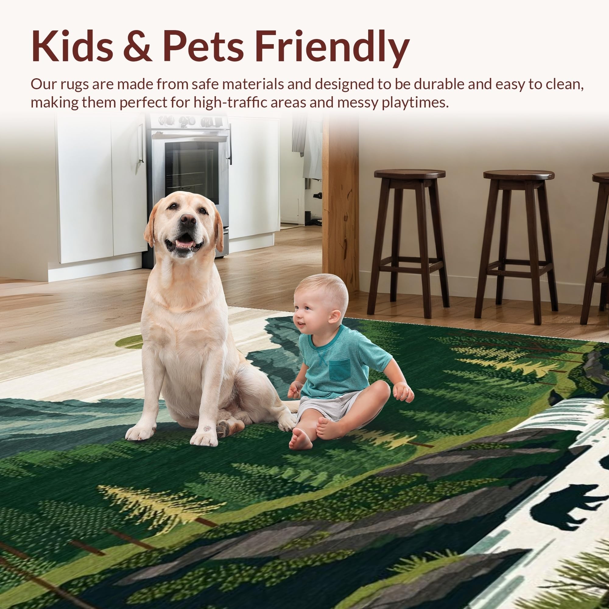 Ultra Soft Area Rug, Non Slip, Stain Resistant, Washable Area Rugs for Living Room, Bedroom, Vintage Lodge Aesthetic Patterns(Green) Overview: