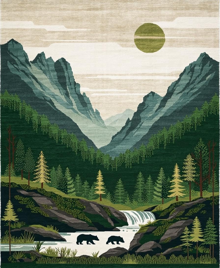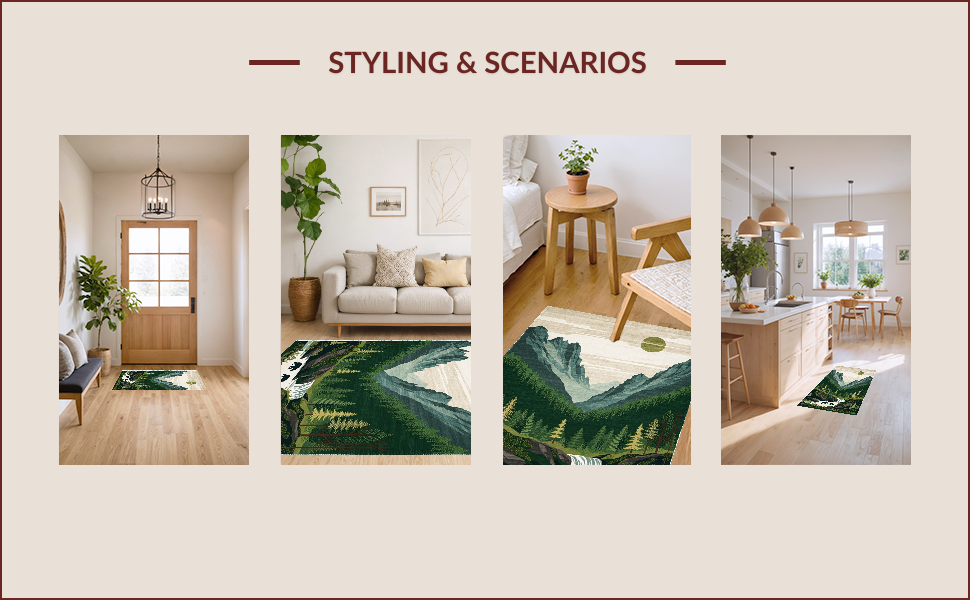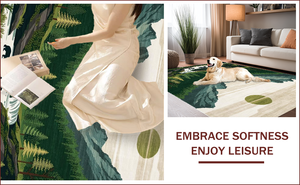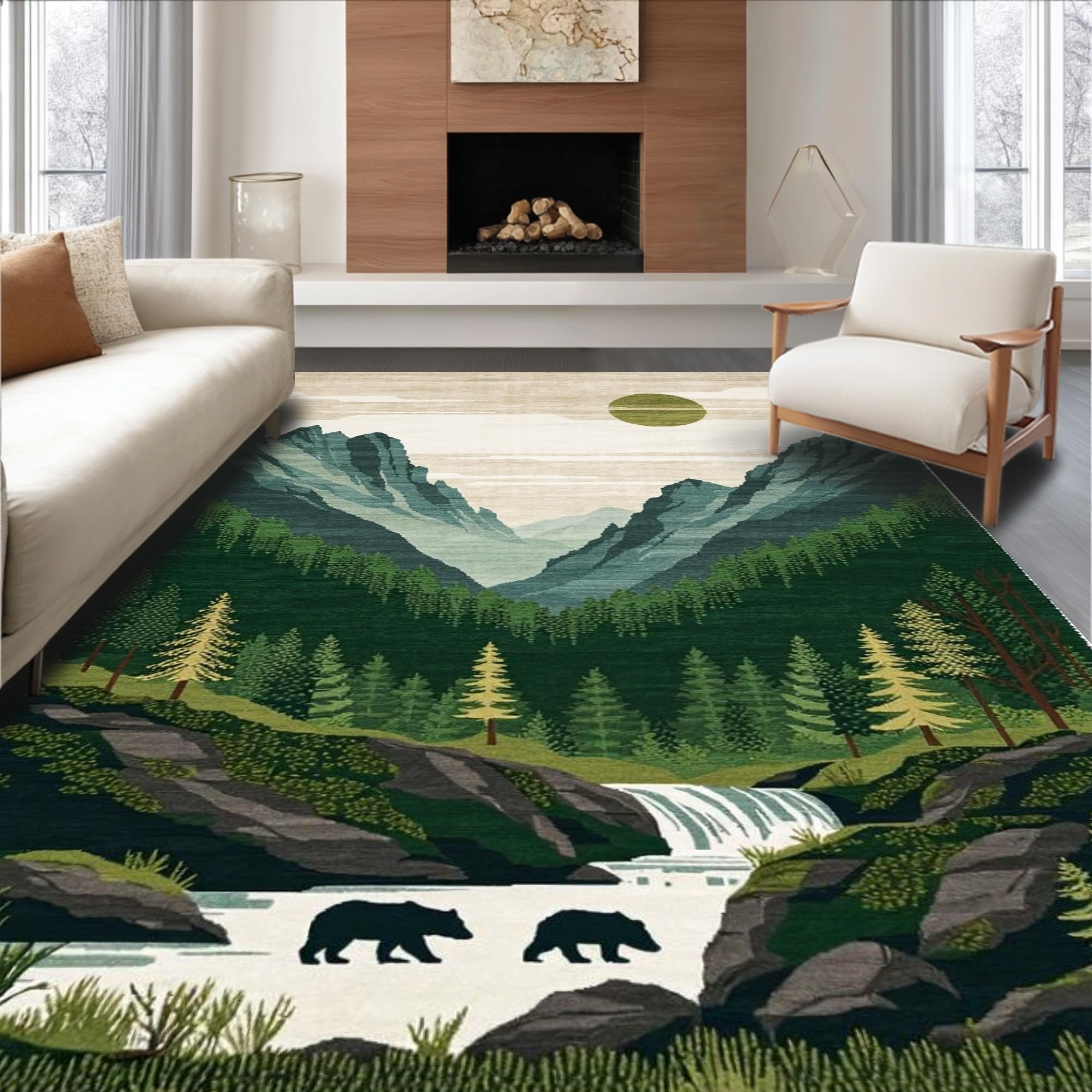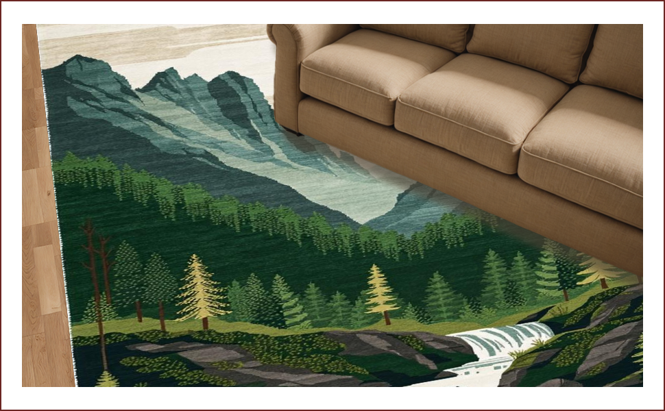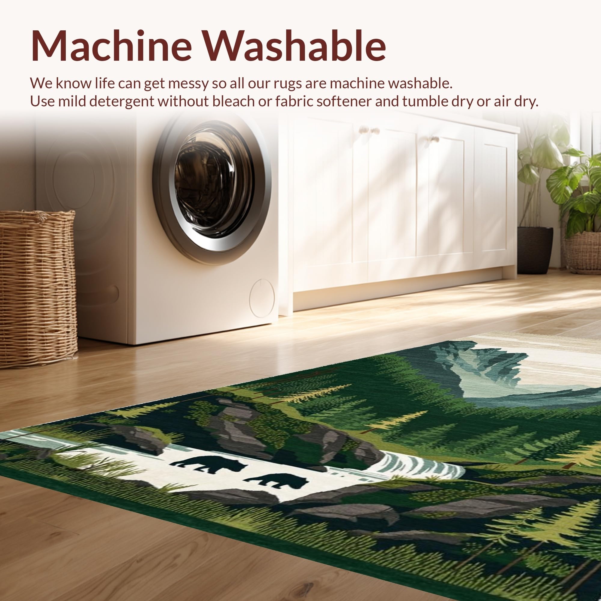 Ultra Soft Area Rug, Non Slip, Stain Resistant, Washable Area Rugs for Living Room, Bedroom, Vintage Lodge Aesthetic Patterns(Green) Overview: