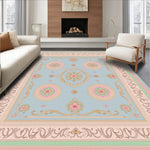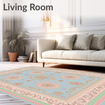 Ultra Soft Area Rug, Non Slip, Stain Resistant, Washable Area Rugs for Living Room, Bedroom, Vintage Meadow Blossom Motif with Scrolling Botanical Filigree Accents(Blue) Overview: