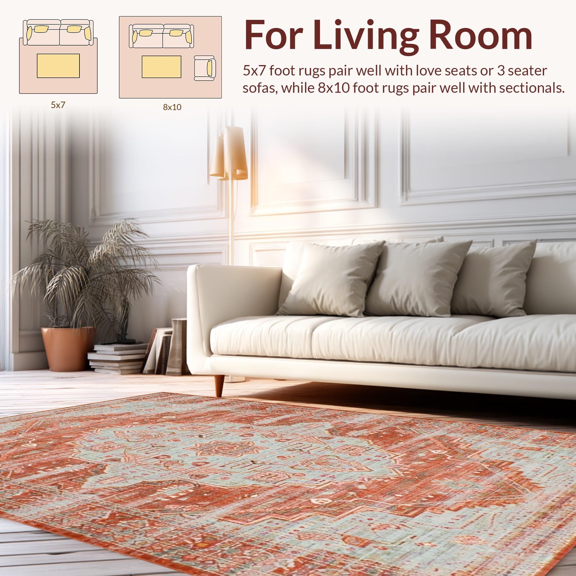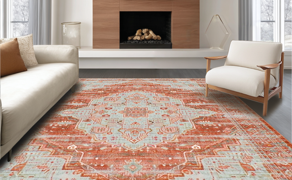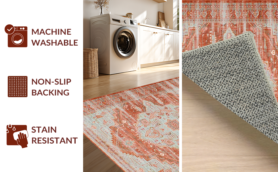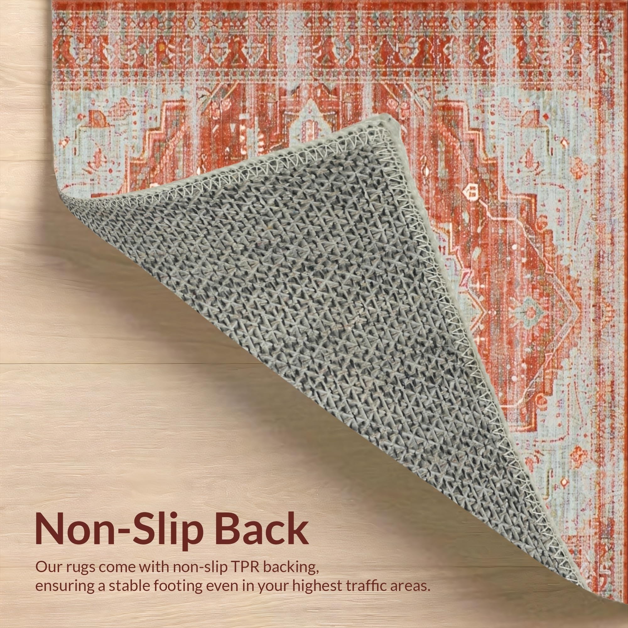 Ultra Soft Area Rug, Non Slip, Stain Resistant, Washable Area Rugs for Living Room, Bedroom, Vintage Medallion Earthy Tones(Red) Overview:
