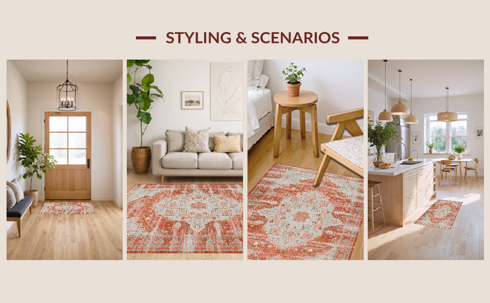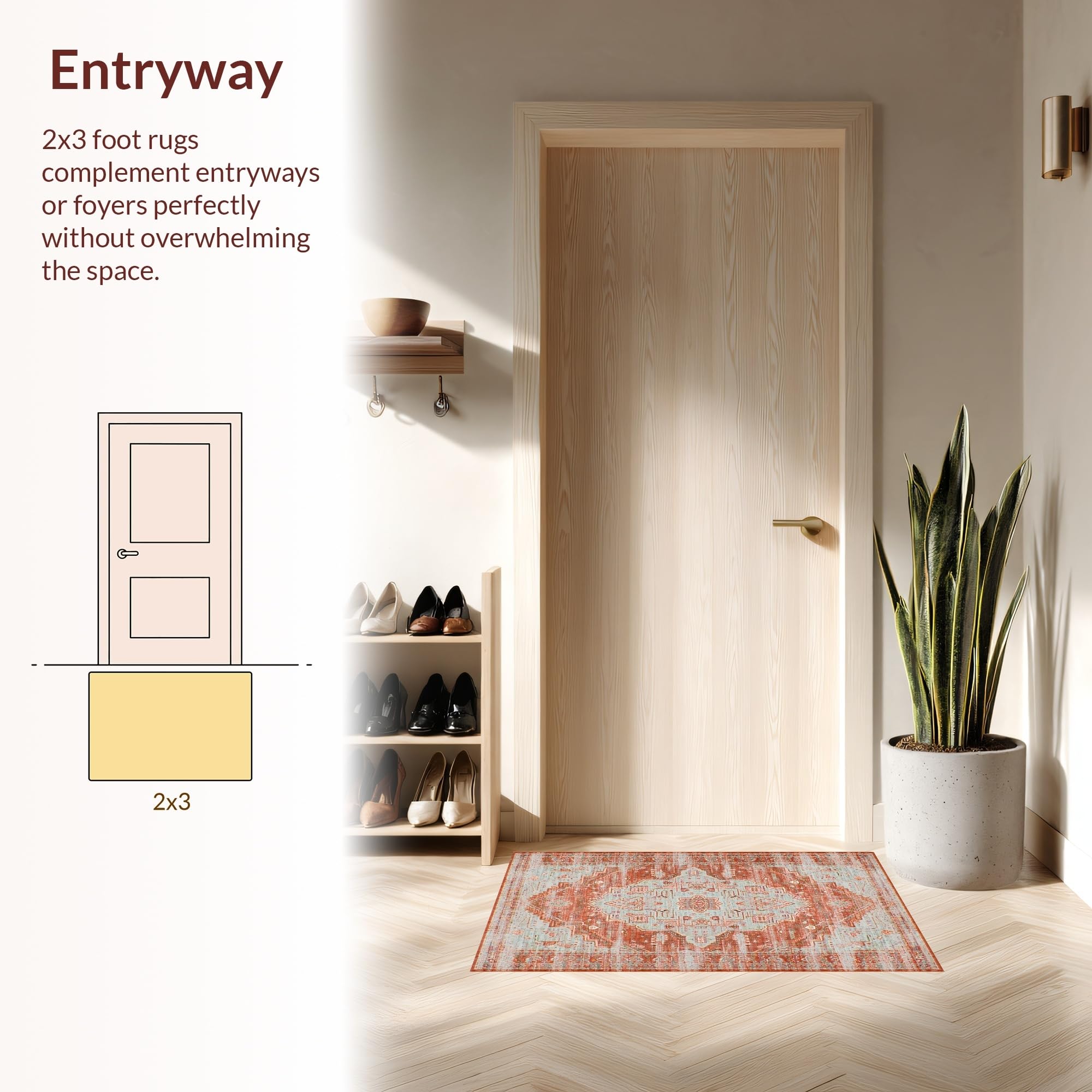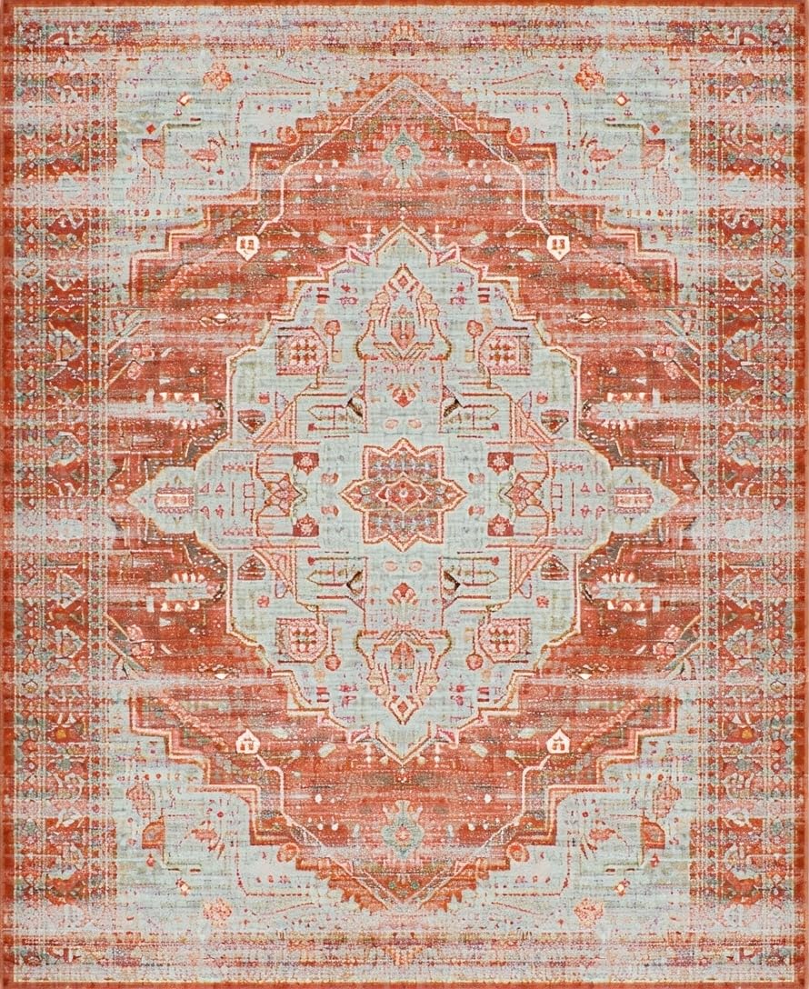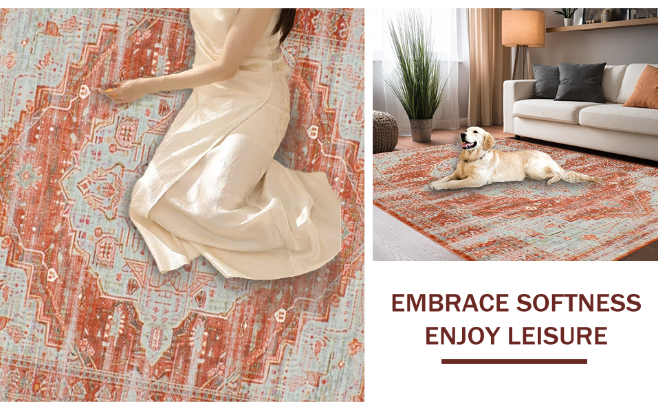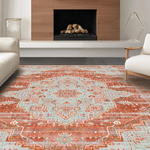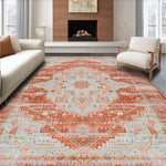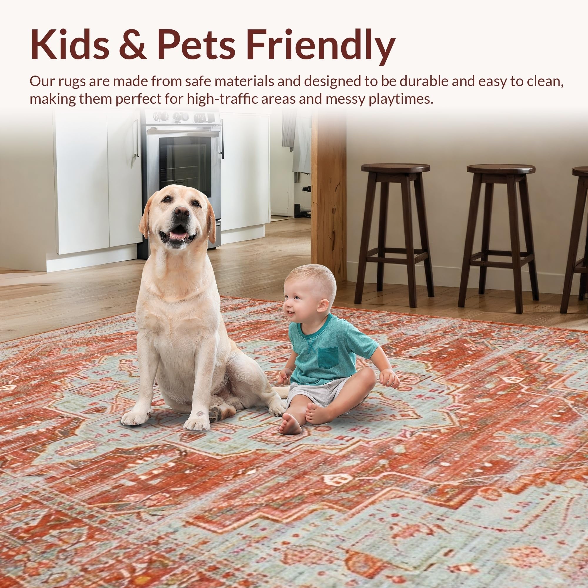 Ultra Soft Area Rug, Non Slip, Stain Resistant, Washable Area Rugs for Living Room, Bedroom, Vintage Medallion Earthy Tones(Red) Overview: