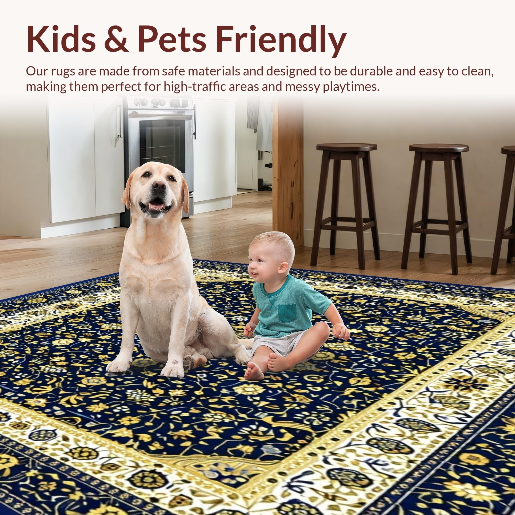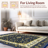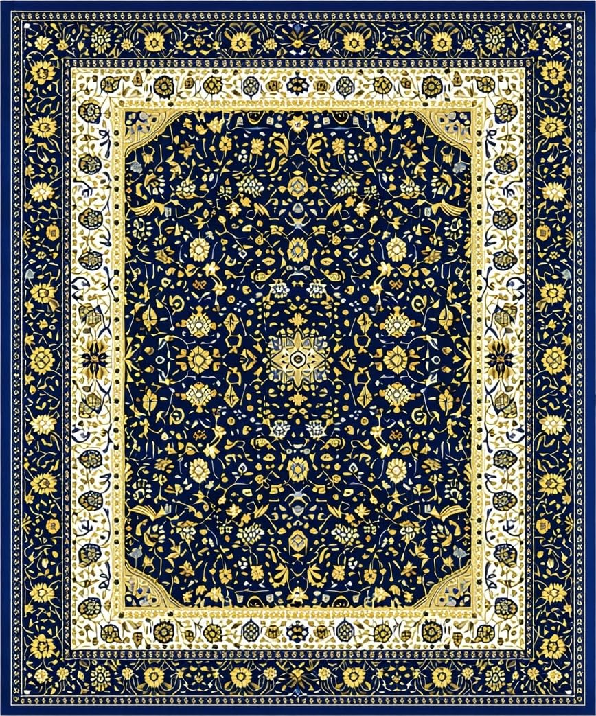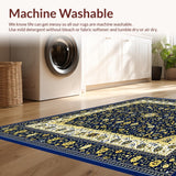 Ultra Soft Area Rug, Non Slip, Stain Resistant, Washable Area Rugs for Living Room, Bedroom, Vintage Modern Abstract with Deep Blue and Gold Accents(Blue) Overview: