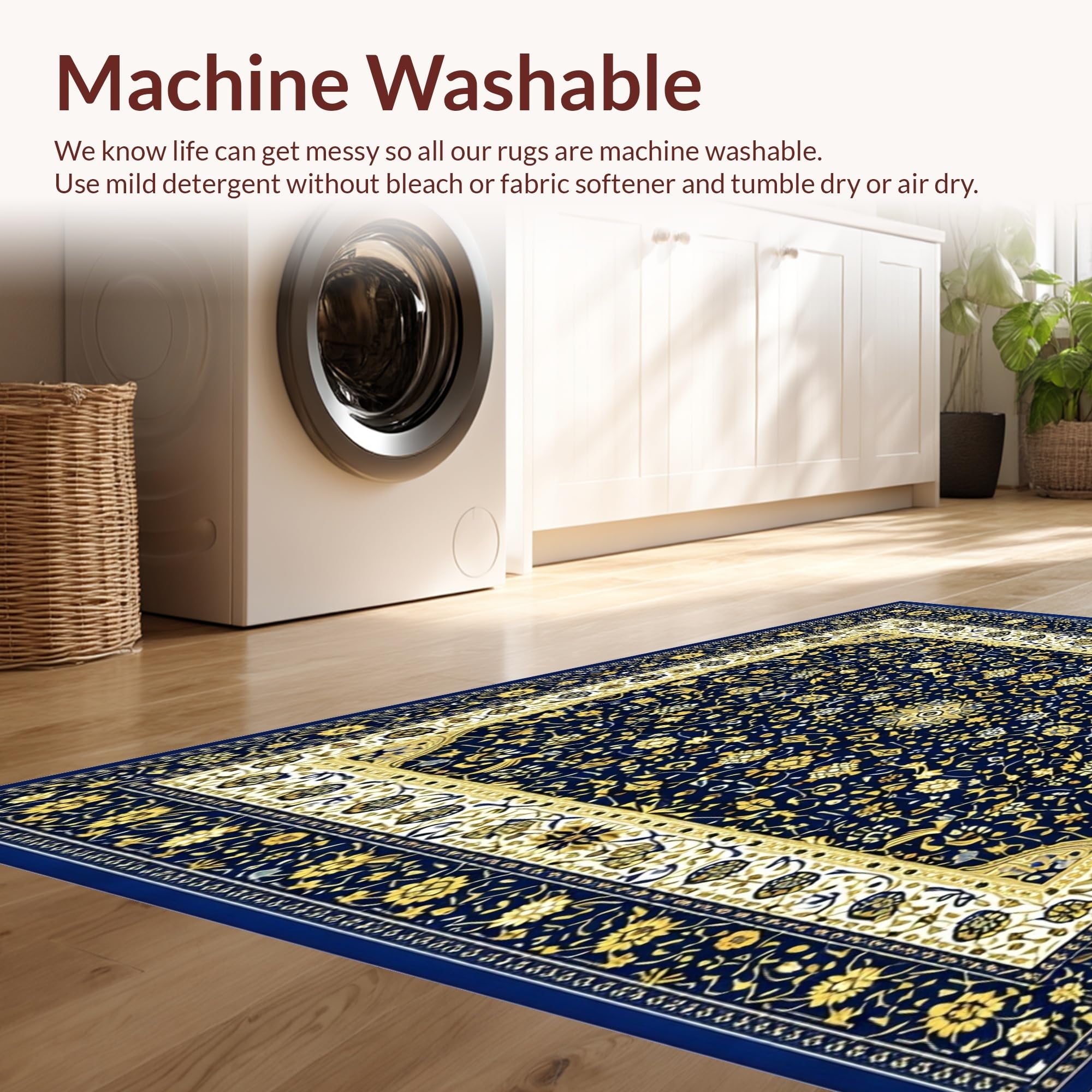 - Machine Washable: Our rugs can be easily thrown in the wash machine.