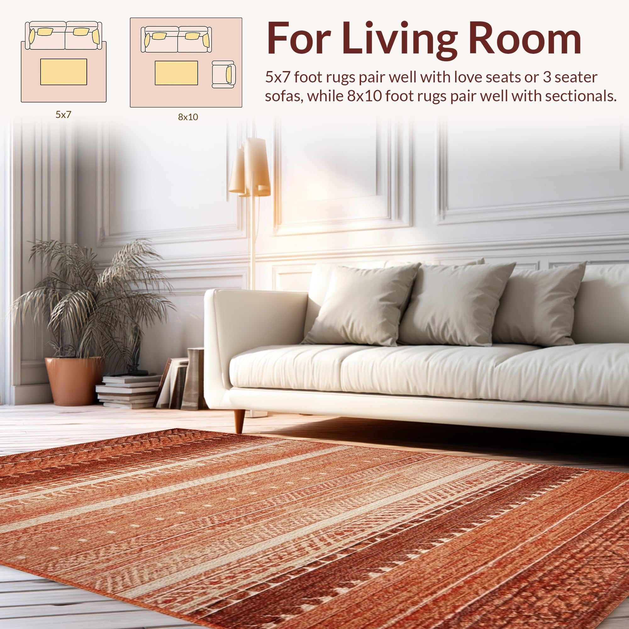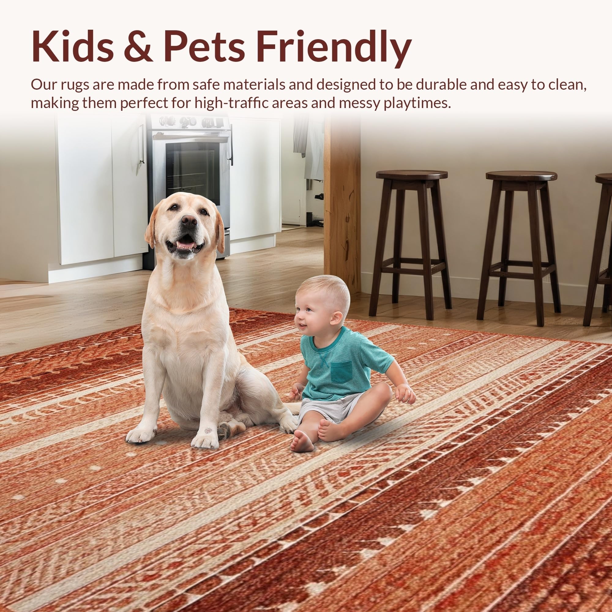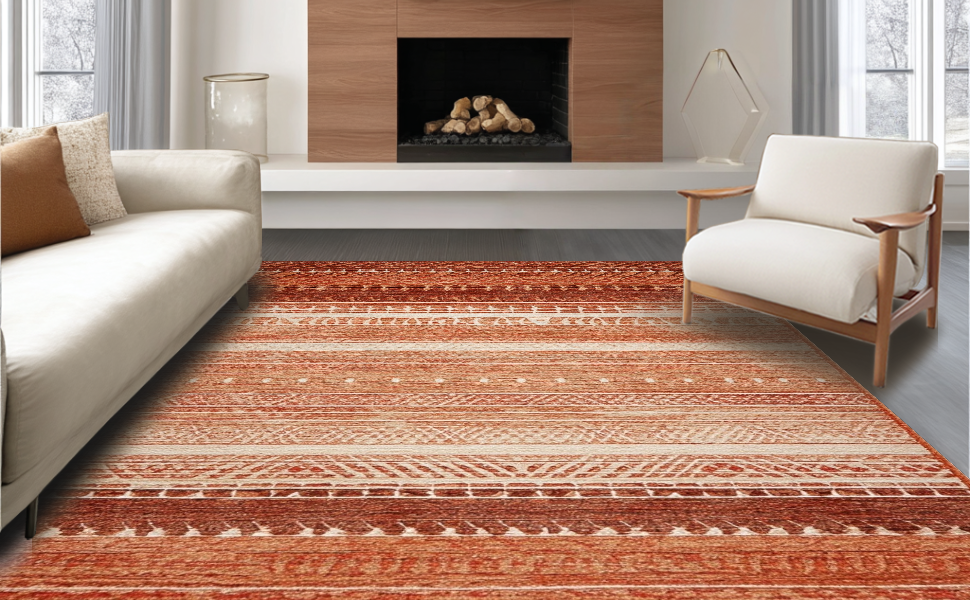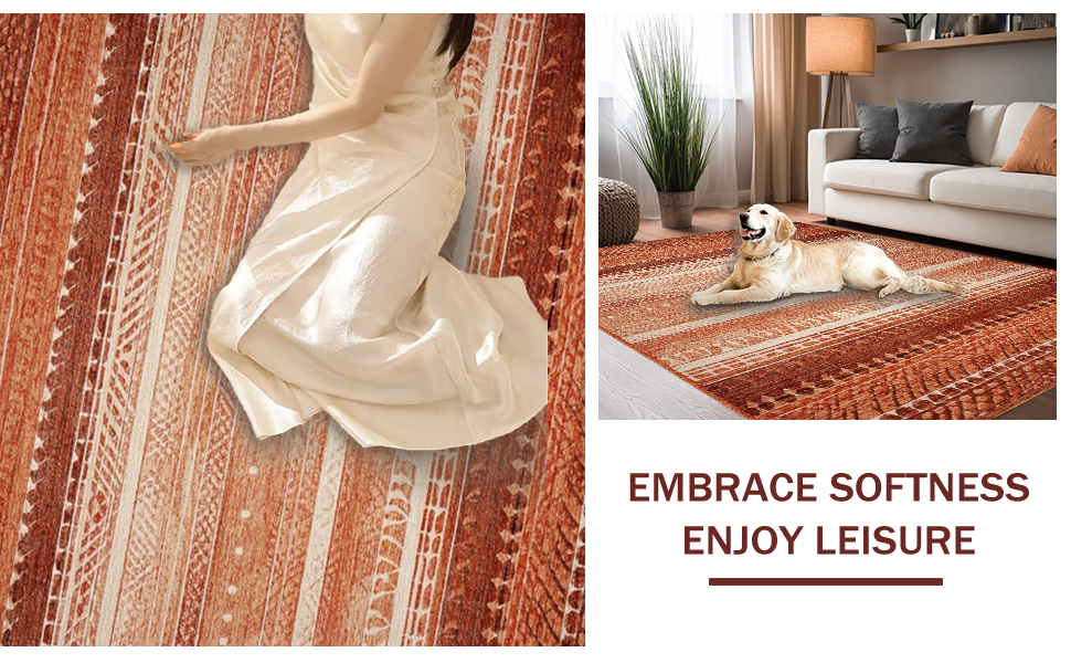 Ultra Soft Area Rug, Non Slip, Stain Resistant, Washable Area Rugs for Living Room, Bedroom, Vintage Natural Hide Aesthetic(Red) Overview: