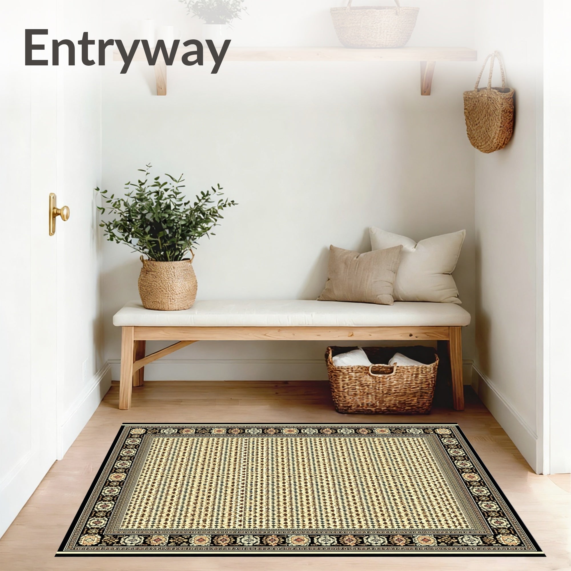 Ultra Soft Area Rug, Non Slip, Stain Resistant, Washable Area Rugs for Living Room, Bedroom, Vintage Runner Beige/Dark Brown(Beige) Overview: