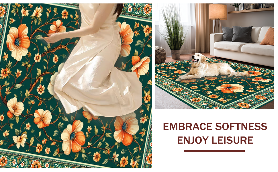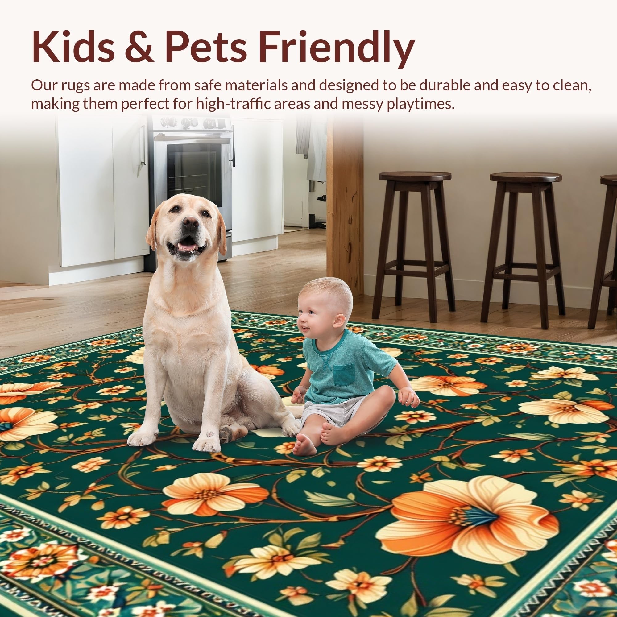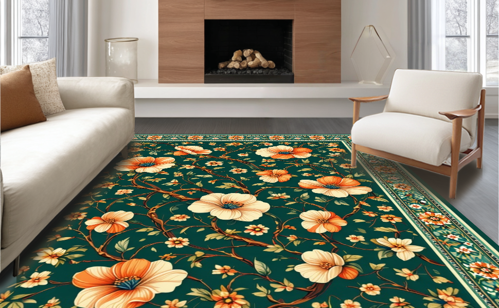 Ultra Soft Area Rug, Non Slip, Stain Resistant, Washable Area Rugs for Living Room, Bedroom, Vintage Rustic Earthy Tones(Green) Overview: