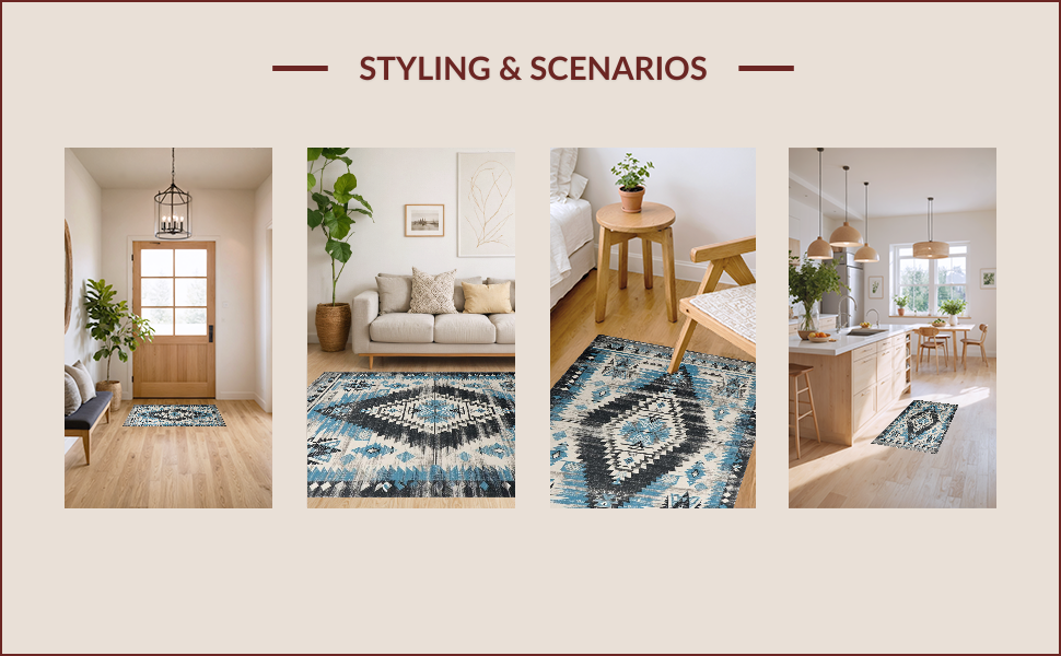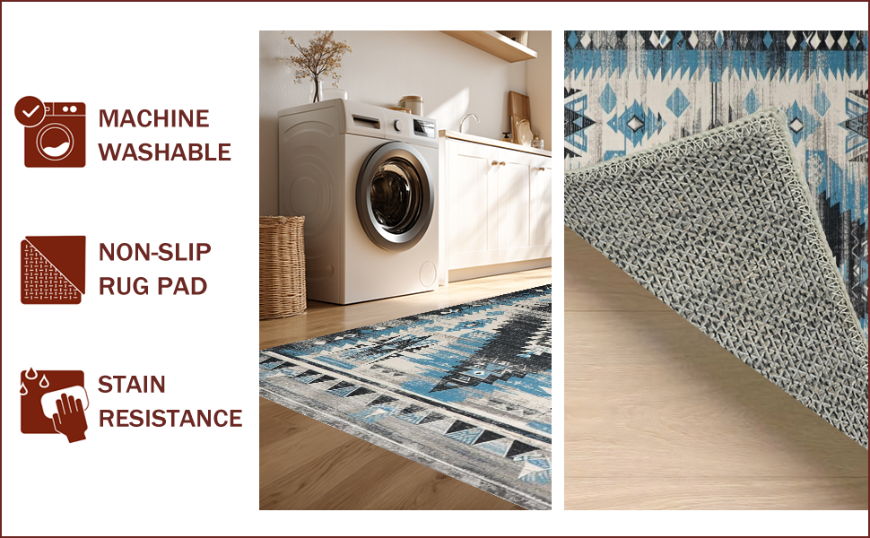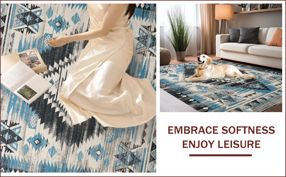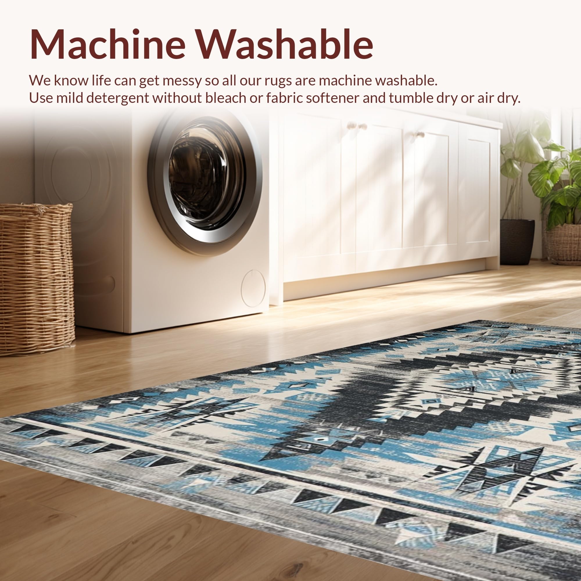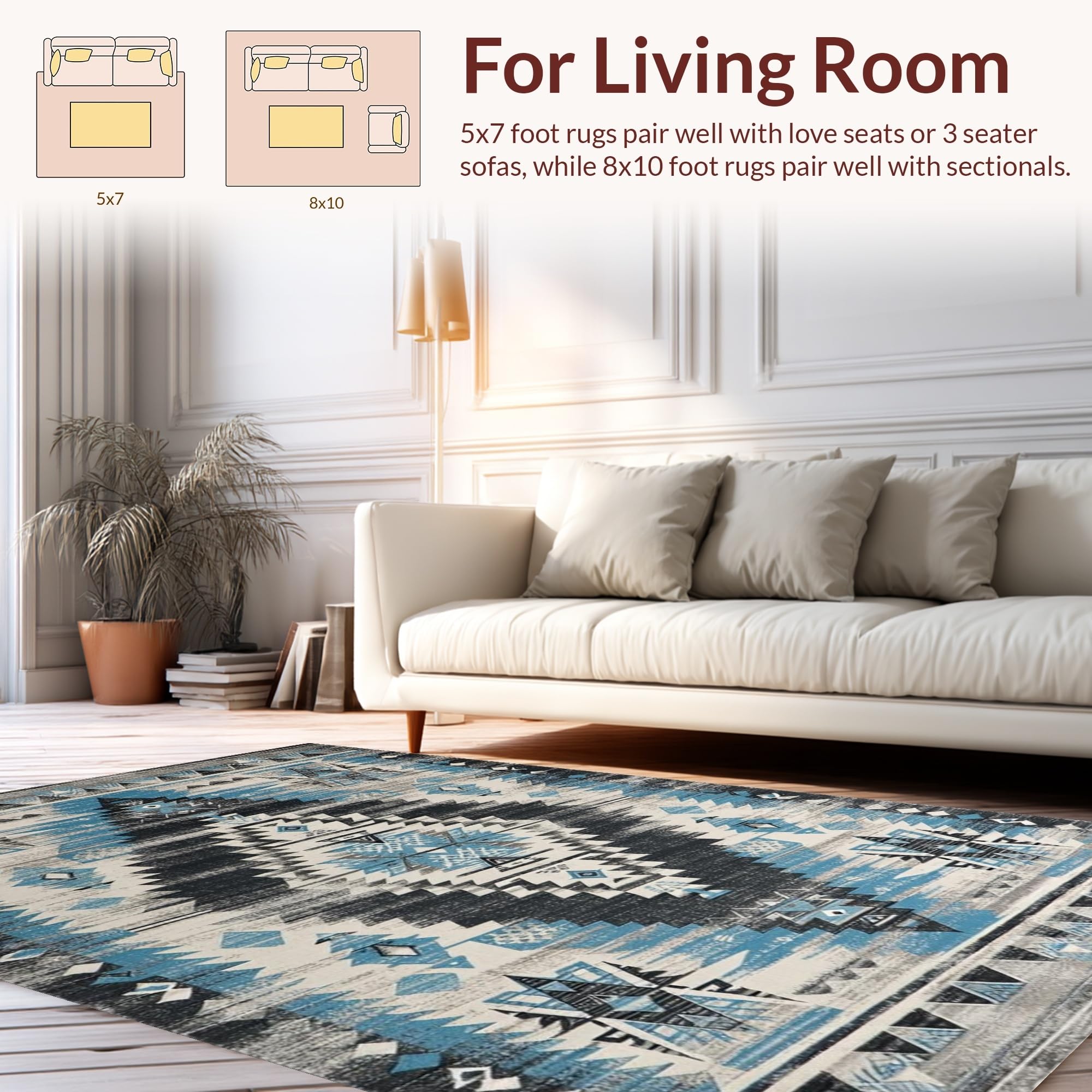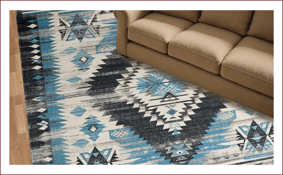 Ultra Soft Area Rug, Non Slip, Stain Resistant, Washable Area Rugs for Living Room, Bedroom, Vintage Southwest Cultural Aesthetic(Blue) Overview: