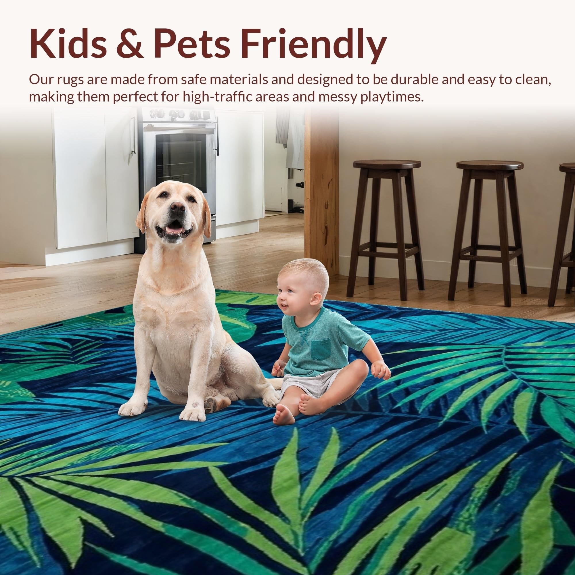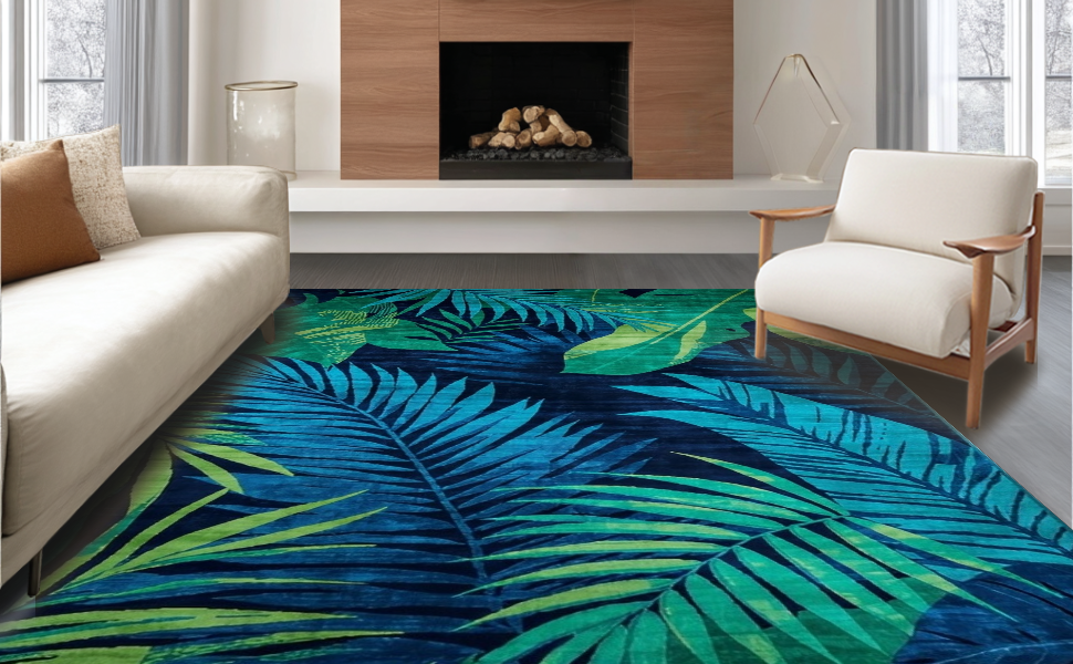 Ultra Soft Area Rug, Non Slip, Stain Resistant, Washable Area Rugs for Living Room, Bedroom, Vintage Textured Geometric Arrangement(Blue) Overview: