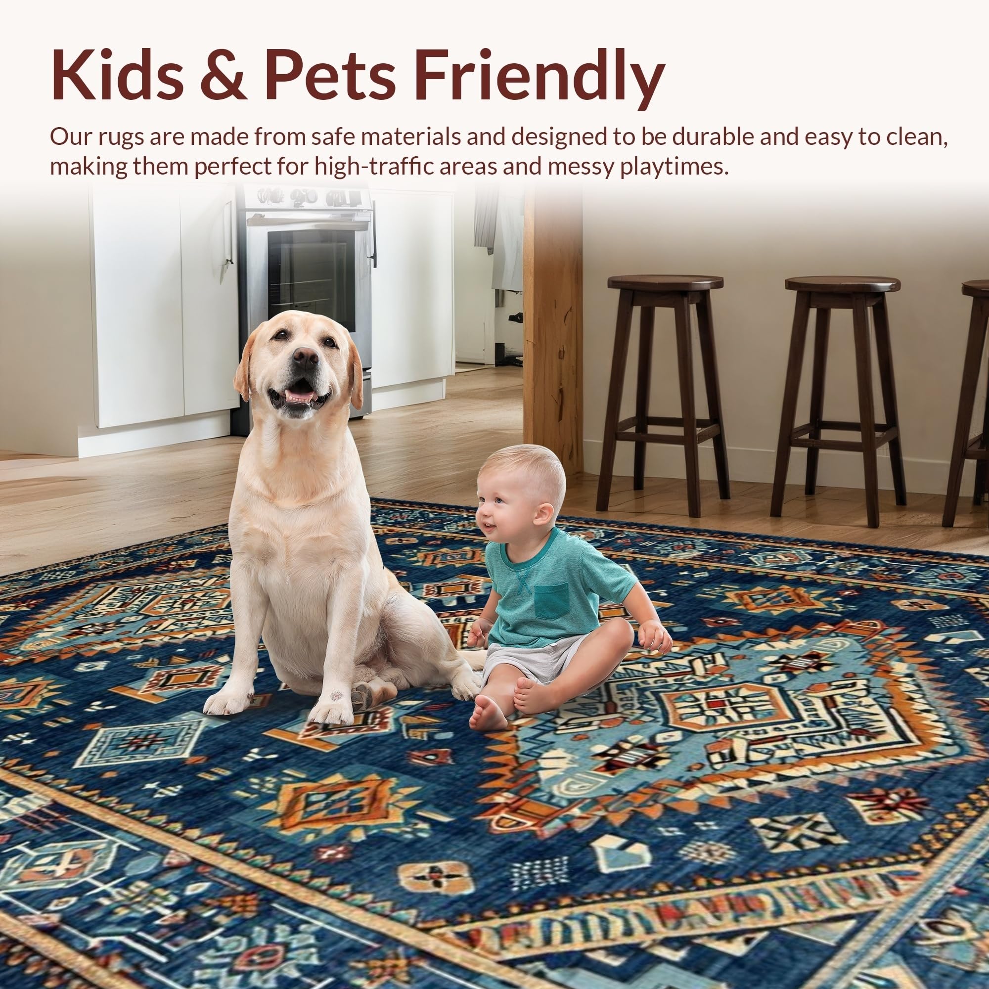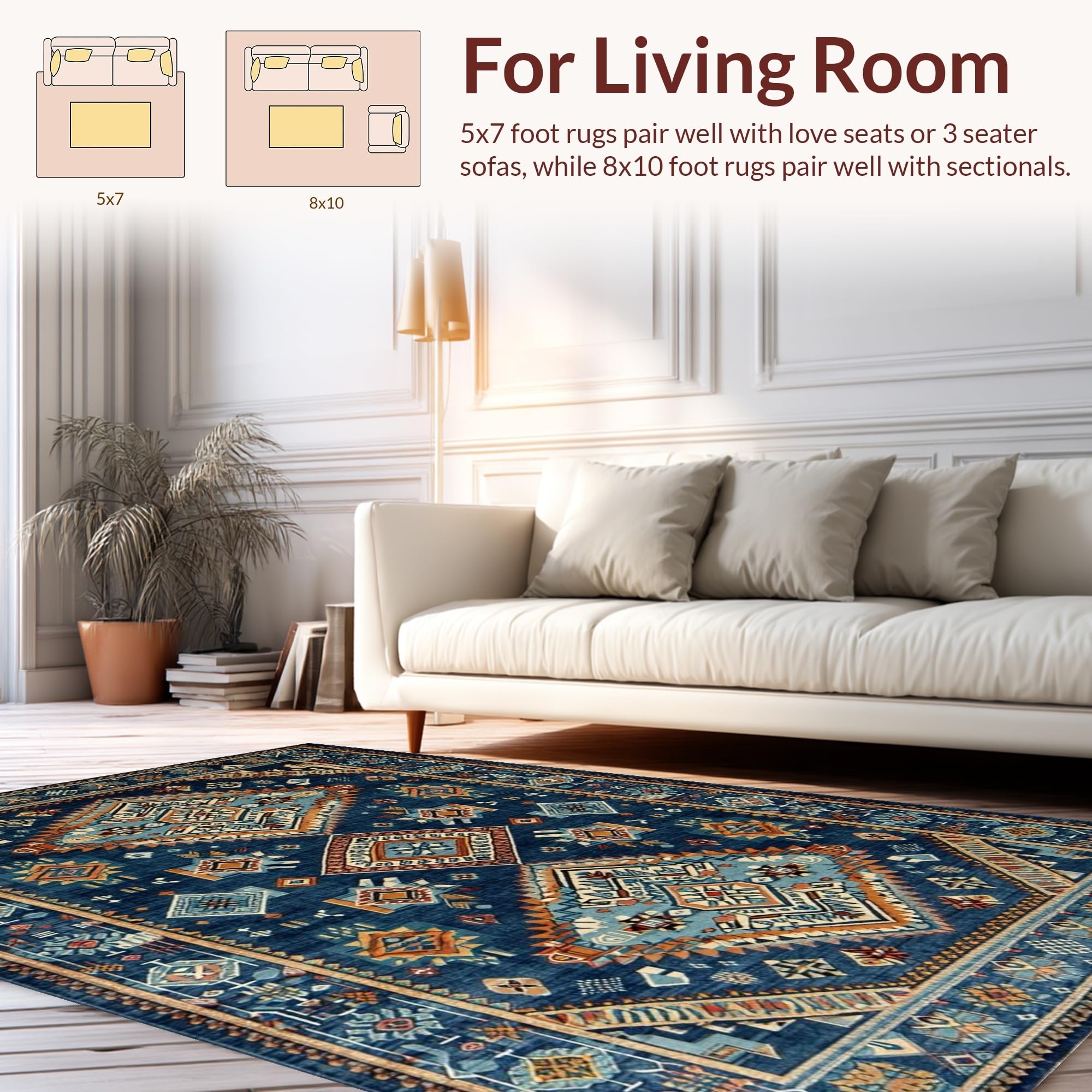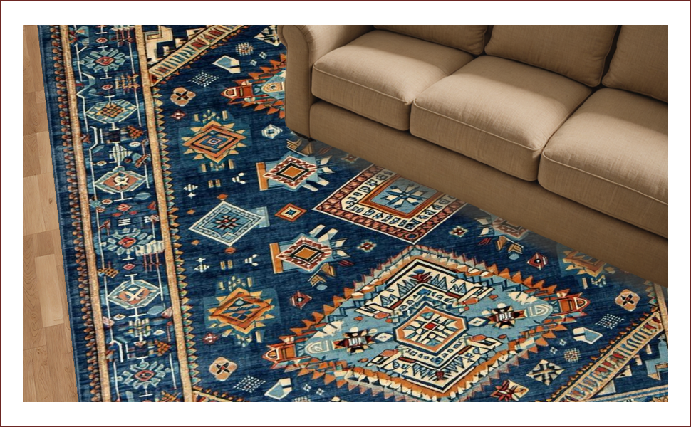 Ultra Soft Area Rug, Non Slip, Stain Resistant, Washable Area Rugs for Living Room, Bedroom, Vintage Tribal Medallion Aesthetic(Blue) Overview: