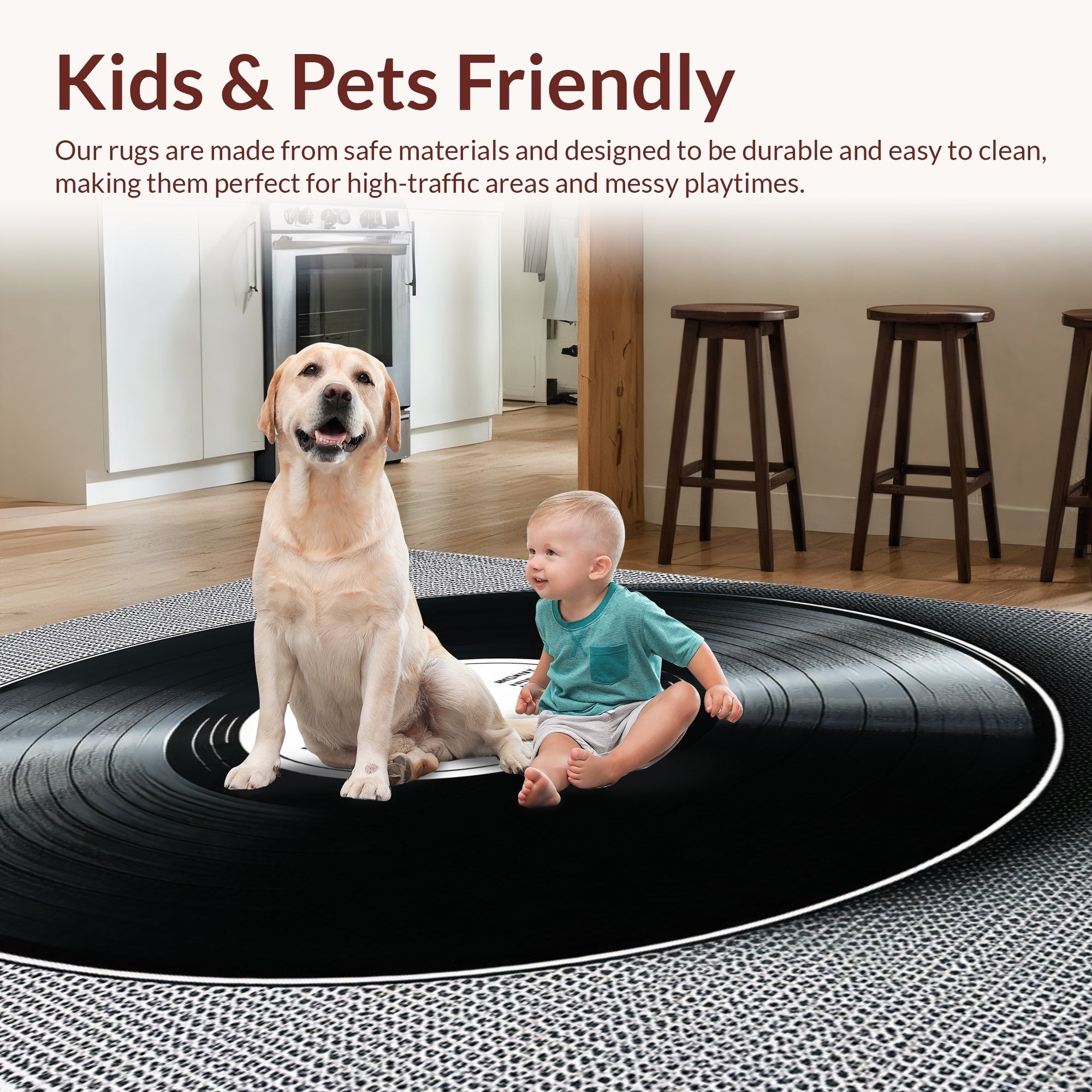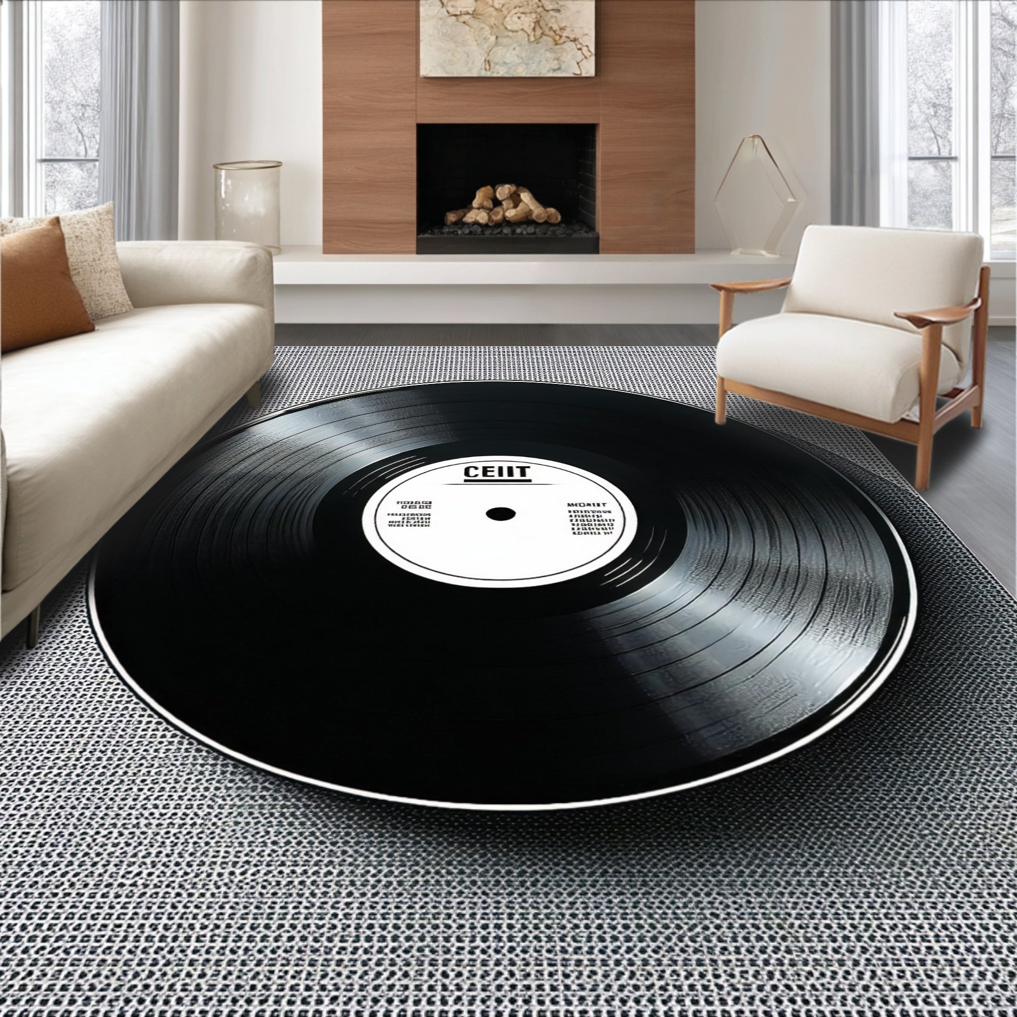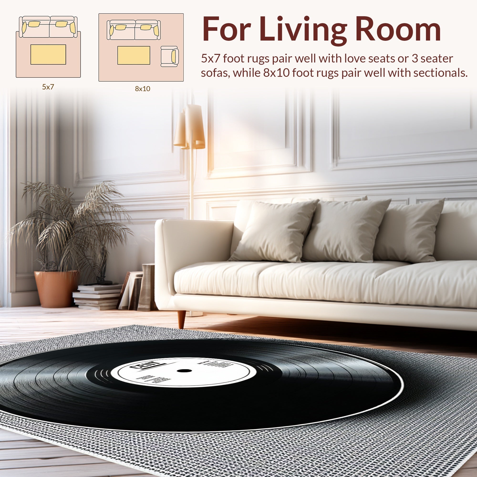 Ultra Soft Area Rug, Non Slip, Stain Resistant, Washable Area Rugs for Living Room, Bedroom, vinyl record music rug(Black) Overview: