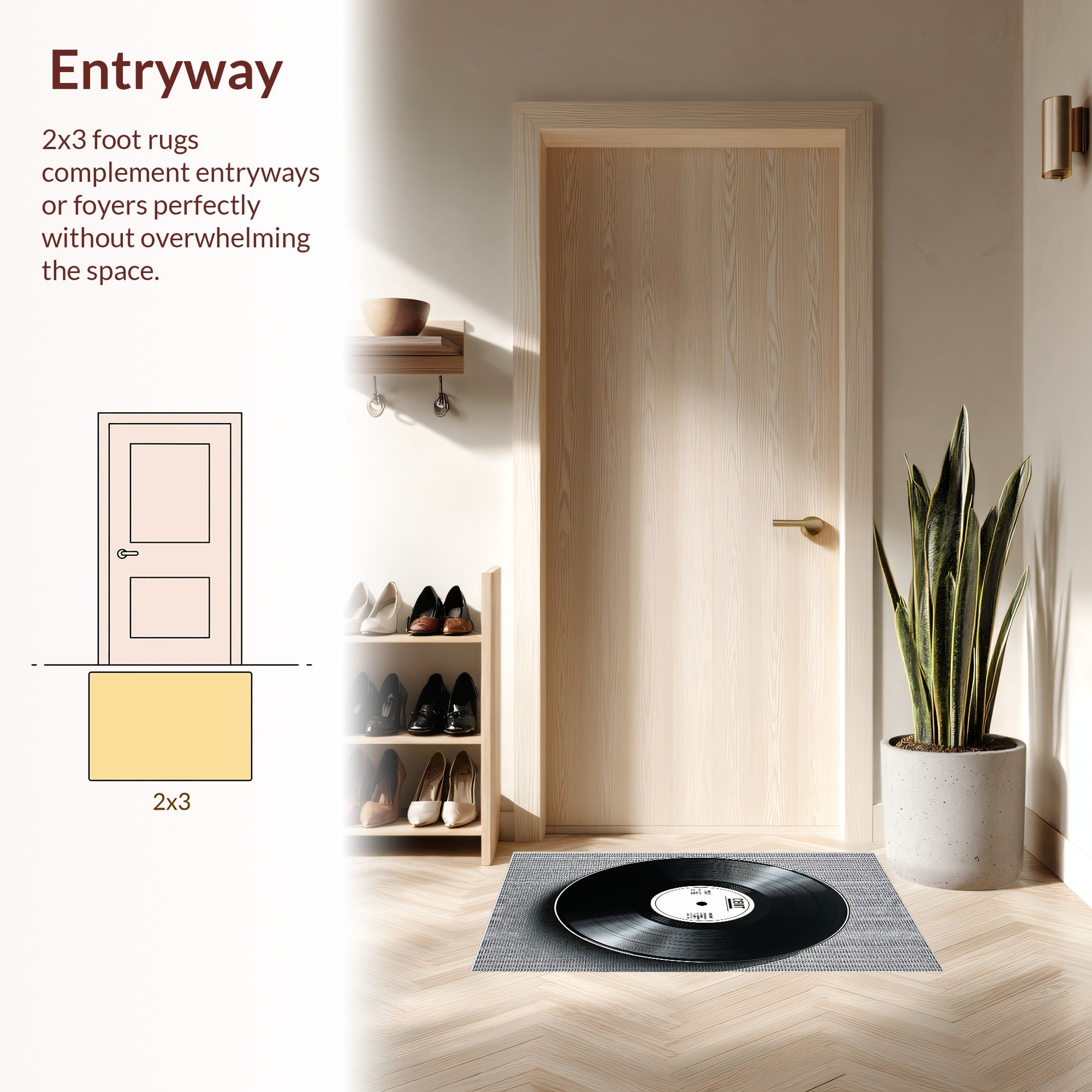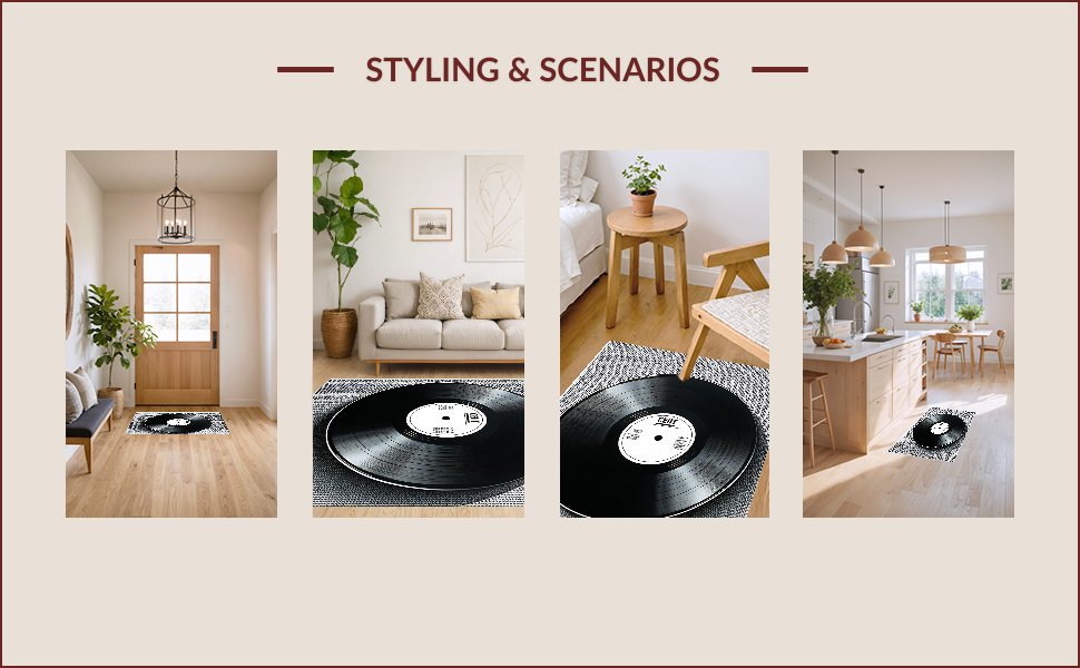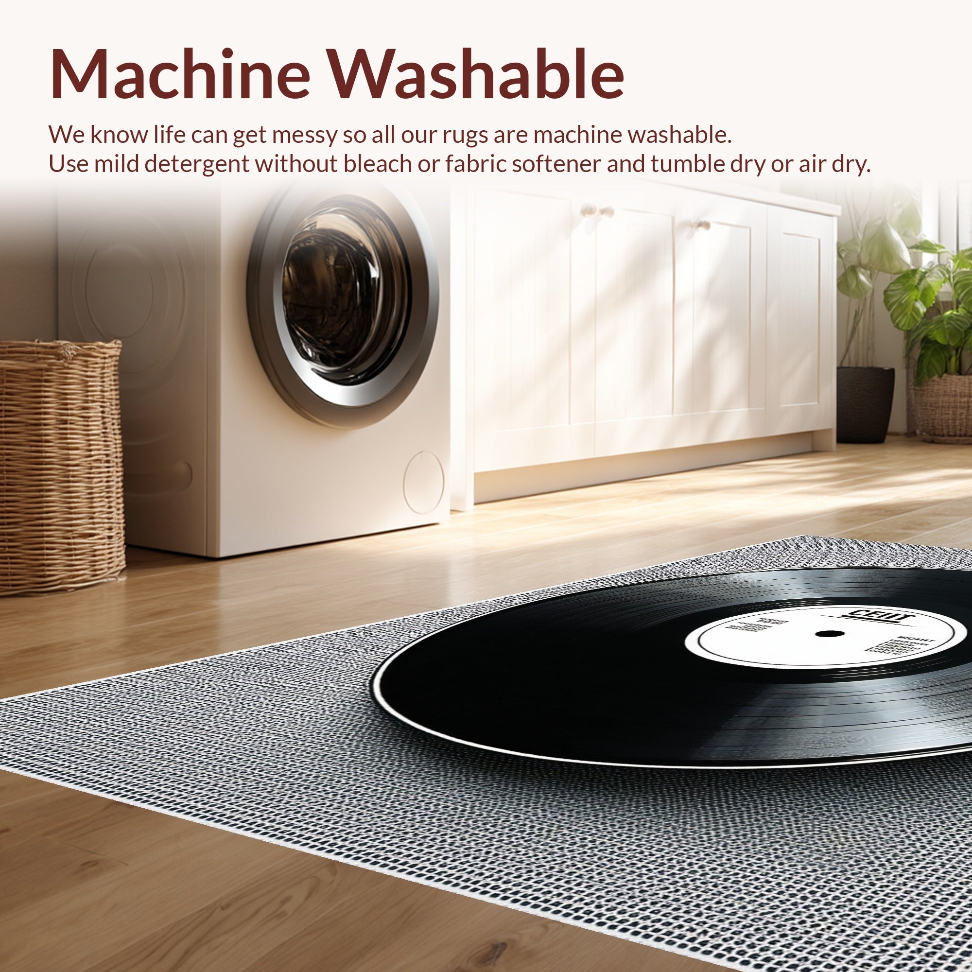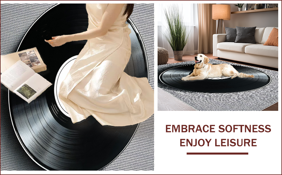 Ultra Soft Area Rug, Non Slip, Stain Resistant, Washable Area Rugs for Living Room, Bedroom, vinyl record music rug(Black) Overview: