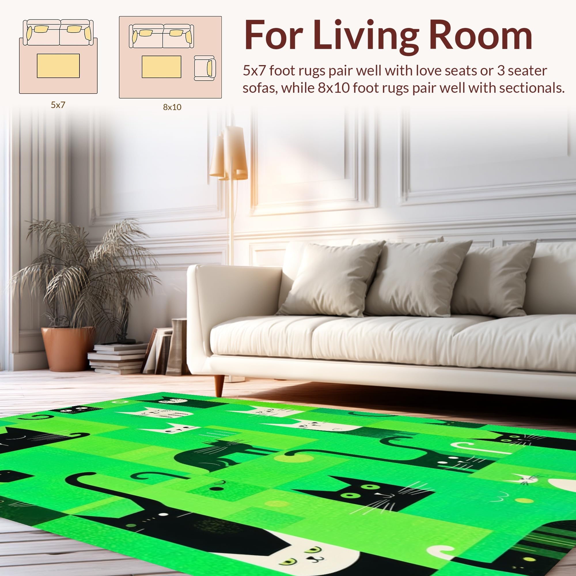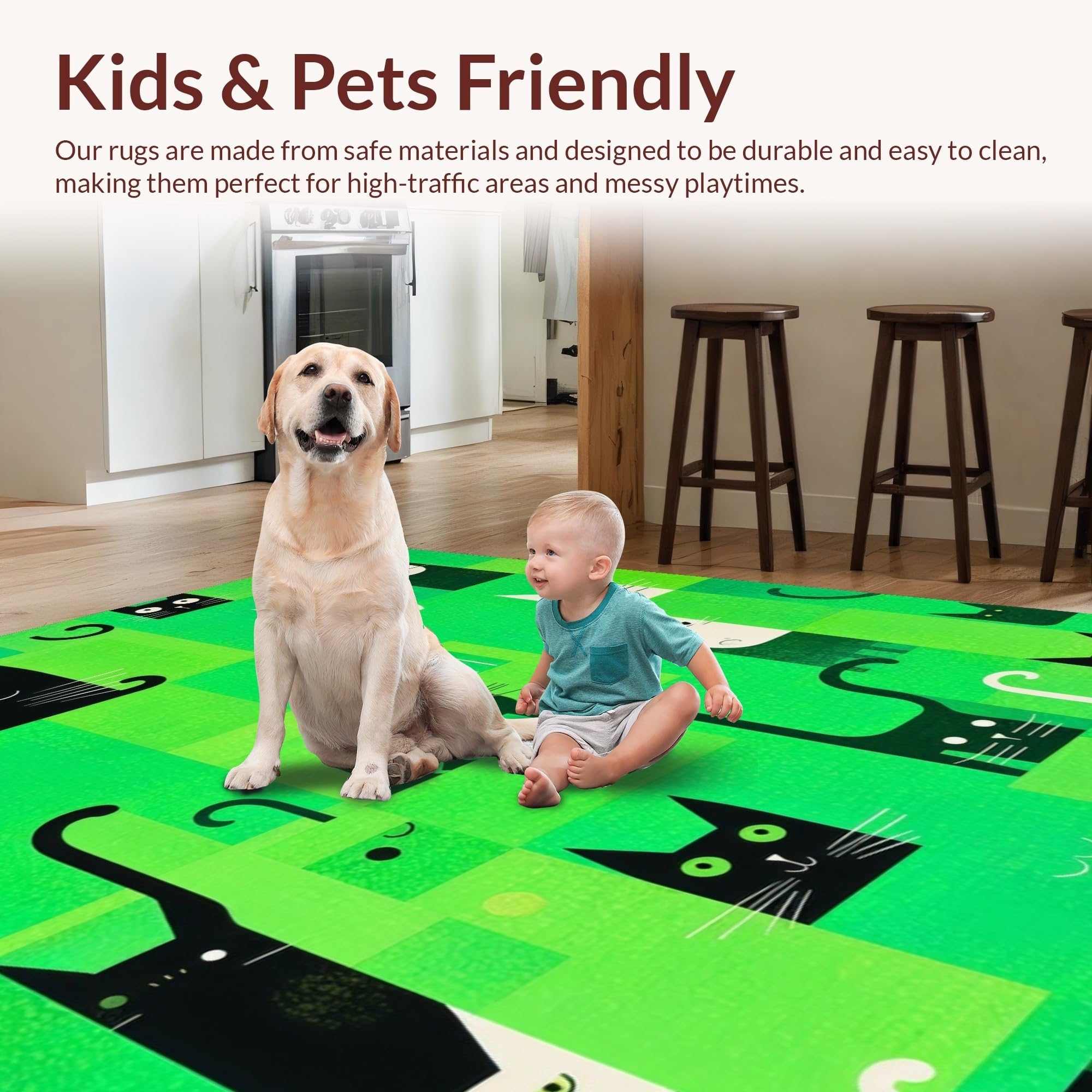 Ultra Soft Area Rug, Non Slip, Stain Resistant, Washable Area Rugs for Living Room, Bedroom, Vivid Abstract Green Animal Print(Green) Overview: