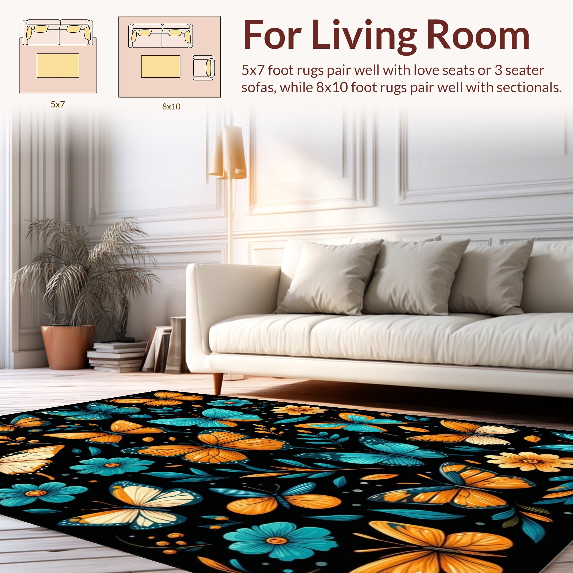 Flatwoven High Traffic Area Rug, Vivid Botanical Motif, Non Slip, Stain Resistant, Washable Area Rugs for Living Room, Bedroom (Orange) Overview: